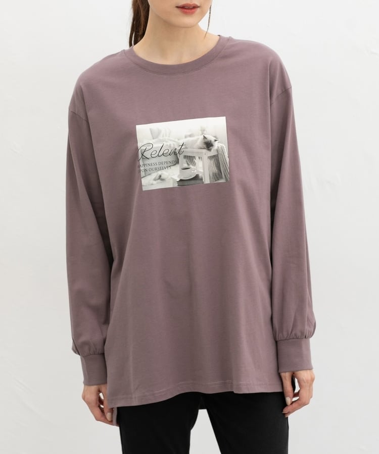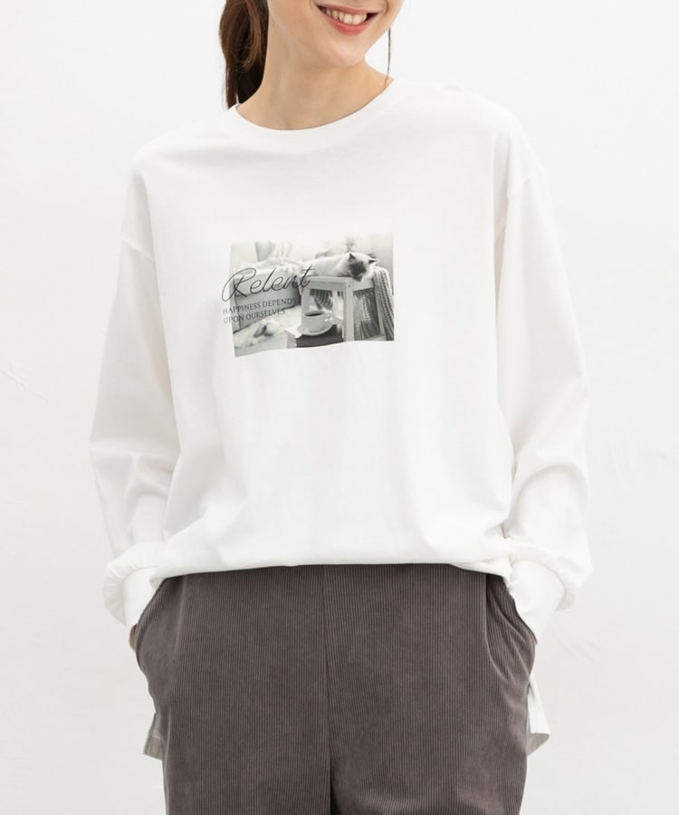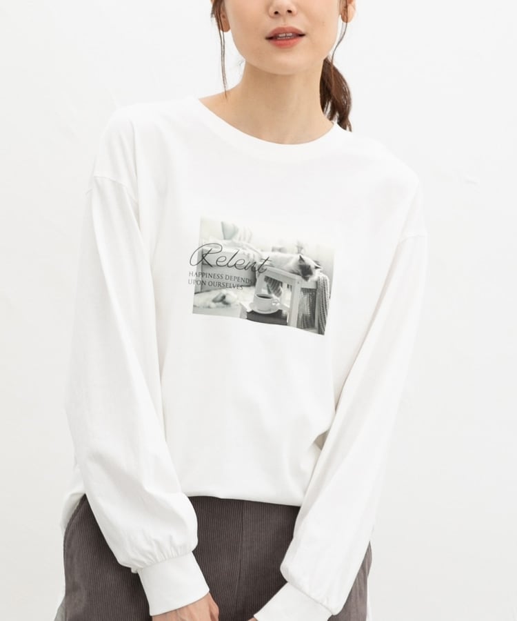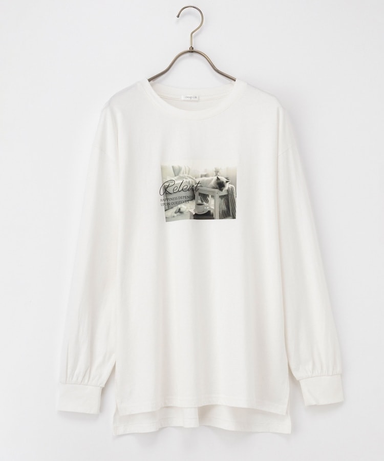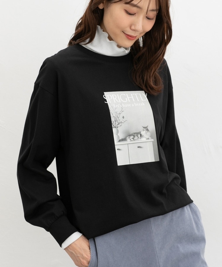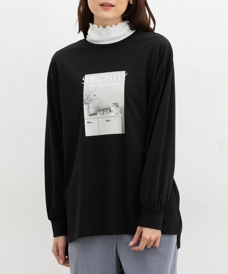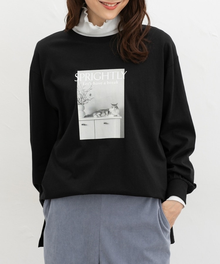 ネコちゃんのモノクロフォトプリントがおしゃれなデザイン。