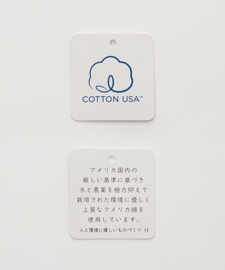 アメリカ国内の厳しい基準に基づき、水と農薬を極力抑えて栽培された、環境に優しく着心地もよいUSAコットン100%素材。