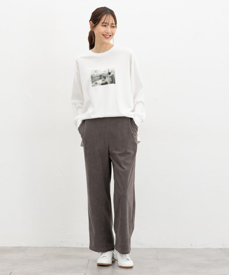 スキニーパンツやイージーストレートパンツなど、カジュアルなボトムスと相性抜群。