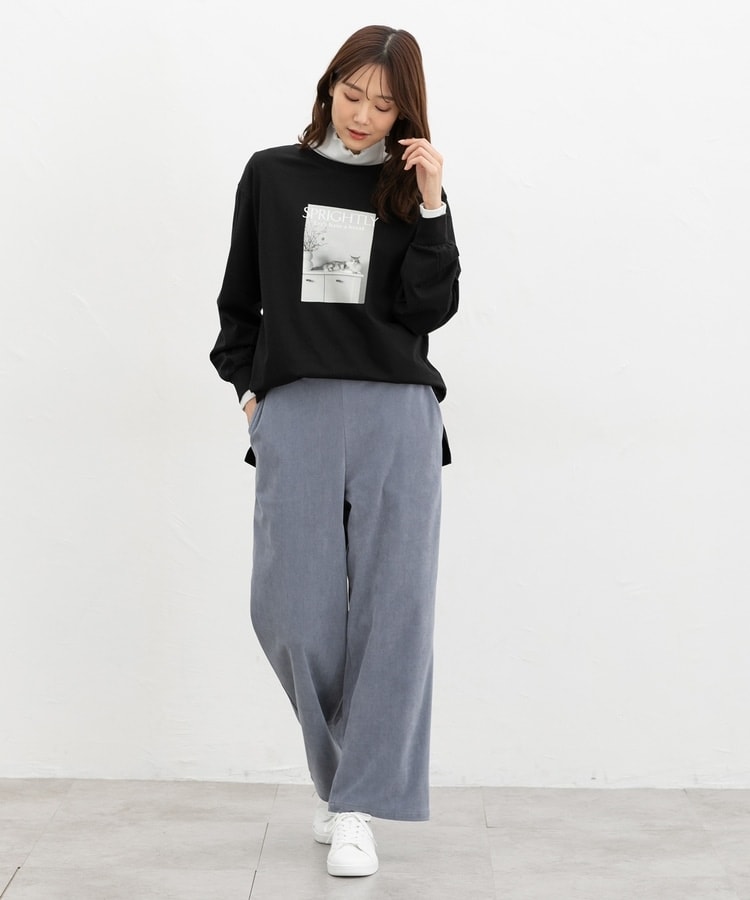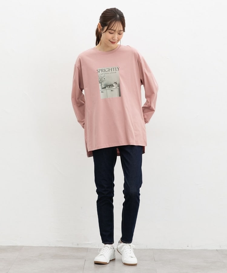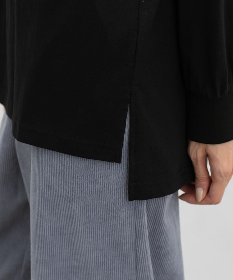 ゆったりめの幅とヒップがすっぽり隠れるチュニック丈で、気になる体型もカバーし、ストレスフリーな着心地。