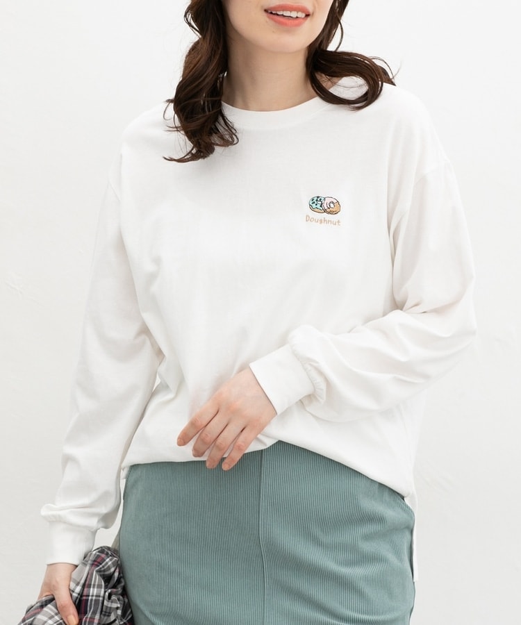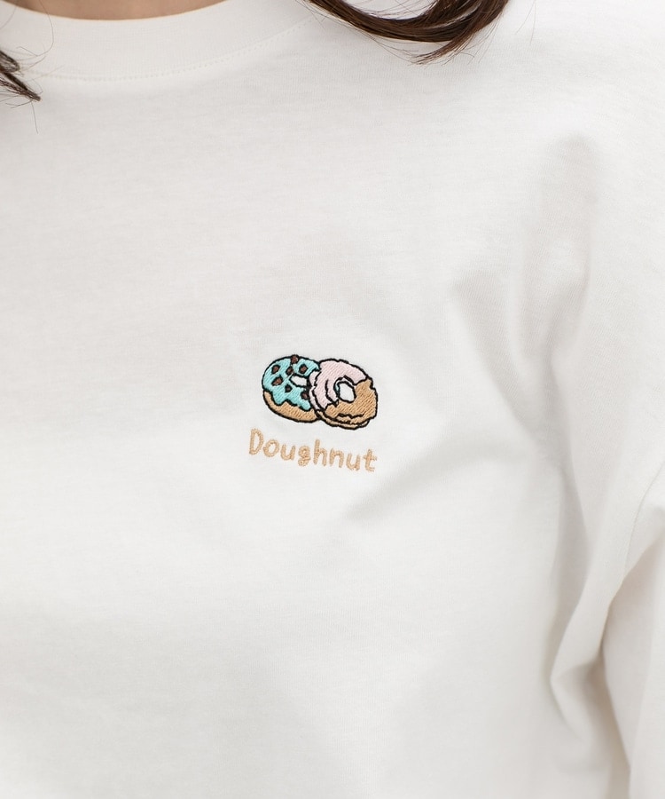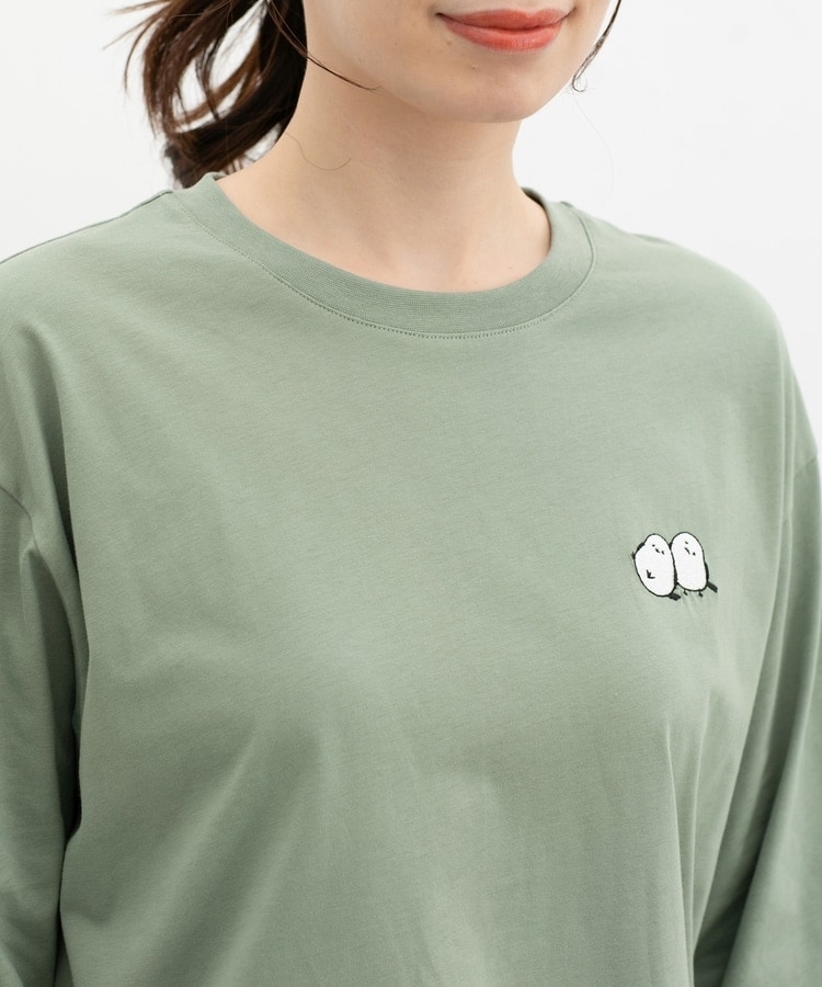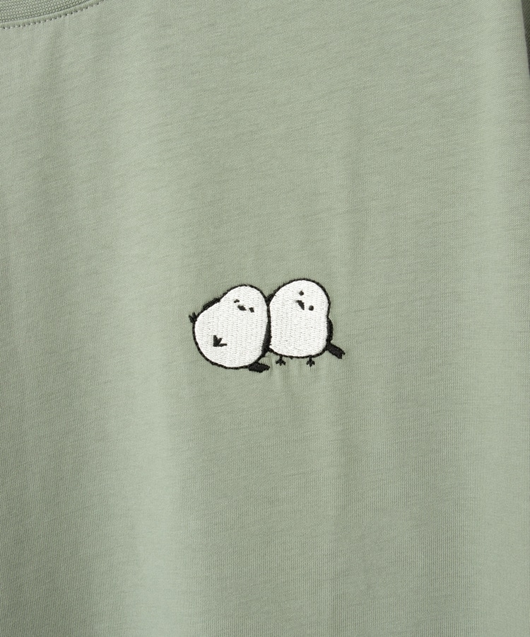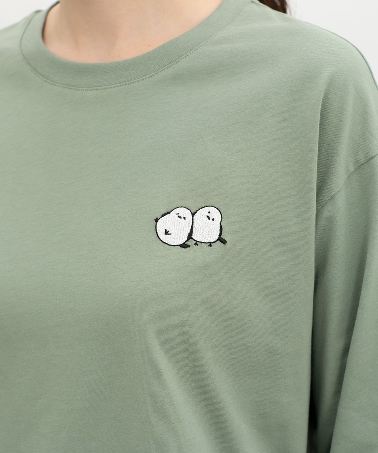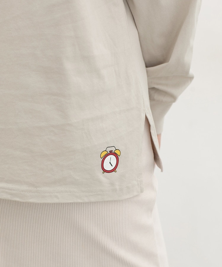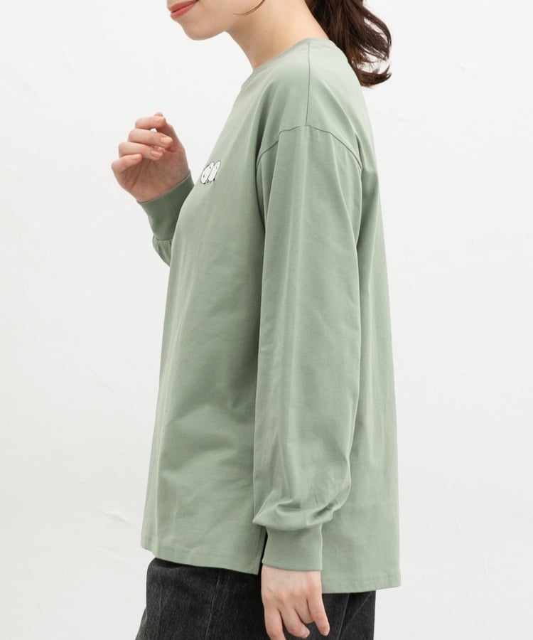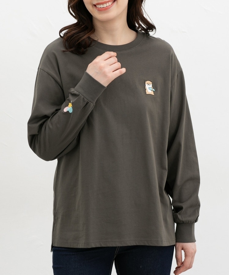 胸元や右袖、後ろ裾などのゆるかわモチーフ刺繍やプリントと、抜け感のあるスリットがお洒落なデザイン。