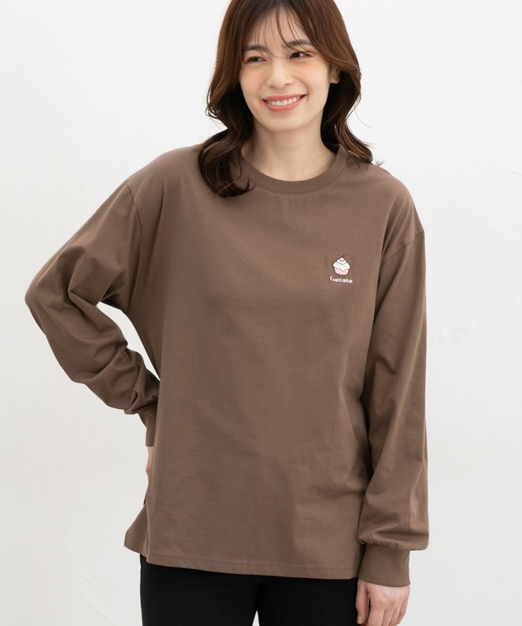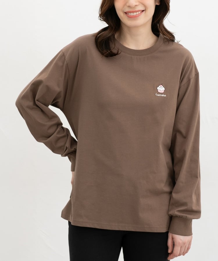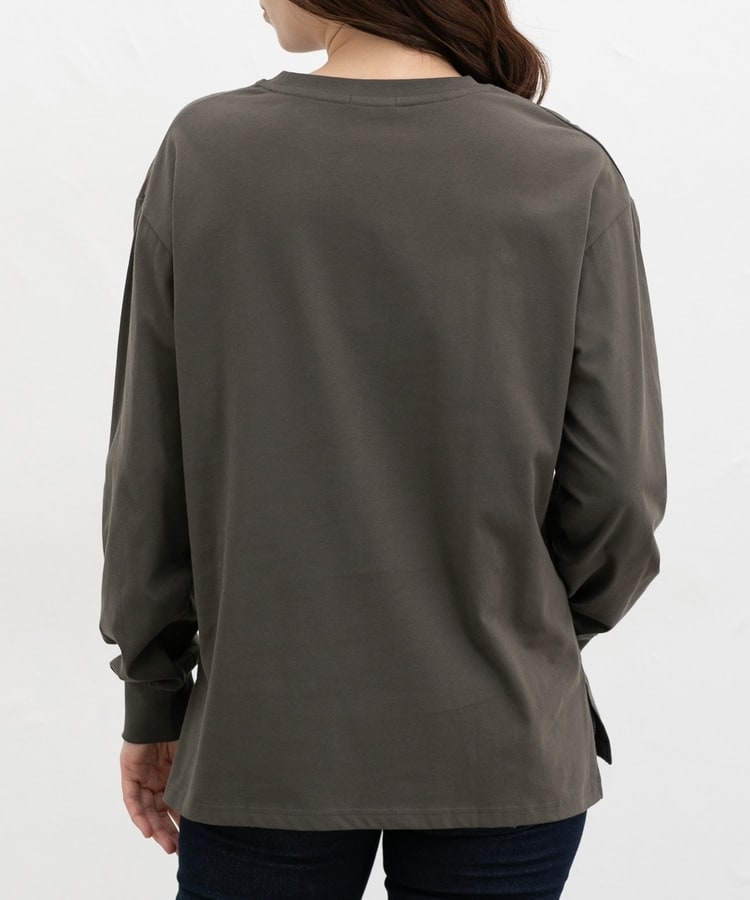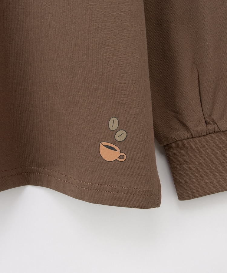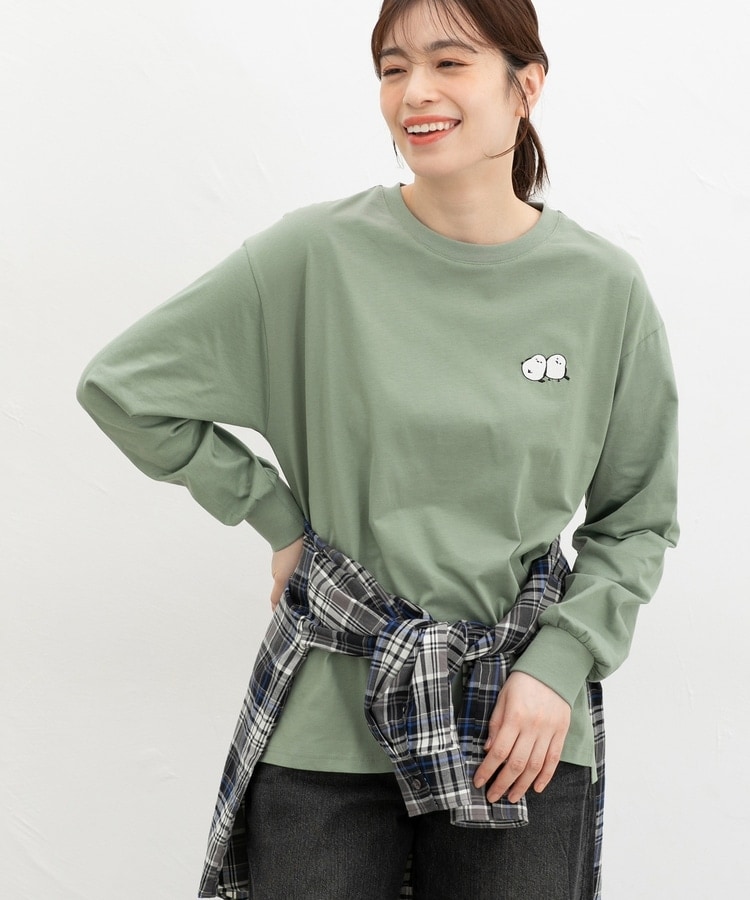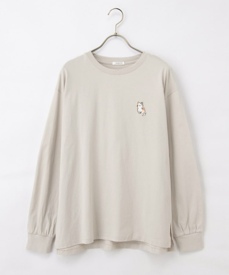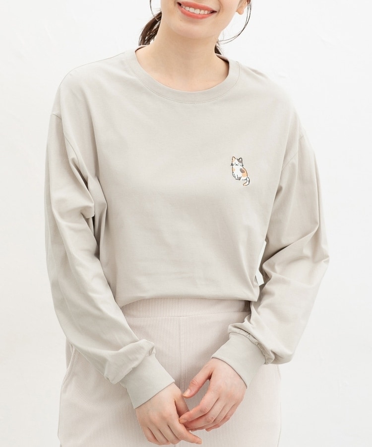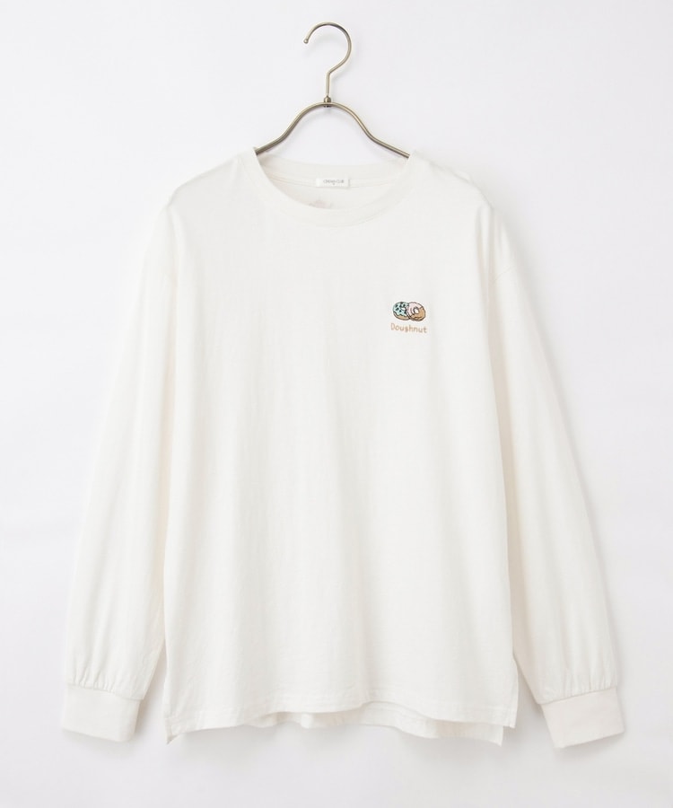 胸元や右袖、後ろ裾などのゆるかわモチーフ刺繍やプリントと、抜け感のあるスリットがお洒落なデザイン。