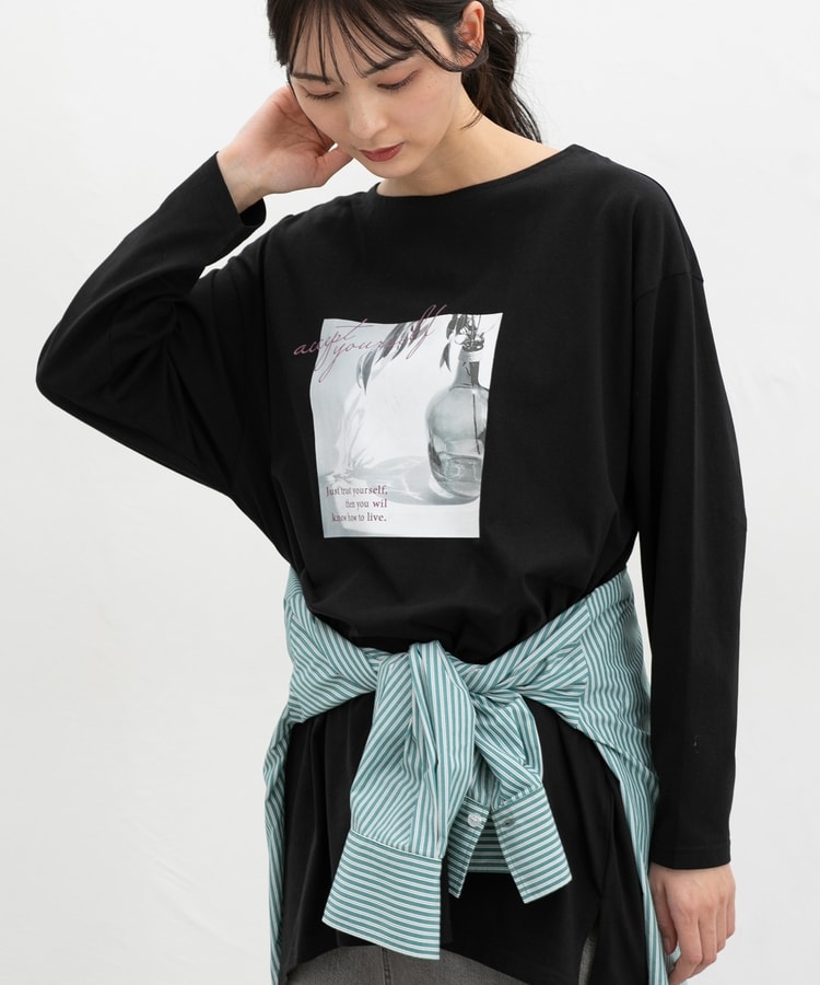 大きめのスウェットやシャツをレイヤードして裾を出すスタイルもおすすめ。