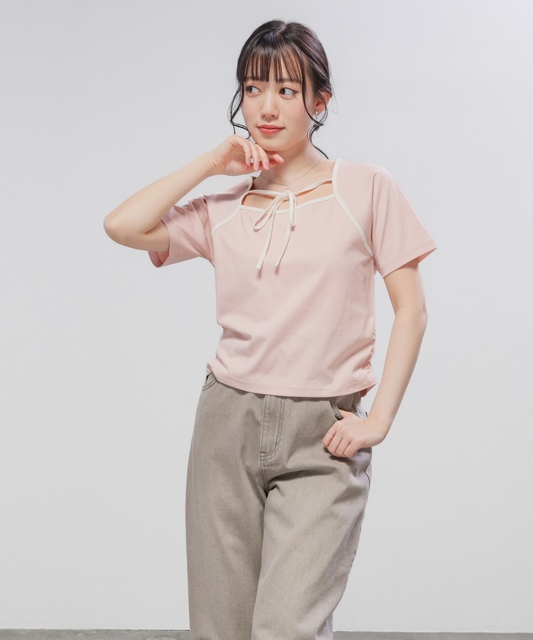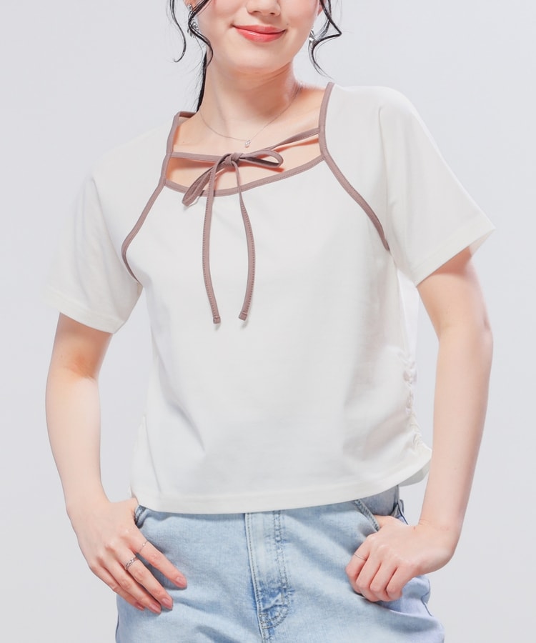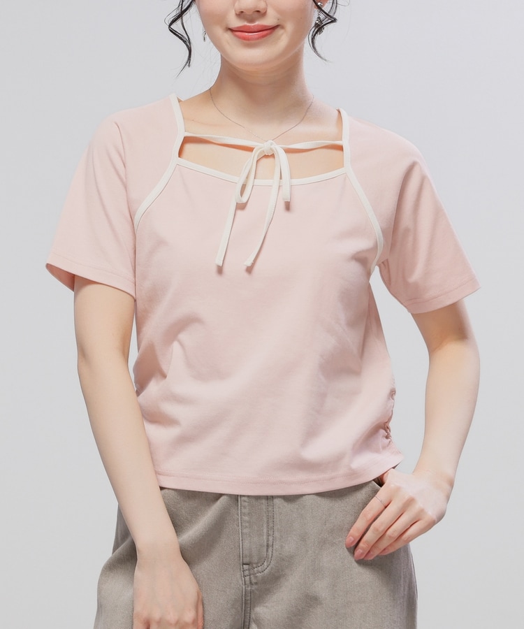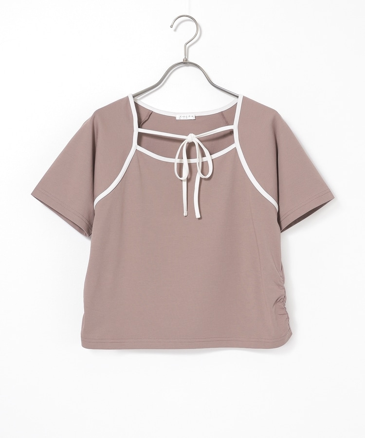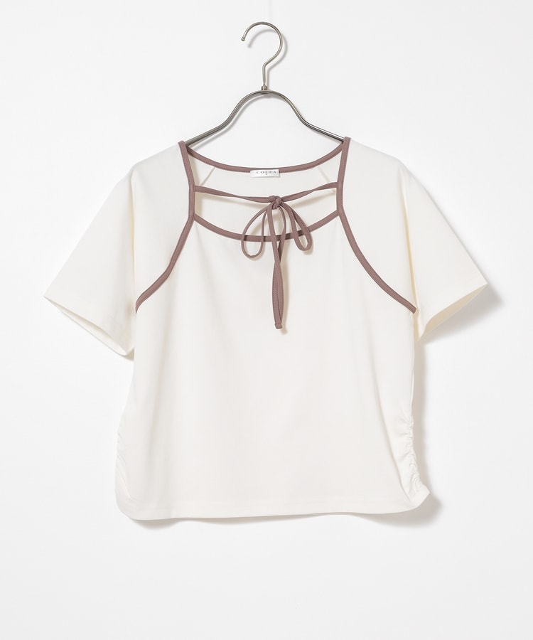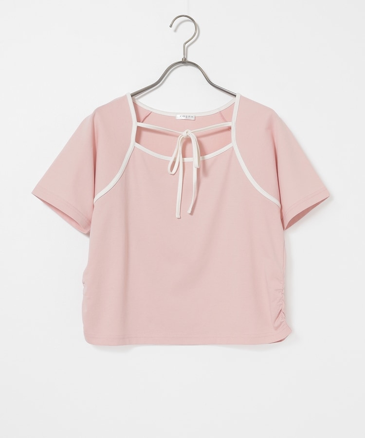 衿ぐりの配色パイピングとホルターリボンが可愛い、1枚で着映えるデザイン。