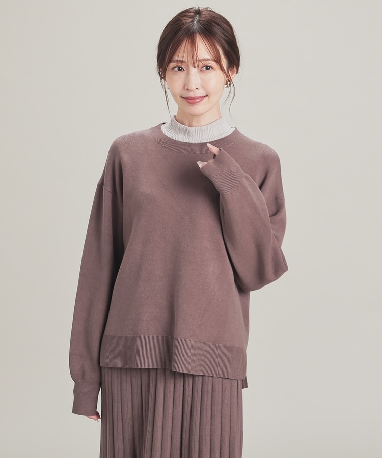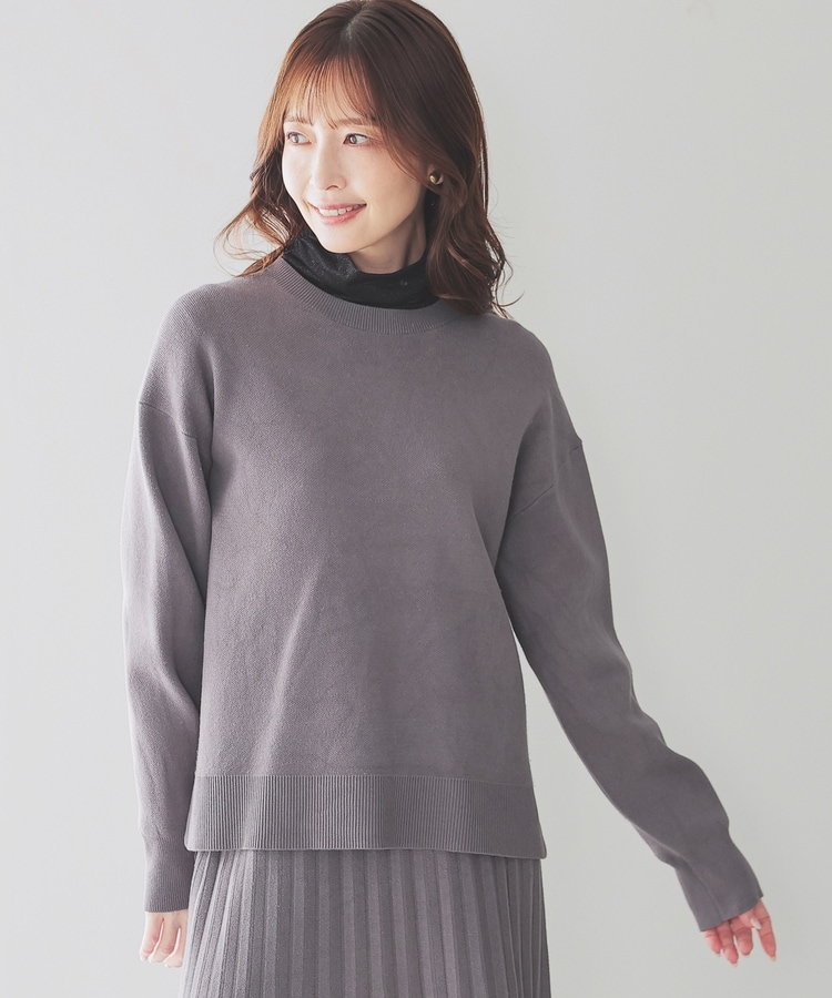 アウターを羽織ったり、ボトムスにタックインしてもごわつかない、程よい厚み。