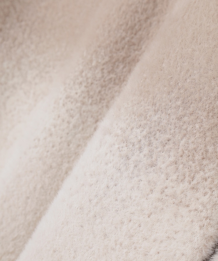 毛足が長めで柔らかく、ふわふわな肌触りのフェザーヤーン素材。