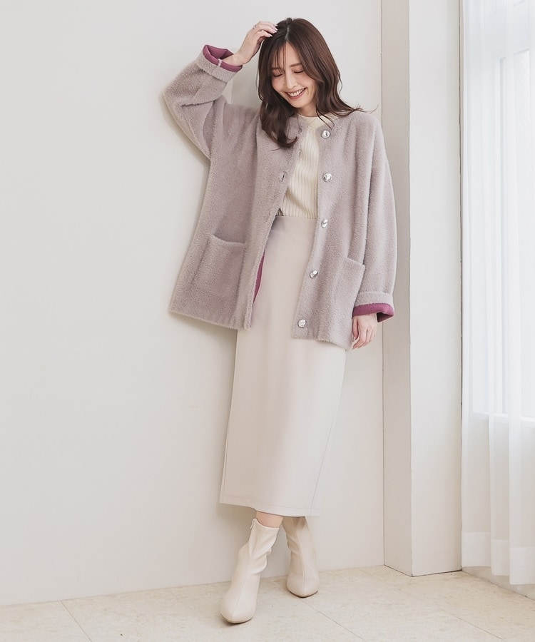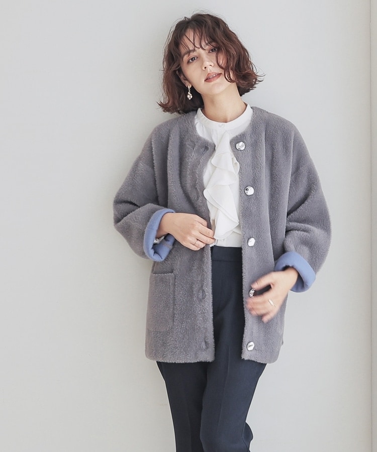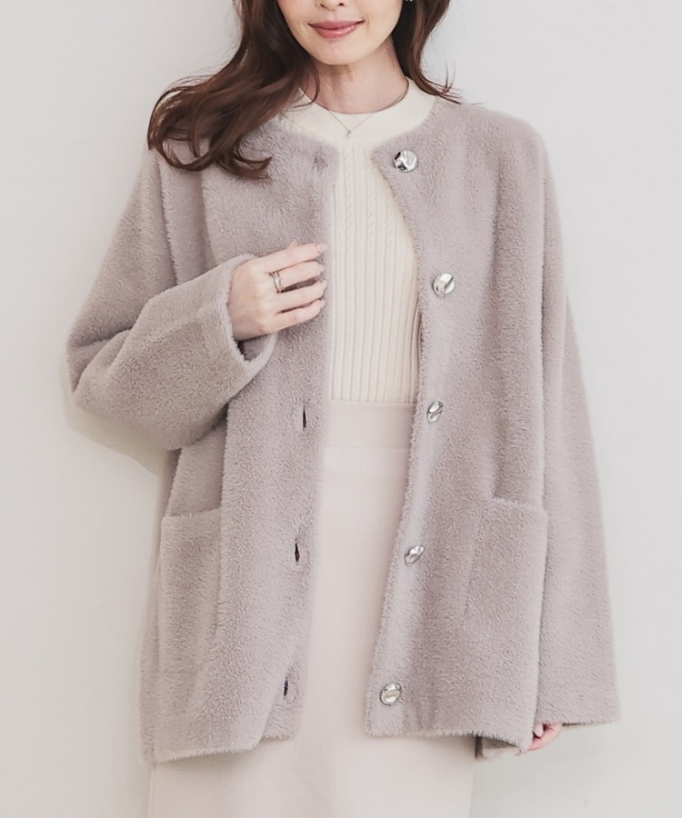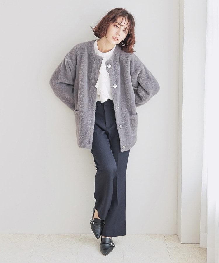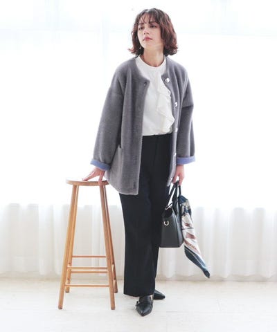 長すぎない毛足で着膨れすることもなく、カジュアルすぎず上品な印象に。