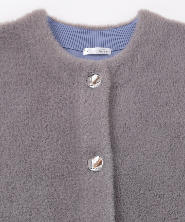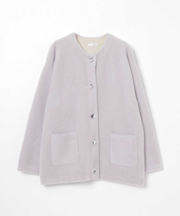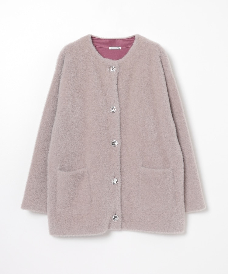 ノーカラーニットコート
