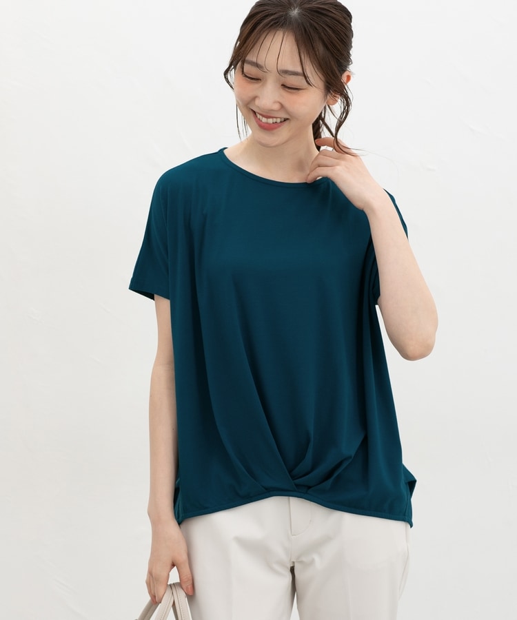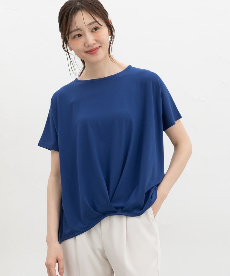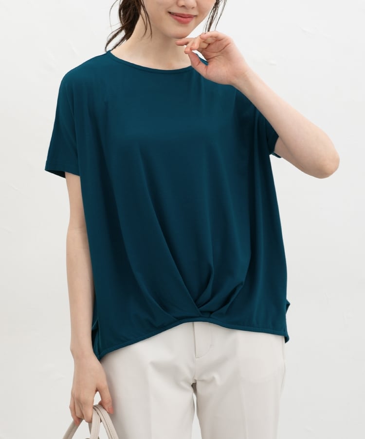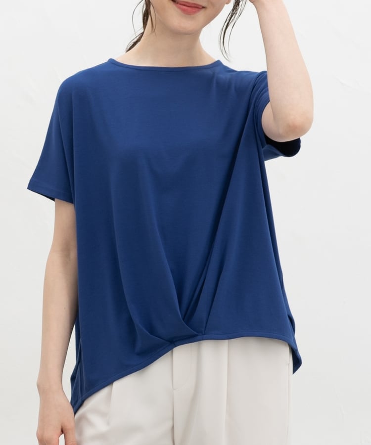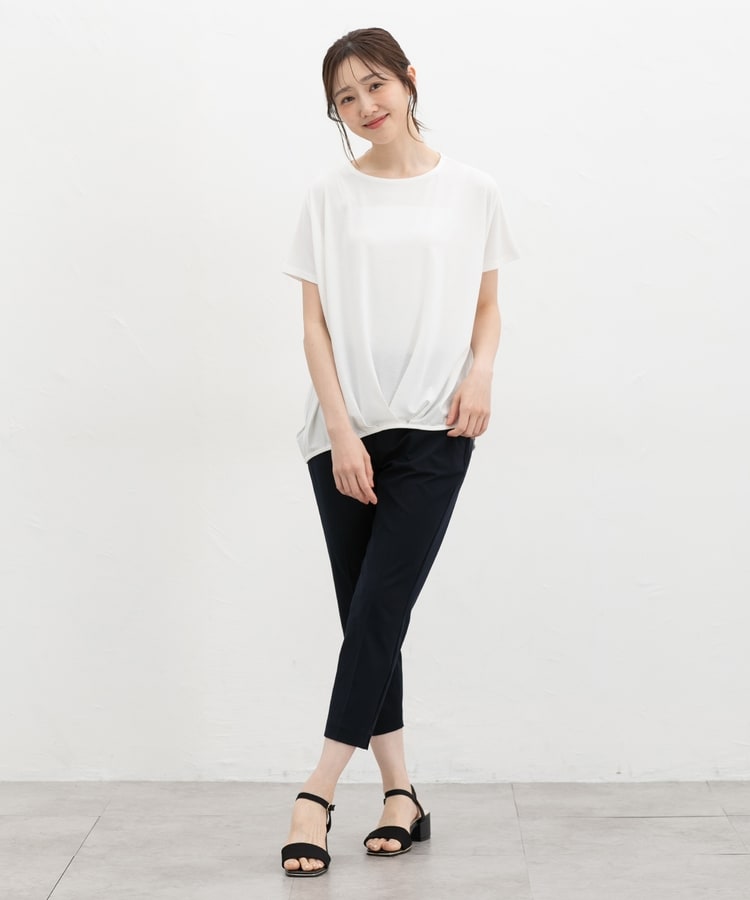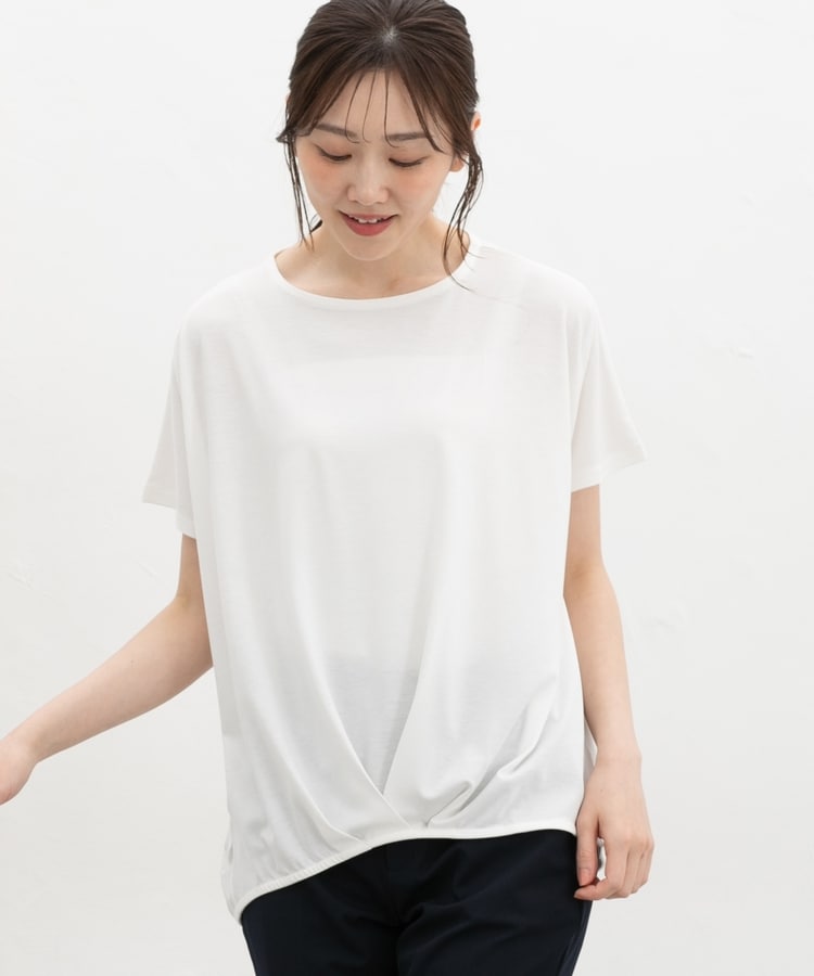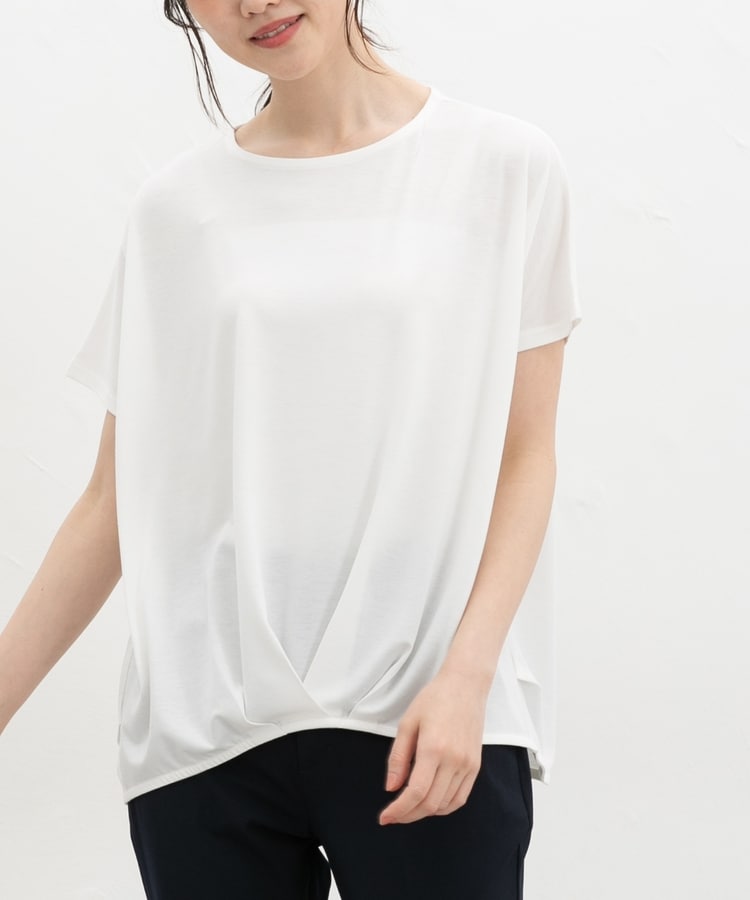 フロントの裾にタックを入れた前後差のあるデザイン。