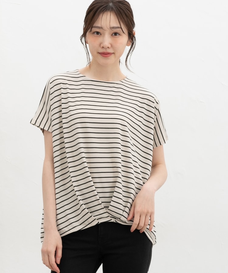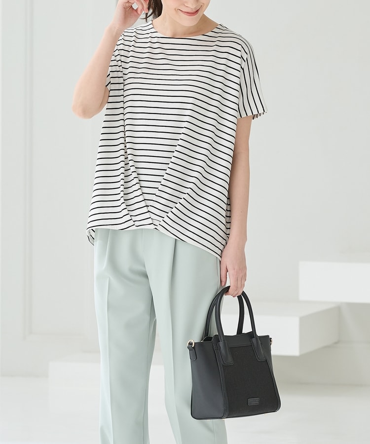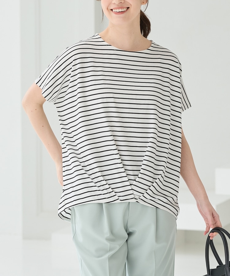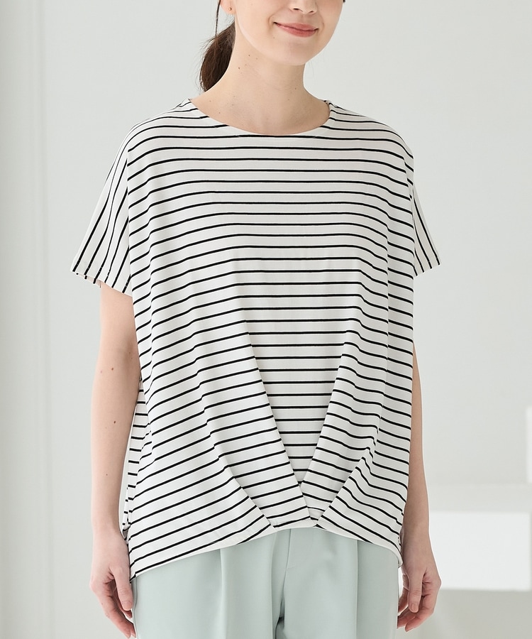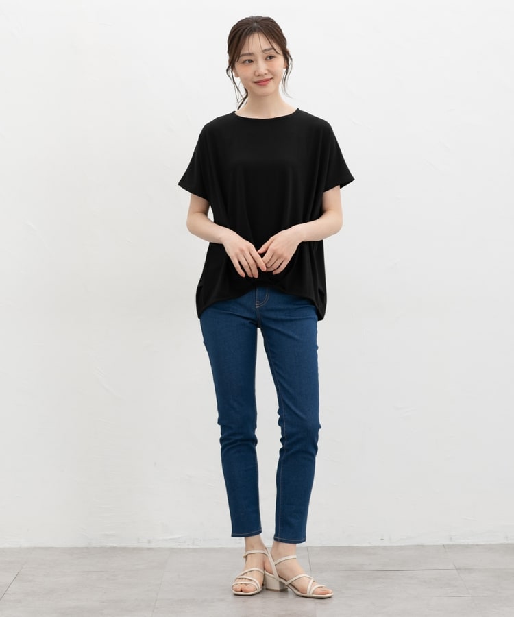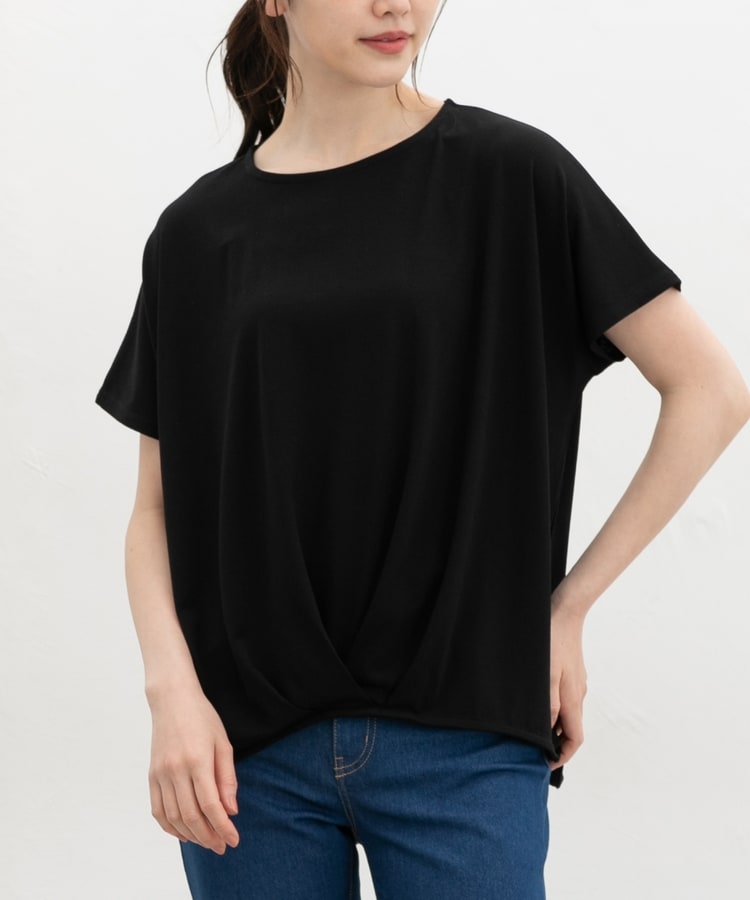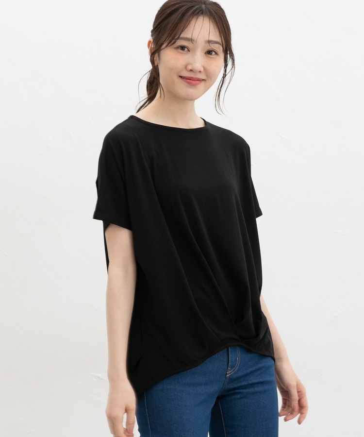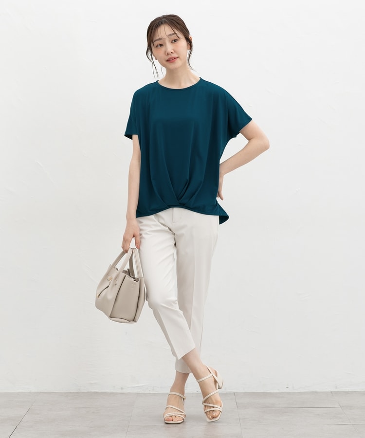フロントの裾にタックを入れた前後差のあるデザイン。