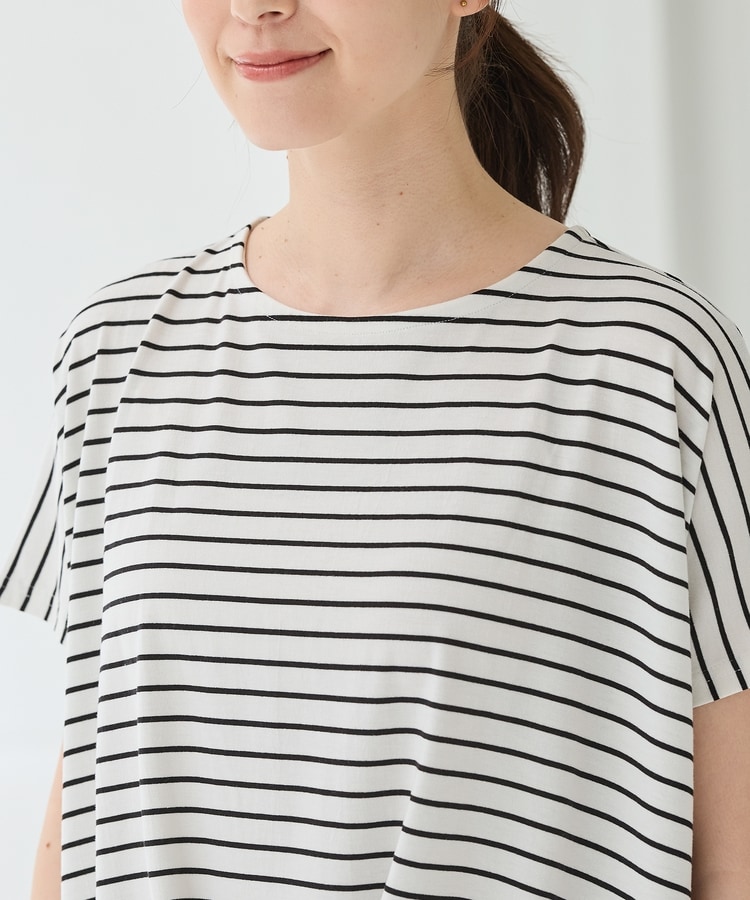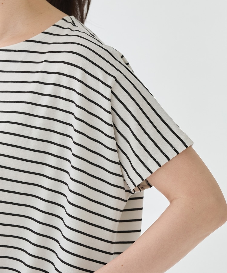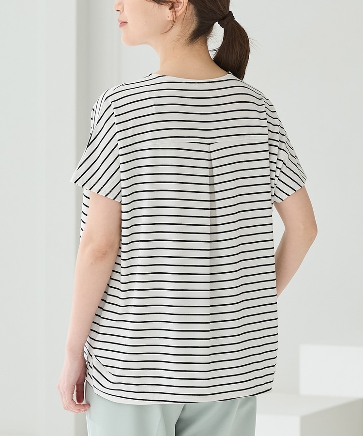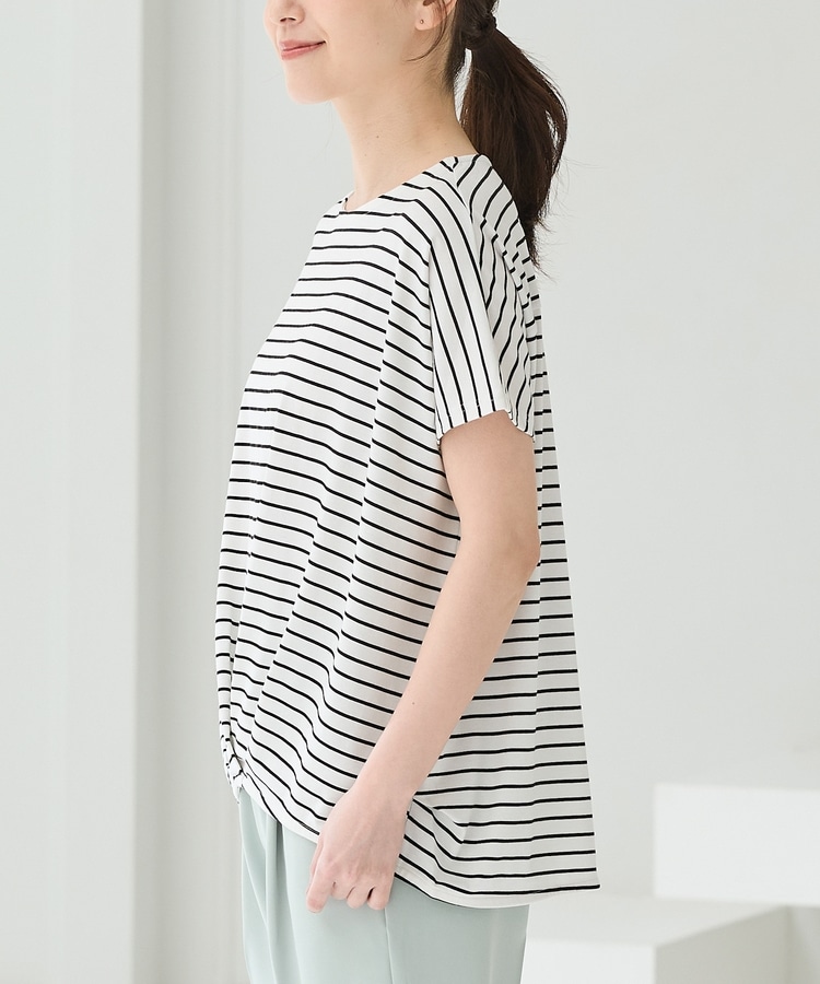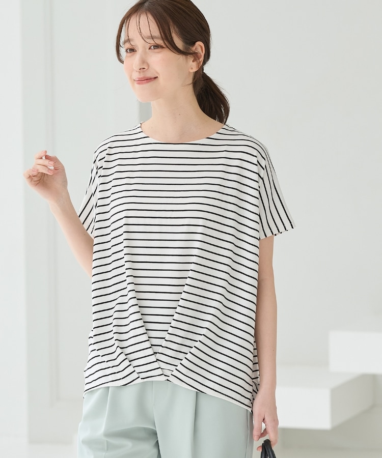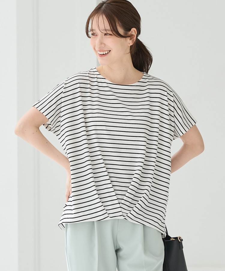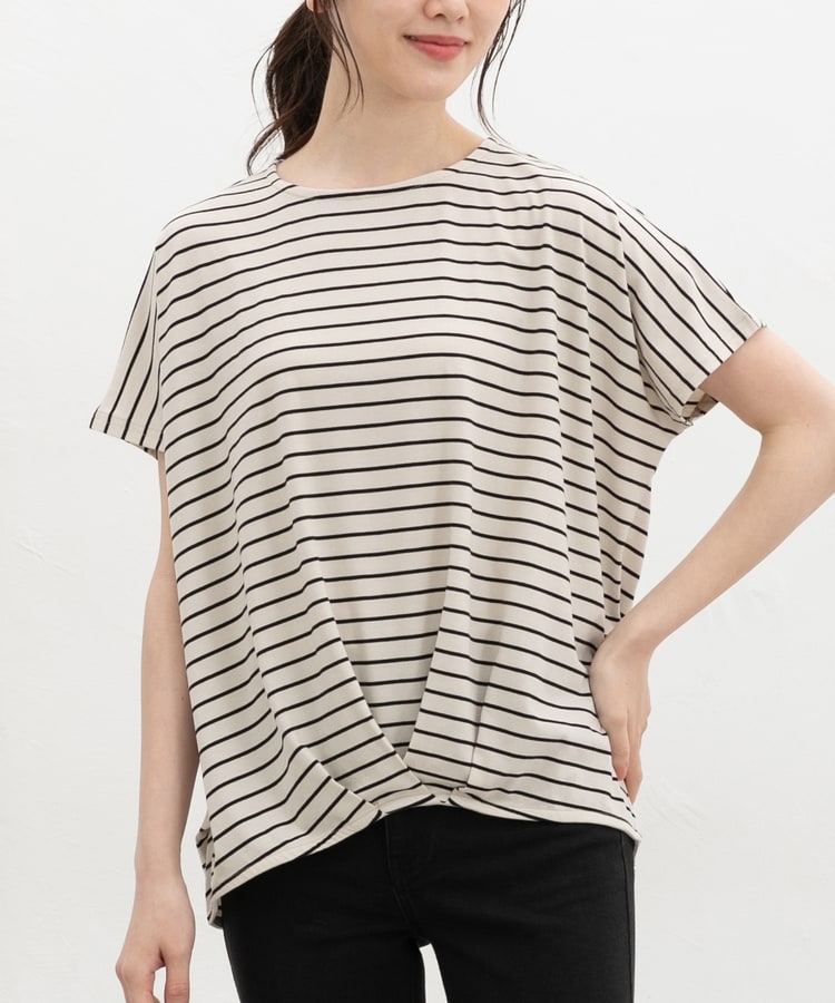 フロントの裾にタックを入れた前後差のあるデザイン。