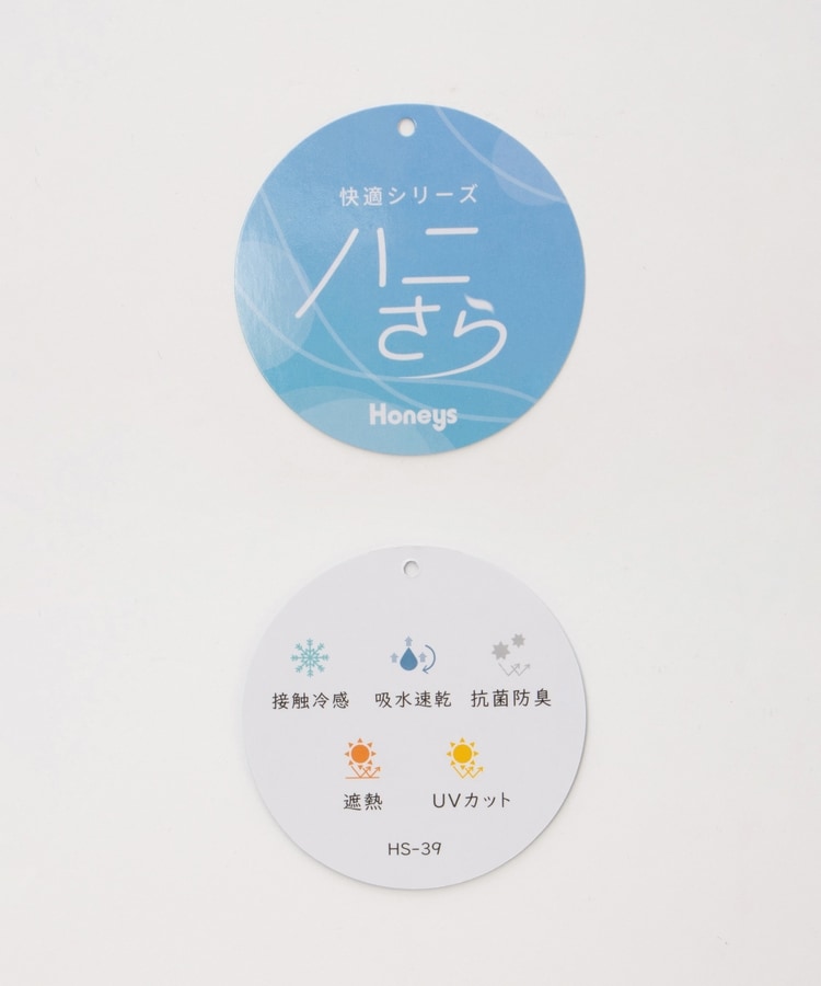 ひんやり快適な『接触冷感』と、素早く汗を吸収して乾きやすい『吸水速乾』、気になる菌やにおいにも安心の『抗菌防臭』、紫外線対策ができる『UVカット』に、今年はさらに外からの熱を遮断する『遮熱』の機能をプラスしてバージョンアップさせた『ハニさら』アイテム。