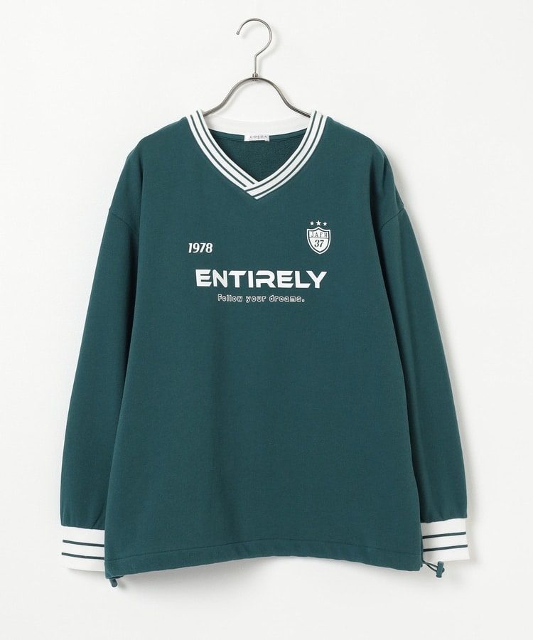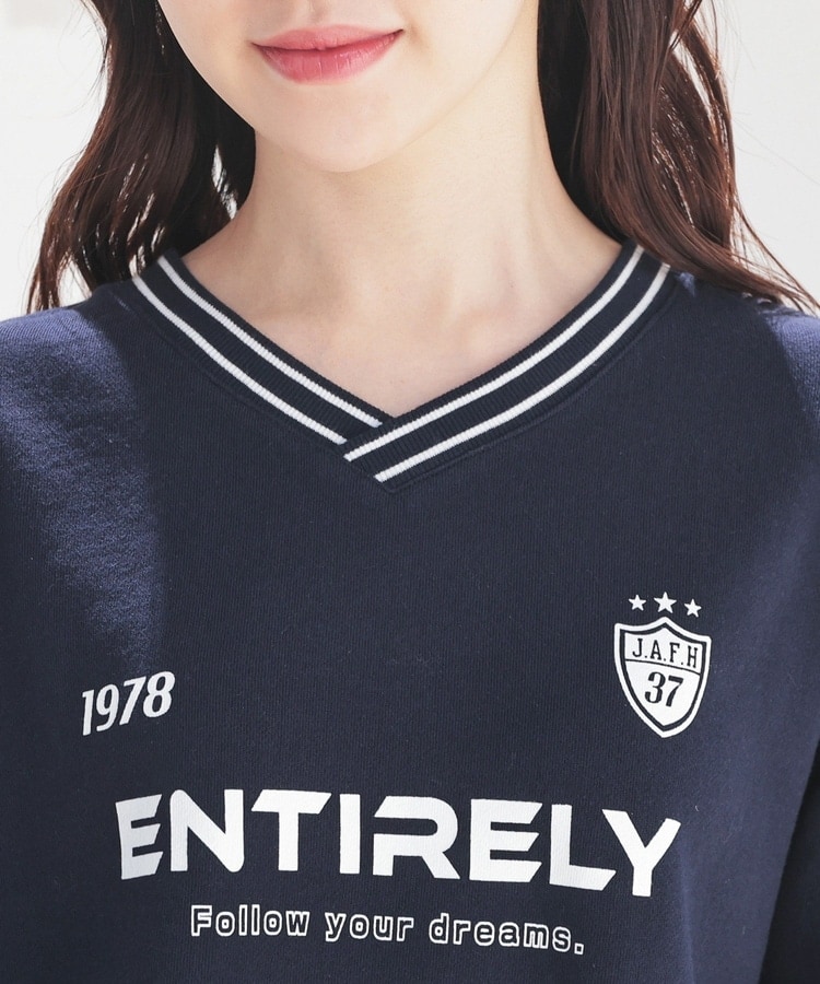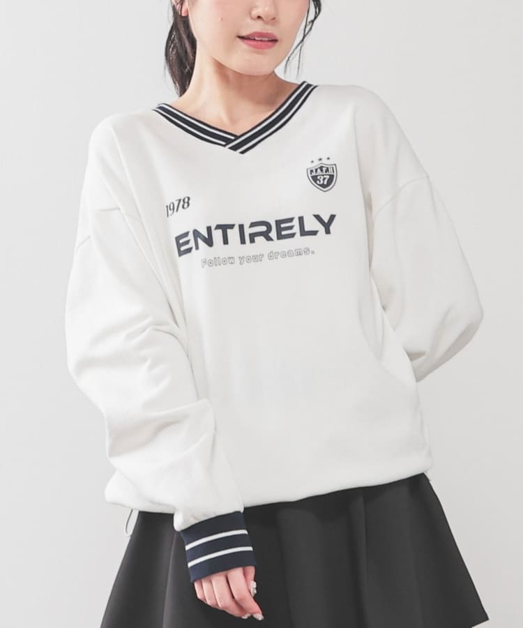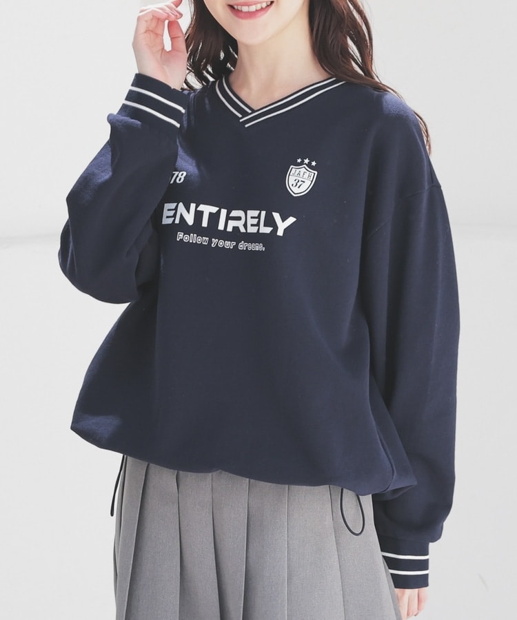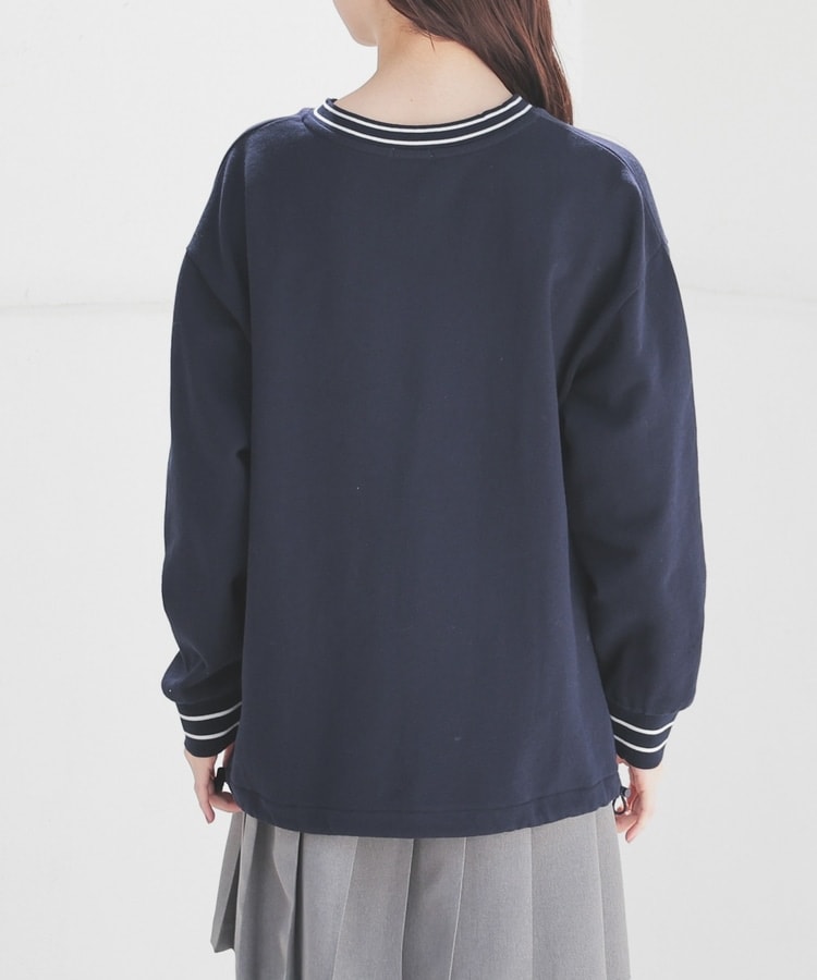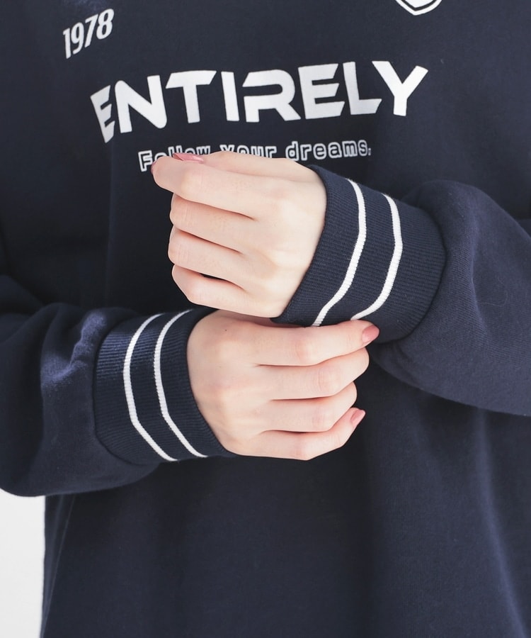 フロントのロゴプリントと、衿ぐり・袖口のライン使いがスポーティーなデザイン。