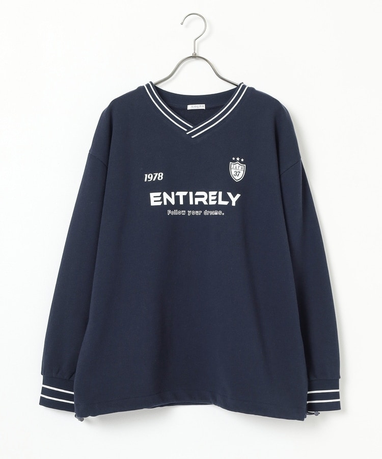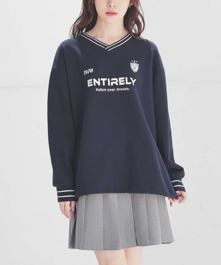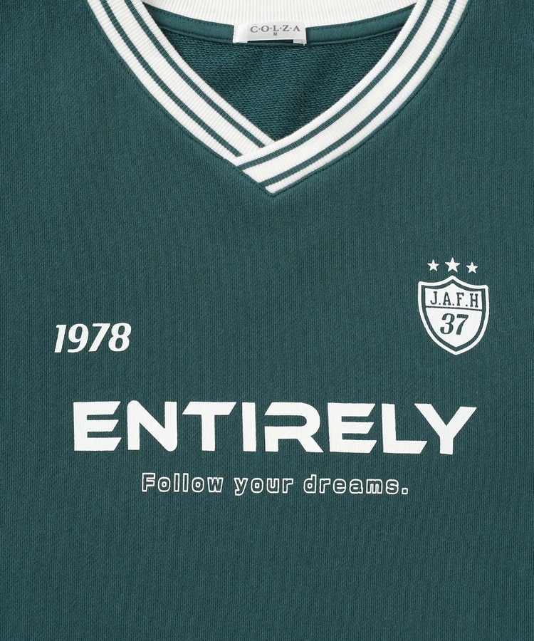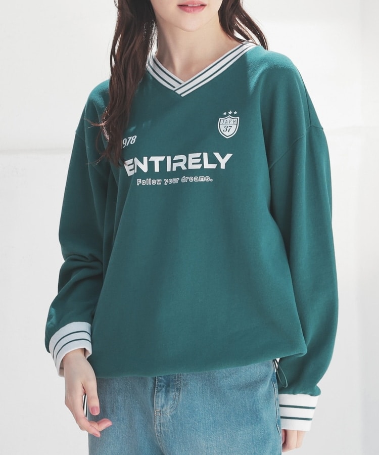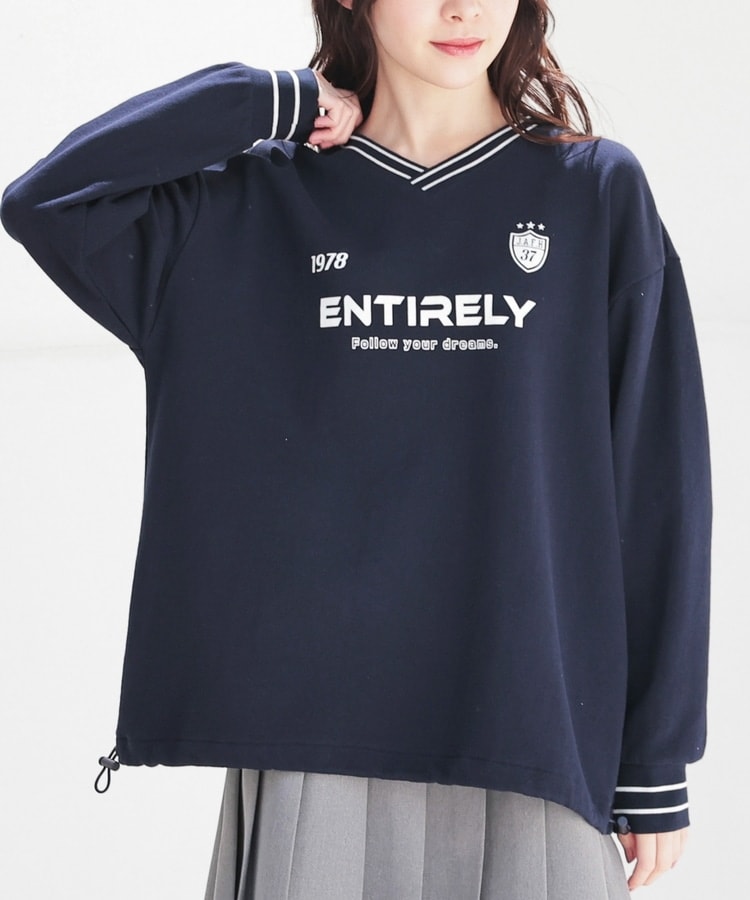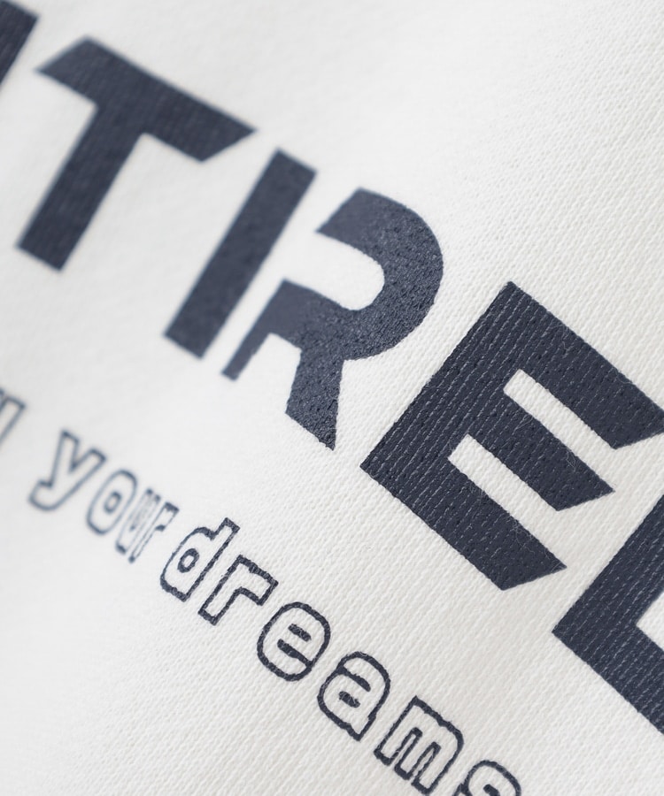 フロントのロゴプリントと、衿ぐり・袖口のライン使いがスポーティーなデザイン。
