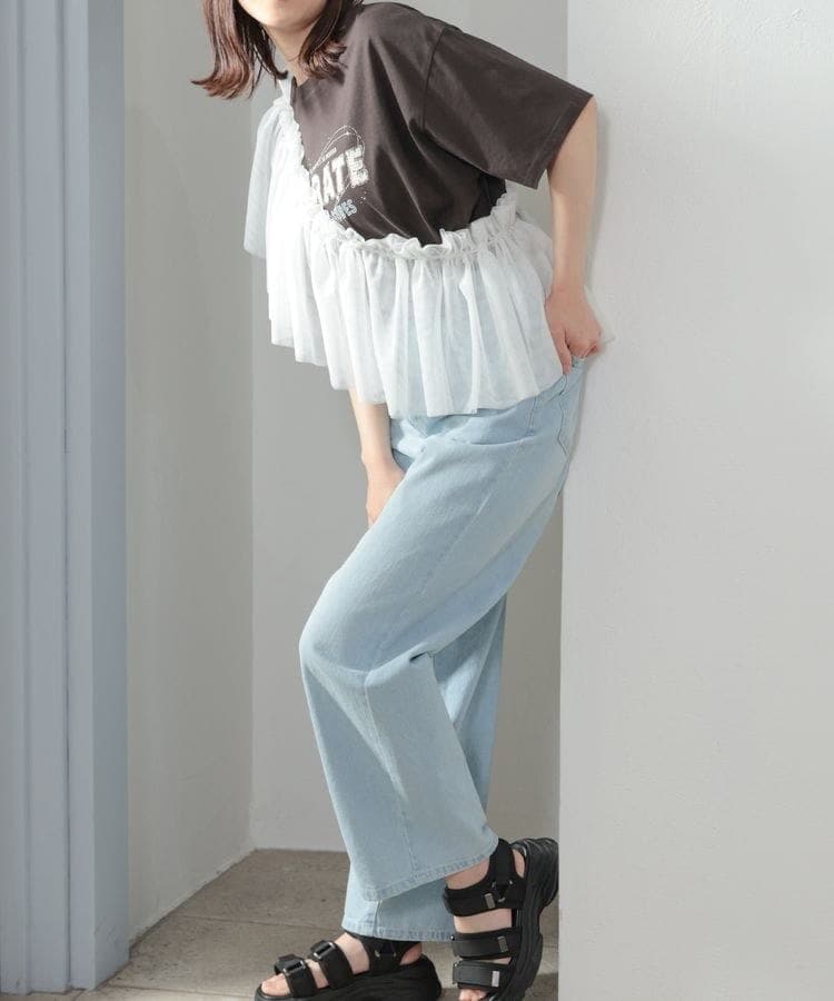 シンプルなTシャツやスウェットなどに合わせるだけで、いつものコーデをトレンド感たっぷりに◎