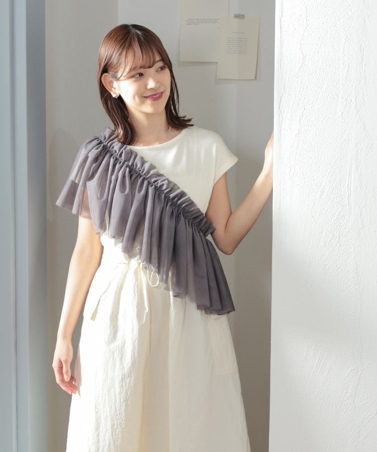 つけ衿、ビスチェ風、ベルト風、斜め掛けなど、様々な着こなしが楽しめるマルチWayデザイン。