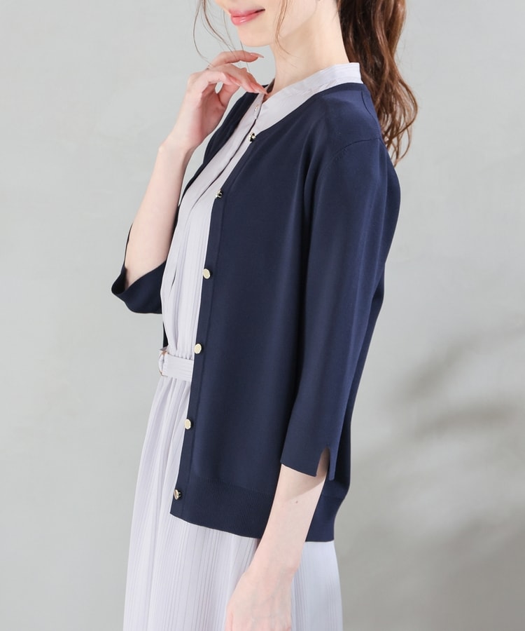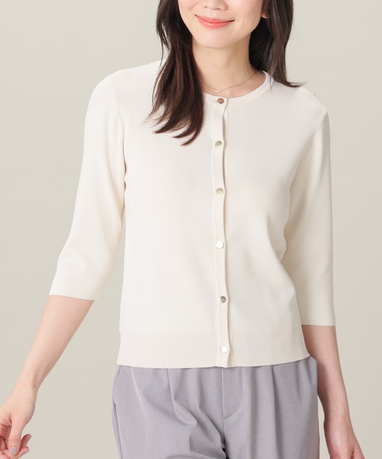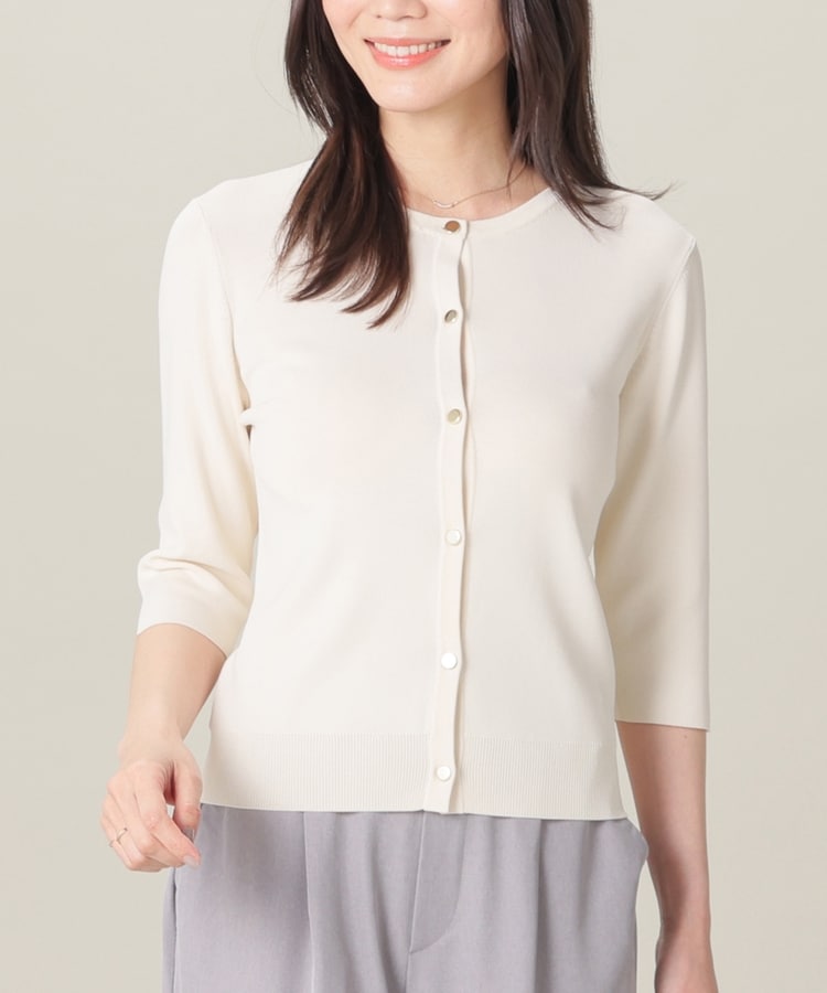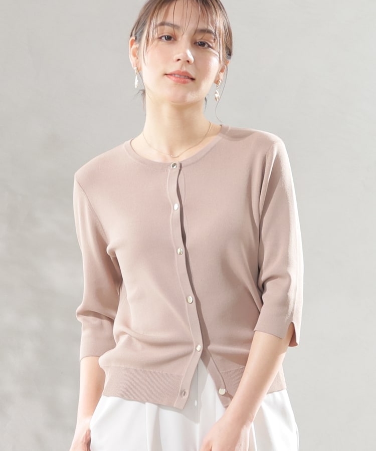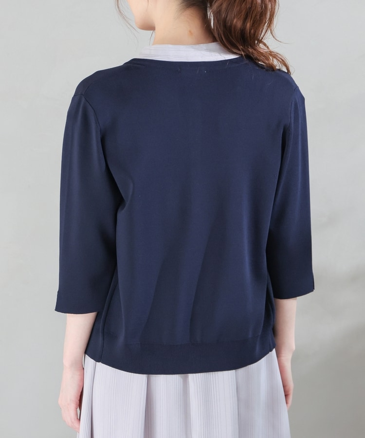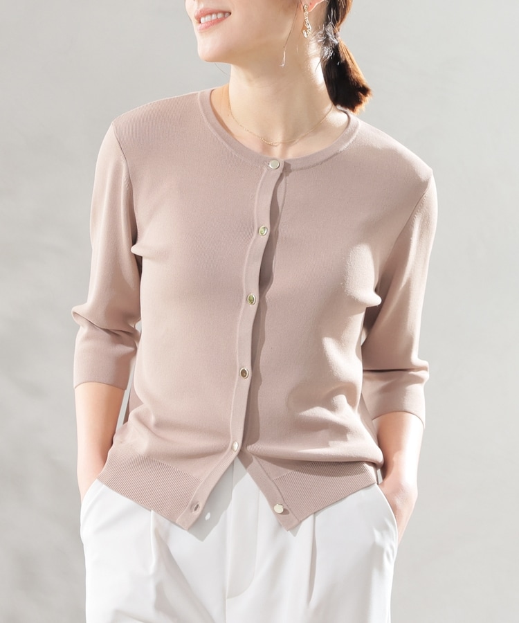 さらっとした肌触りのレーヨン混ハイゲージニット素材。