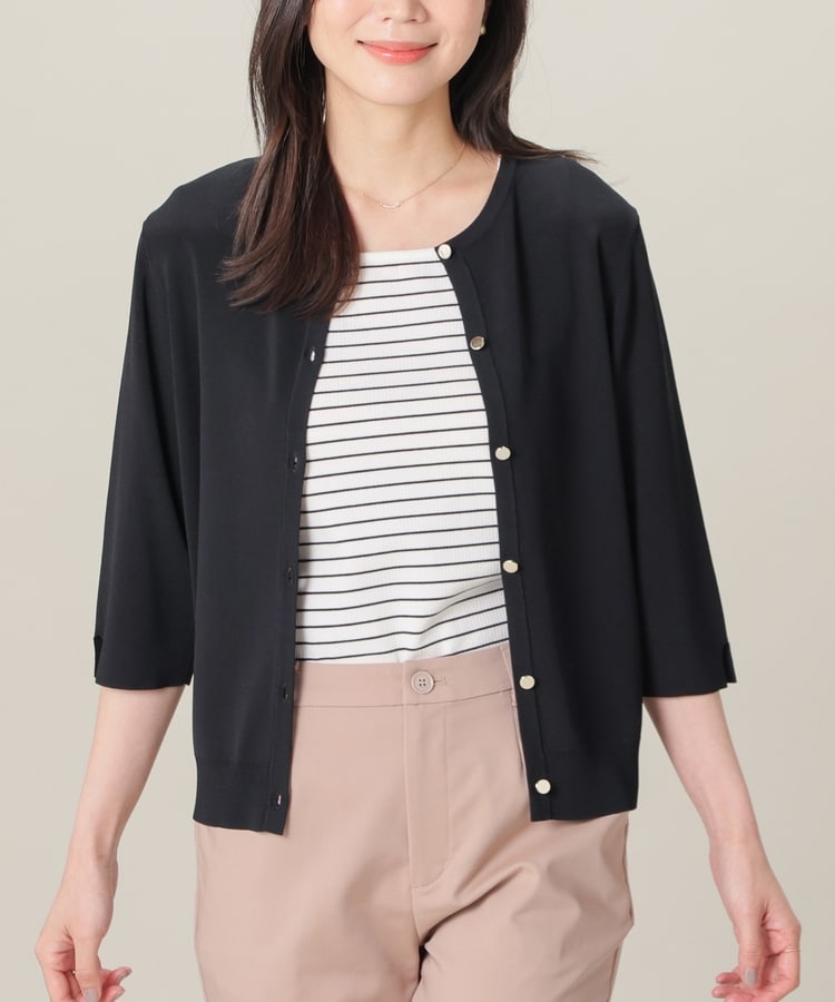 ひんやり快適な『接触冷感』と、洗濯機で洗える『ウォッシャブル』、紫外線対策ができる『UVカット』の機能が付いた、触れるたび涼しく、着るだけで美しい『美冷』アイテム。