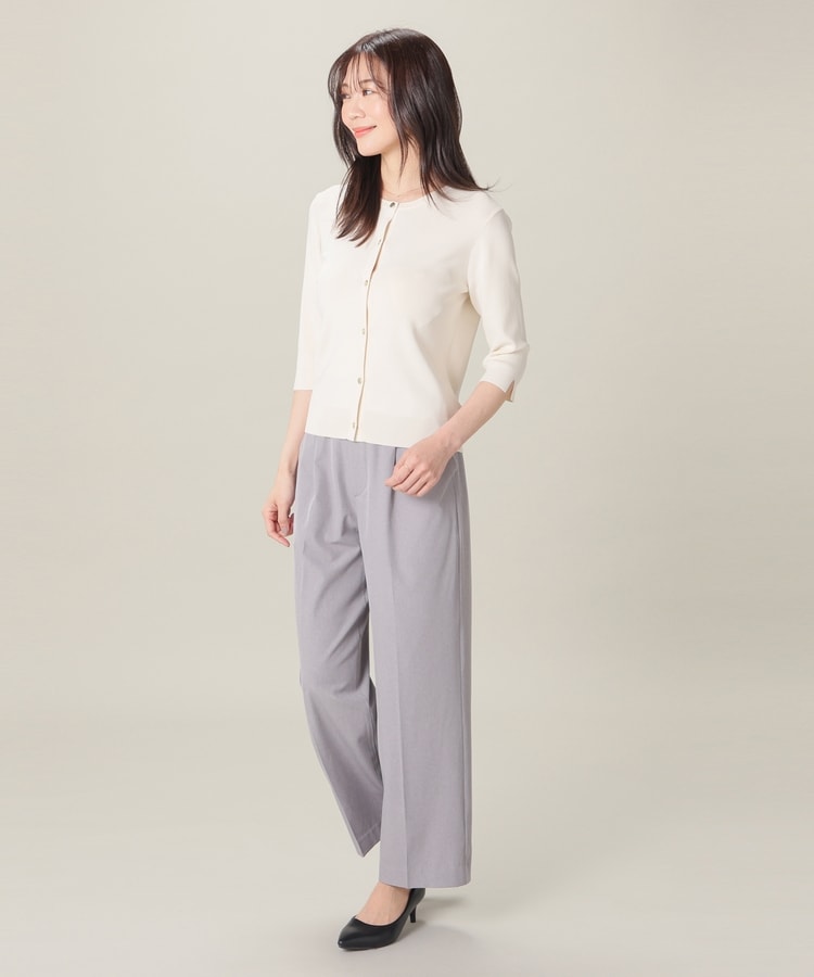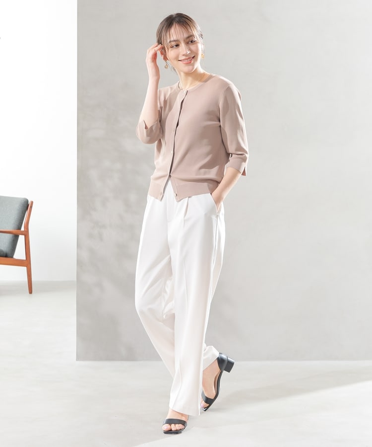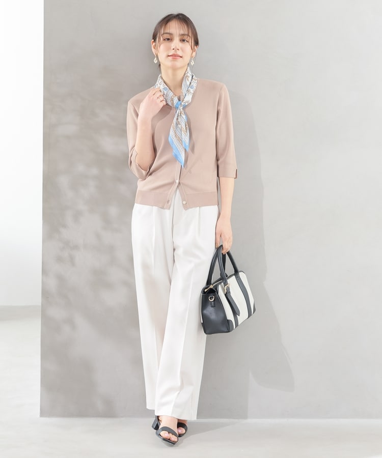 きれいめなテーパードパンツやタイトスカートと合わせた通勤スタイルから、デニムと合わせたカジュアルスタイルまで幅広い着回しに活躍。