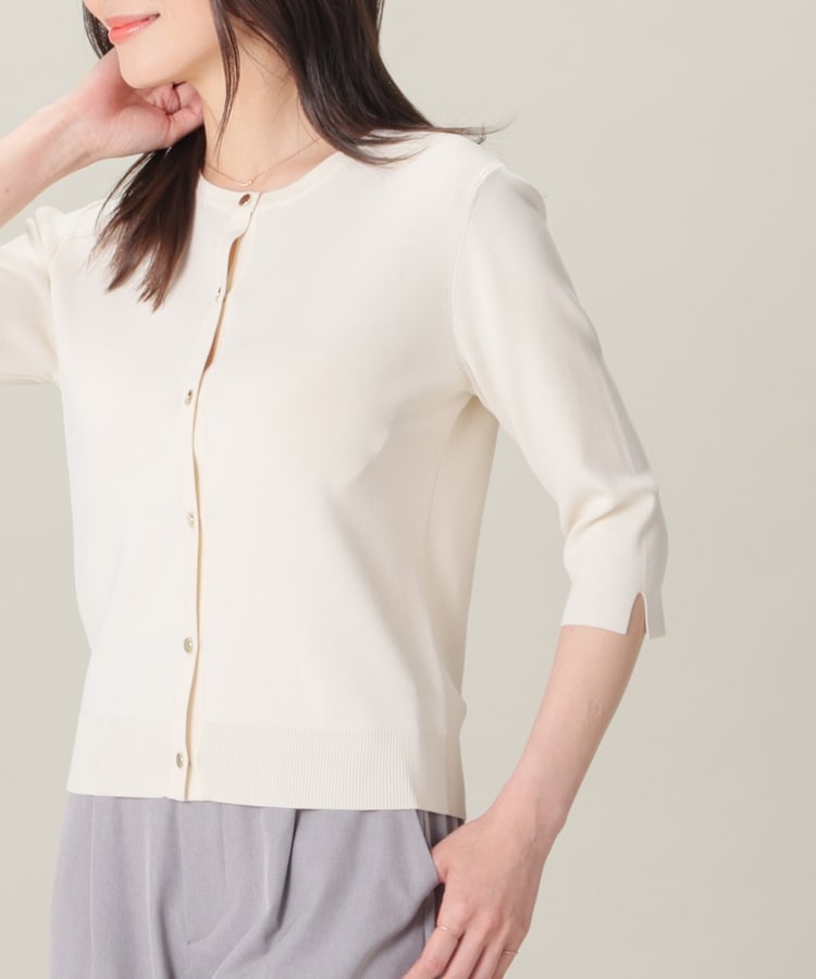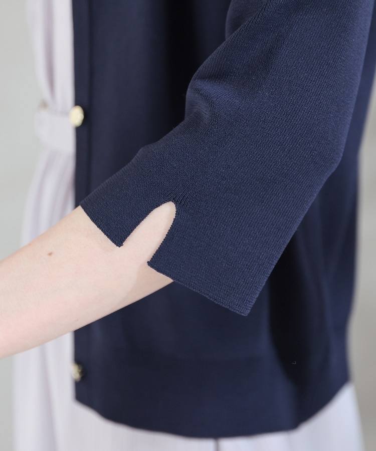 シンプルデザインの袖口に、そのままでもターンバックしてもこなれたアクセントになるスリットを入れて抜け感をプラス。