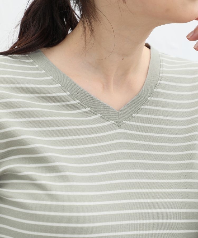 デコルテをきれいに見せるVネックがスタイリッシュなシンプルデザイン。