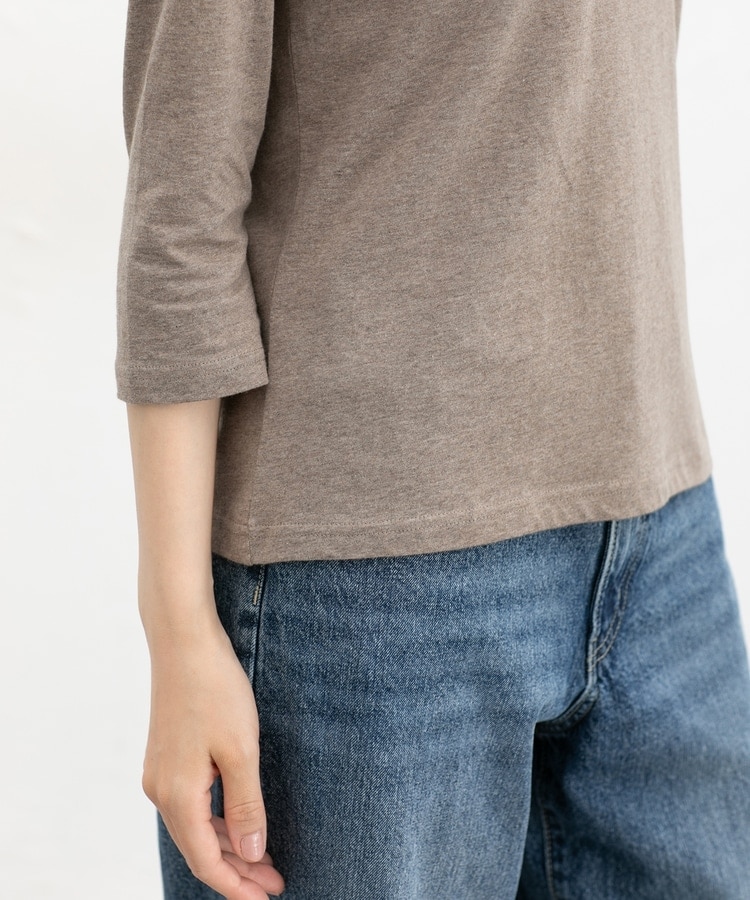 ベーシックで優しい印象の、開きすぎないクルーネックデザイン。