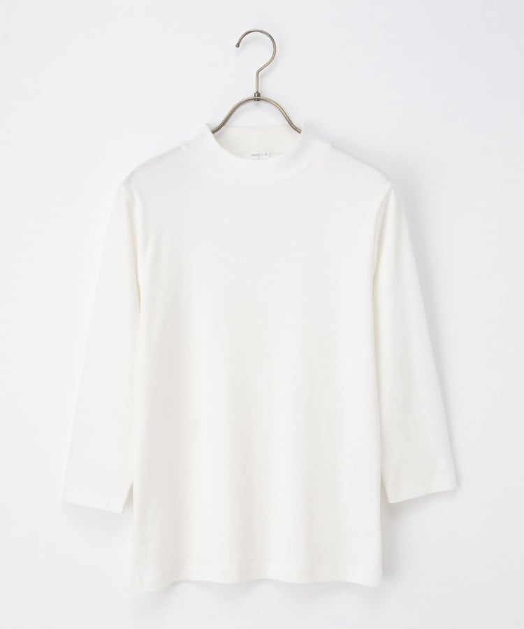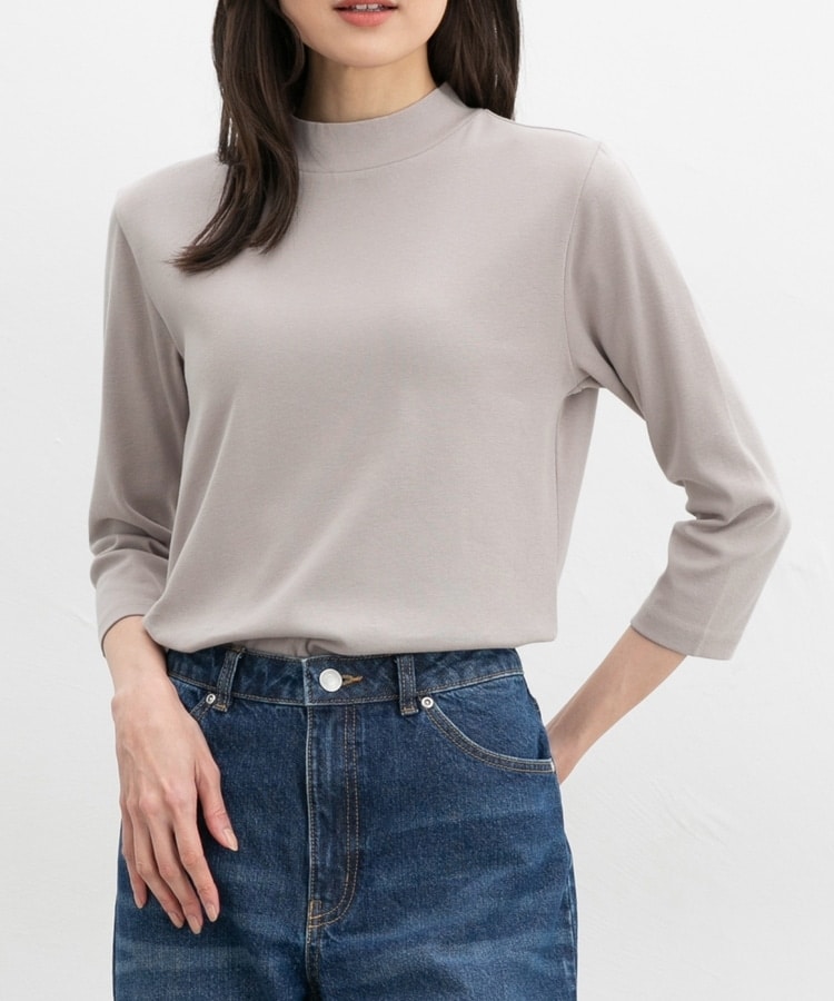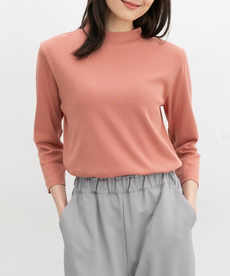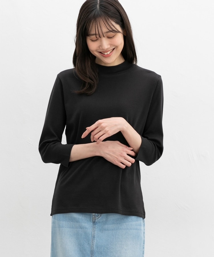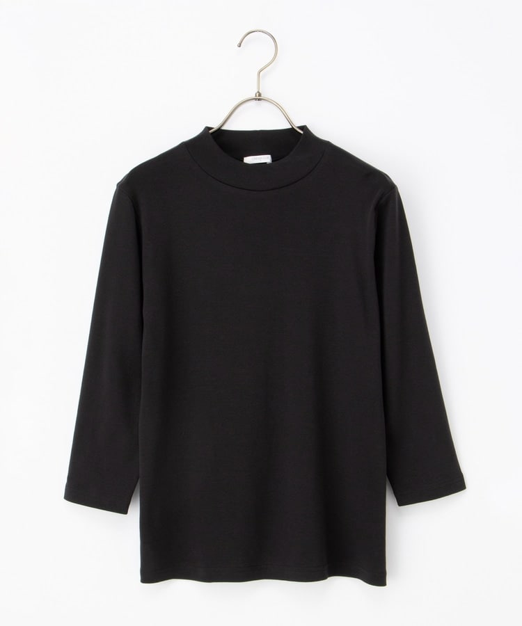 首元を程よく隠すプチハイネックがこなれた印象のシンプルデザイン。