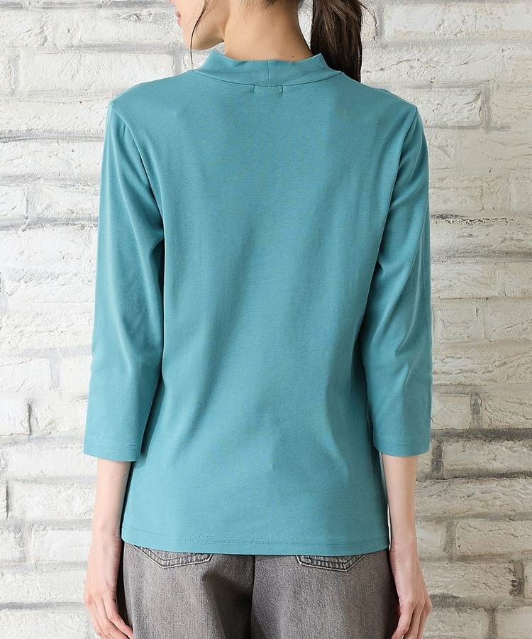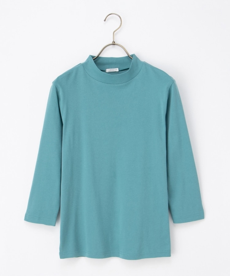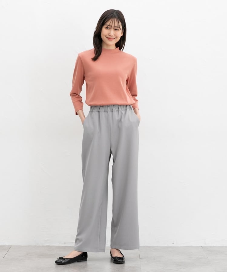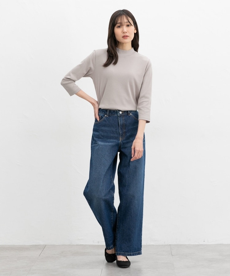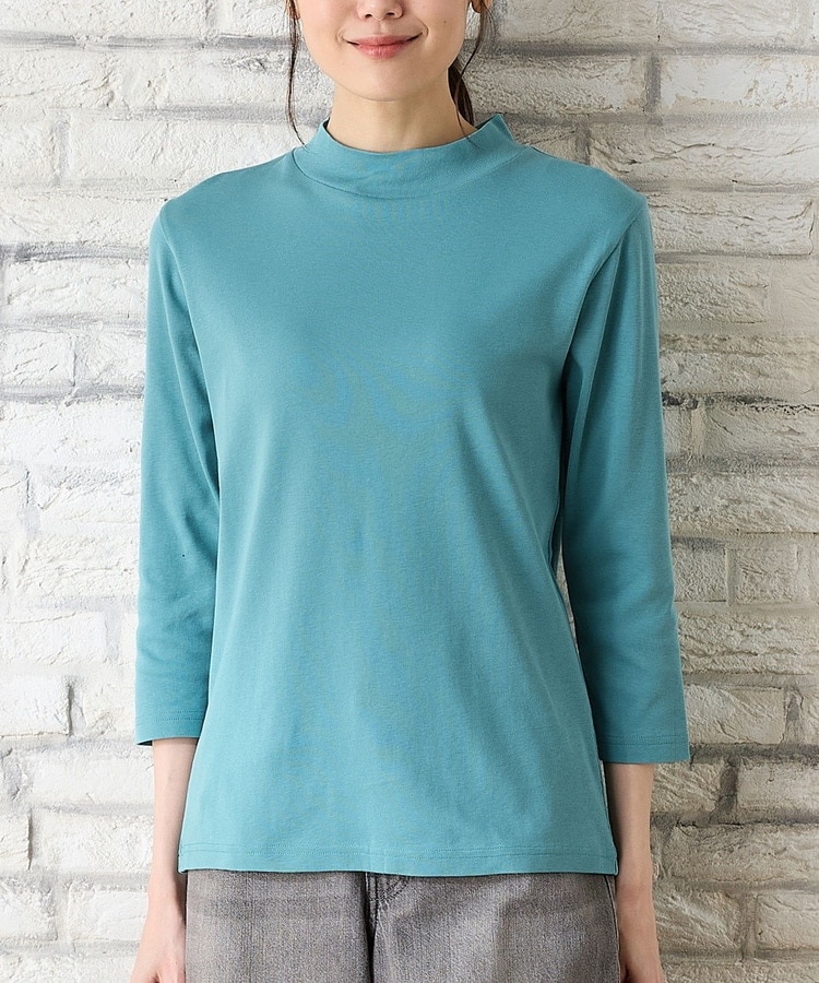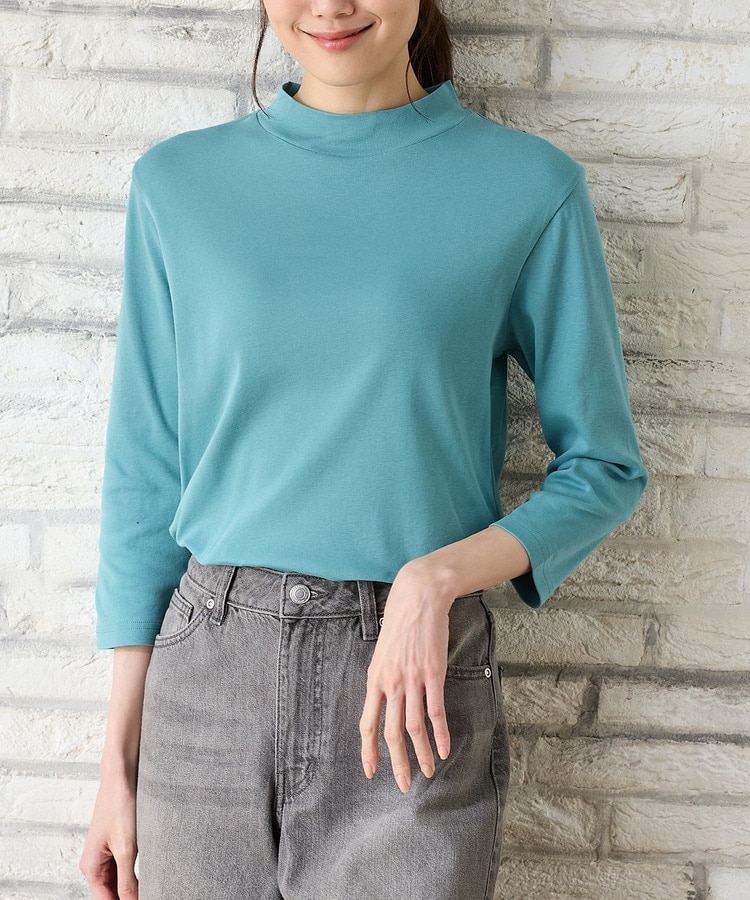 首元を程よく隠すプチハイネックがこなれた印象のシンプルデザイン。