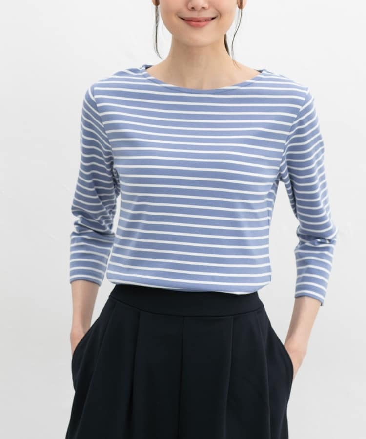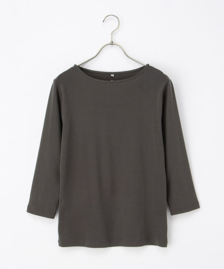 デコルテをきれいに見せてくれるボートネックのシンプルデザイン。