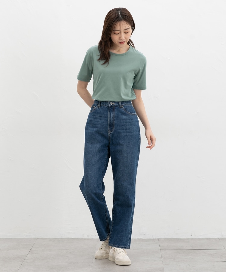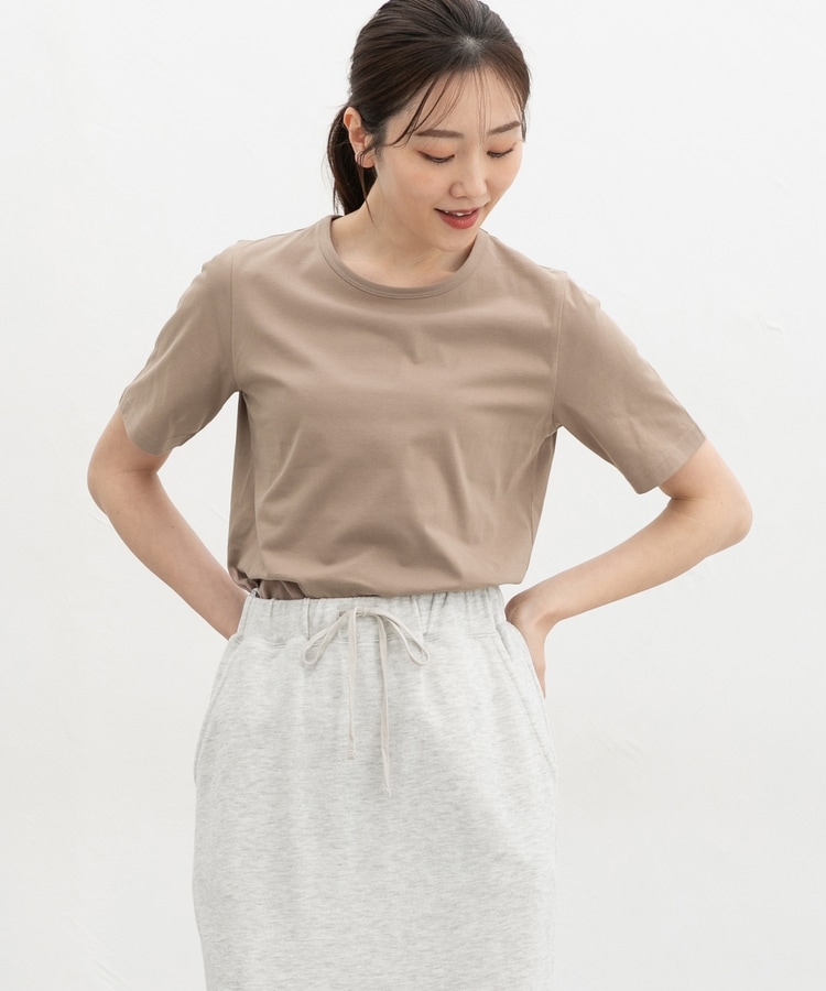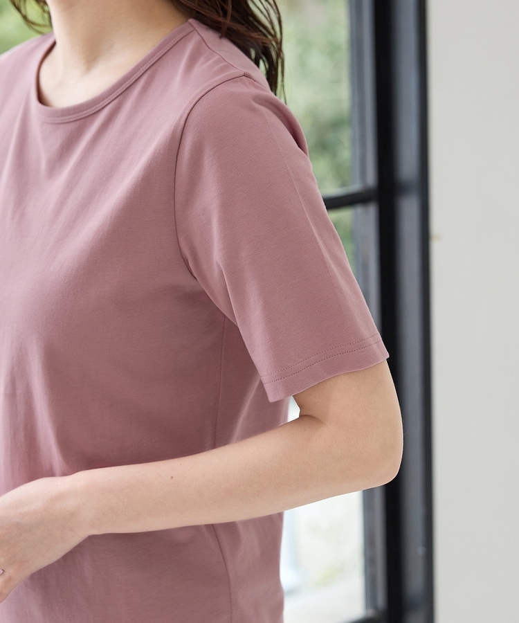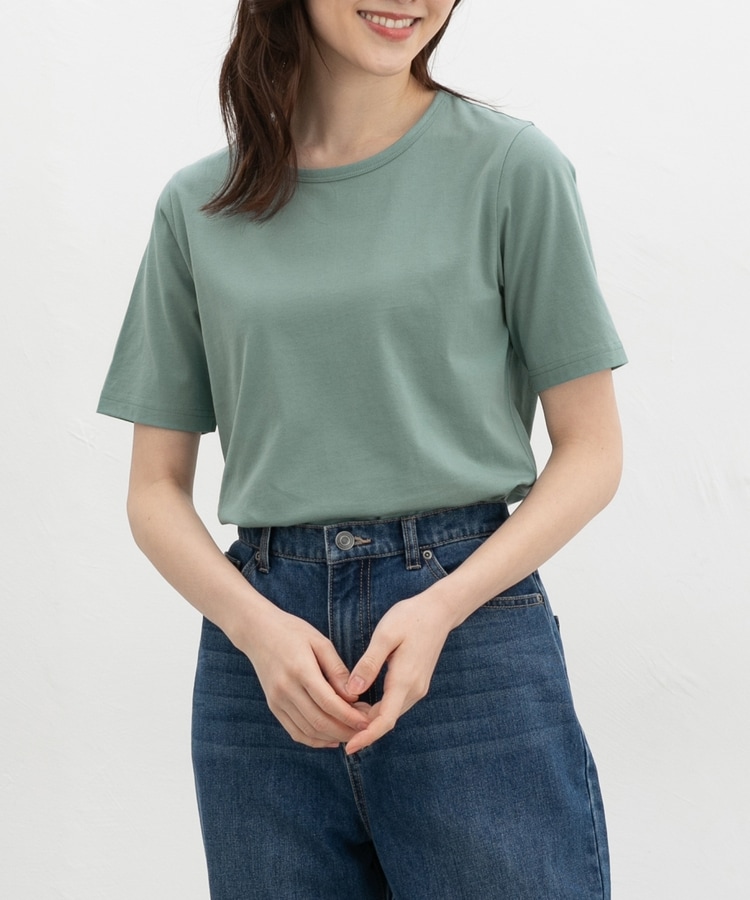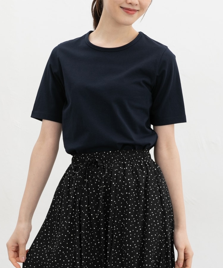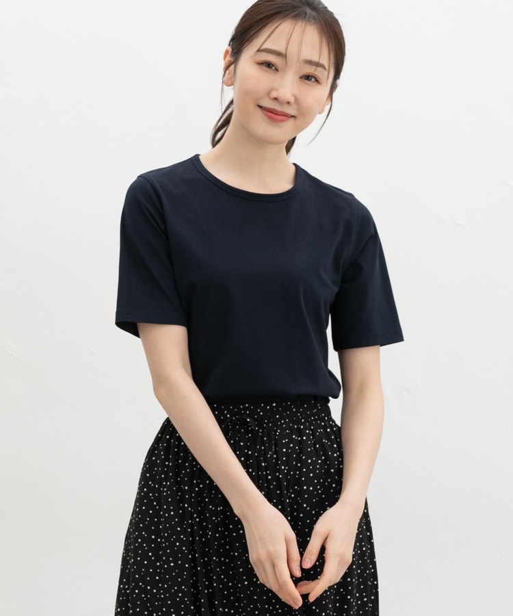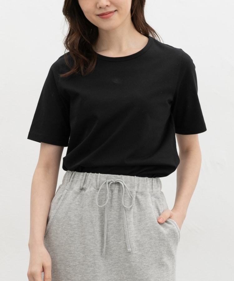 開きすぎないクルーネックのシンプルデザイン。
