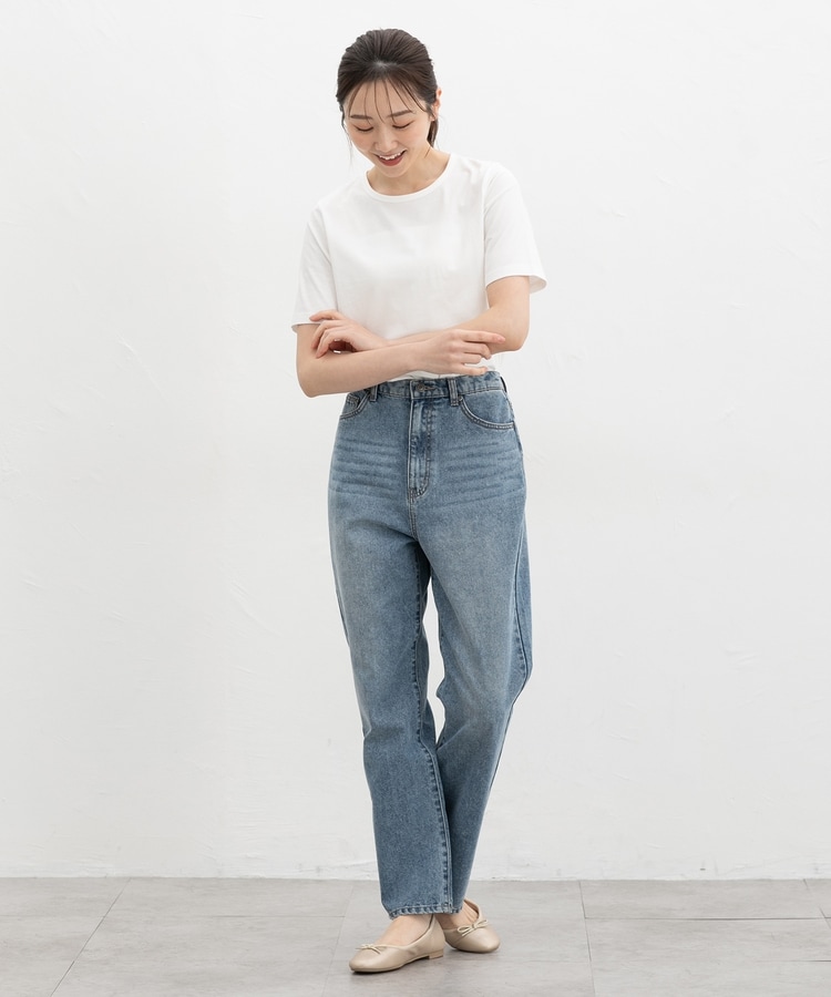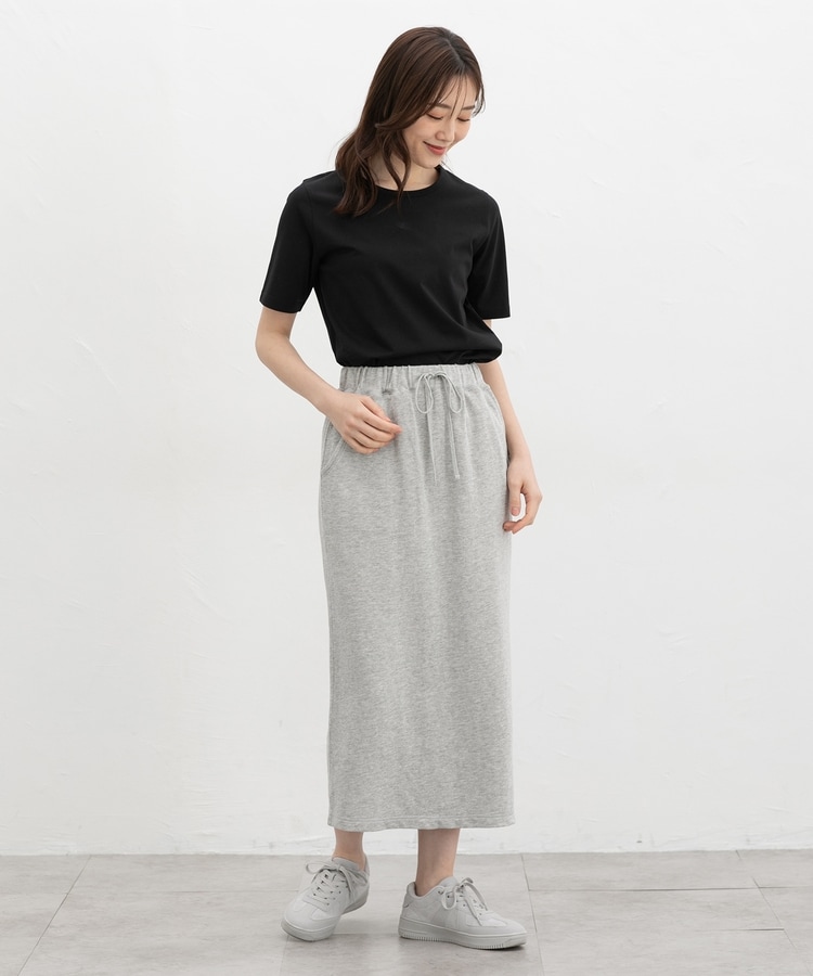 すっきりめの幅と腰にかかる丈感。
