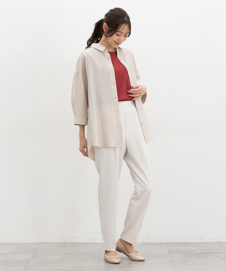 カジュアルなパンツやスカートはもちろん、ジャケットやきれいめボトムと合わせたオフィススタイルにも、幅広く大活躍。