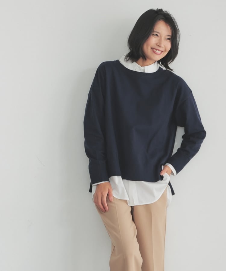 どんなボトムスとも合い、タックインはもちろん、タックアウトしてそのままのシルエットを楽しんでも◎
