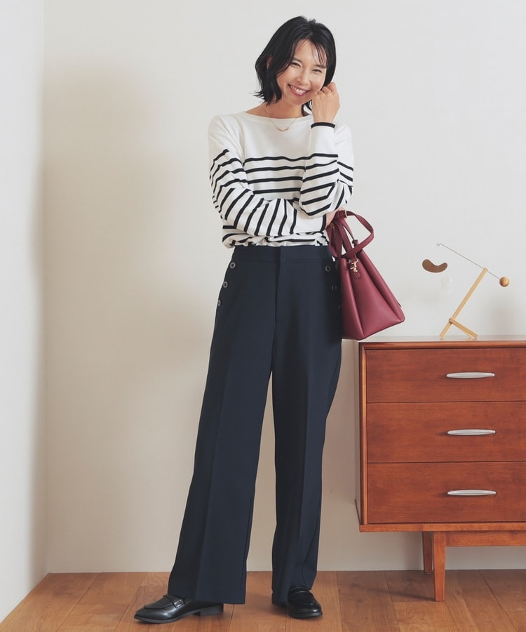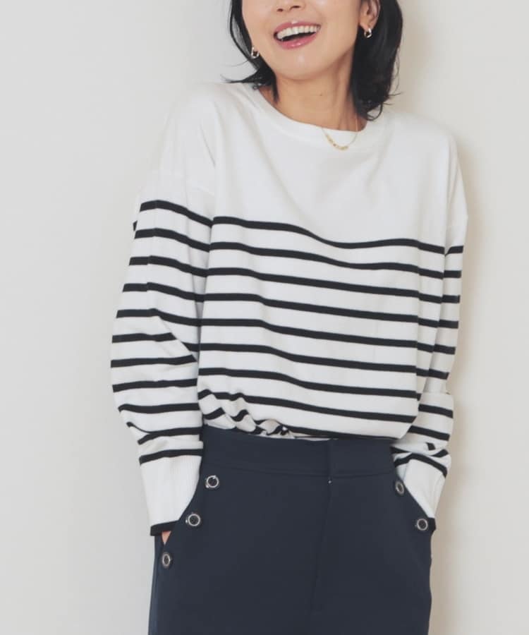 着回しやすい無地と、大人可愛いナバルボーダー柄のバリエーション。