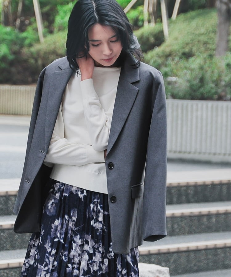 ジャケットにも合うサイズ感で、テーパードパンツ合わせのきれいめオフィススタイルから、デニム合わせのカジュアルスタイルまで幅広く活躍。