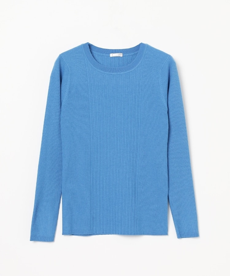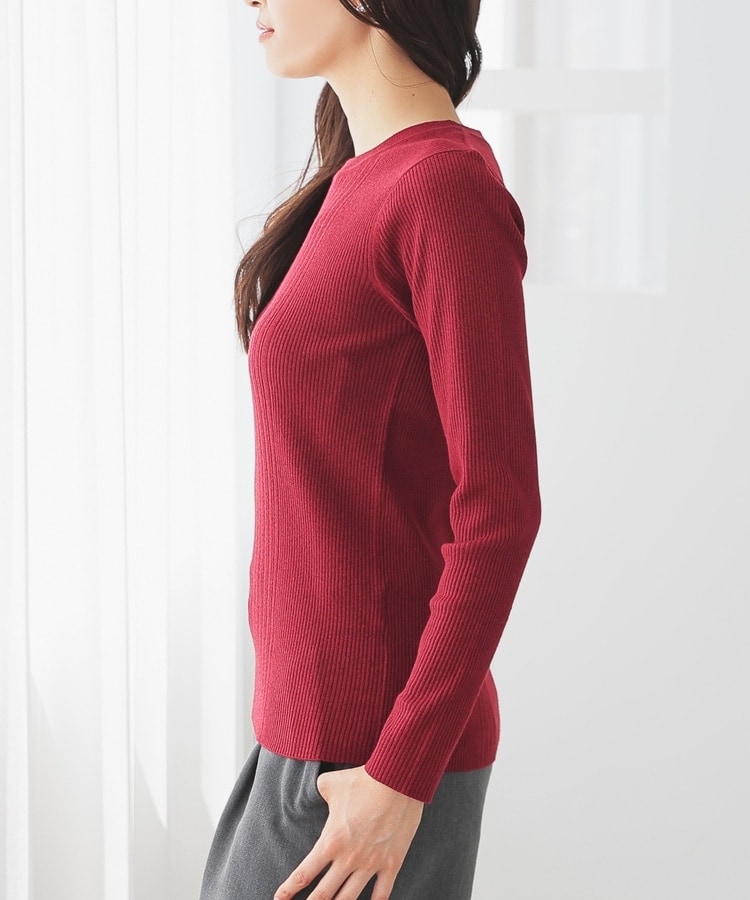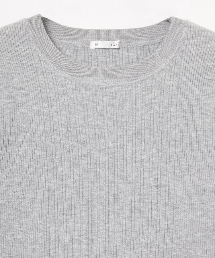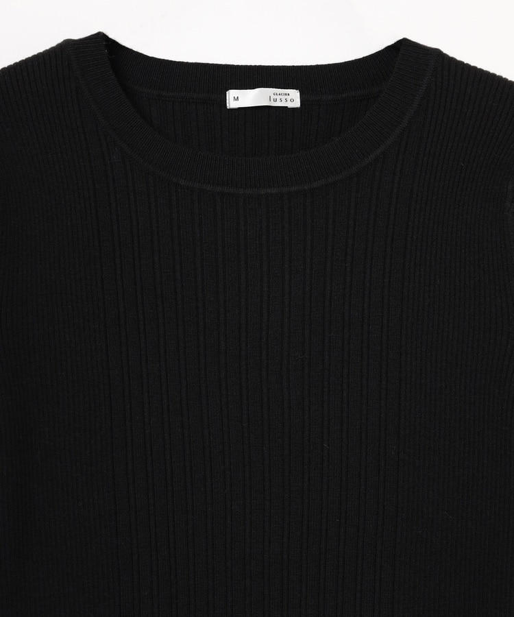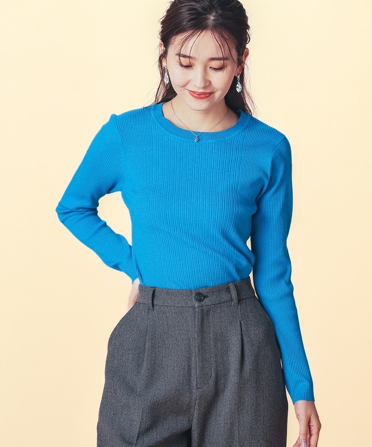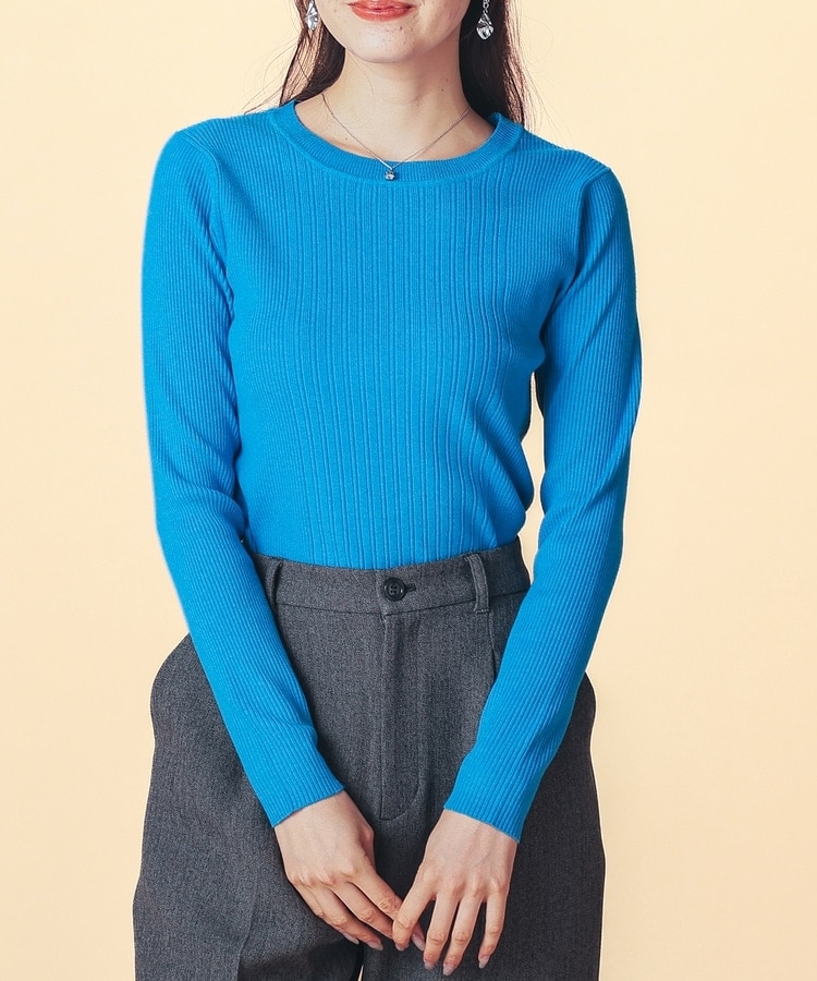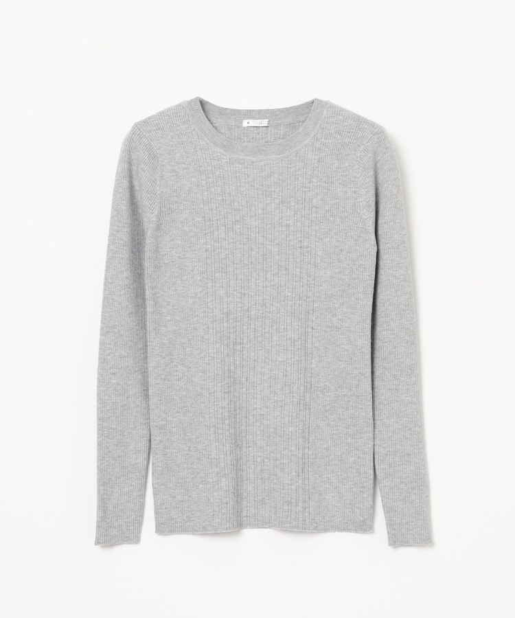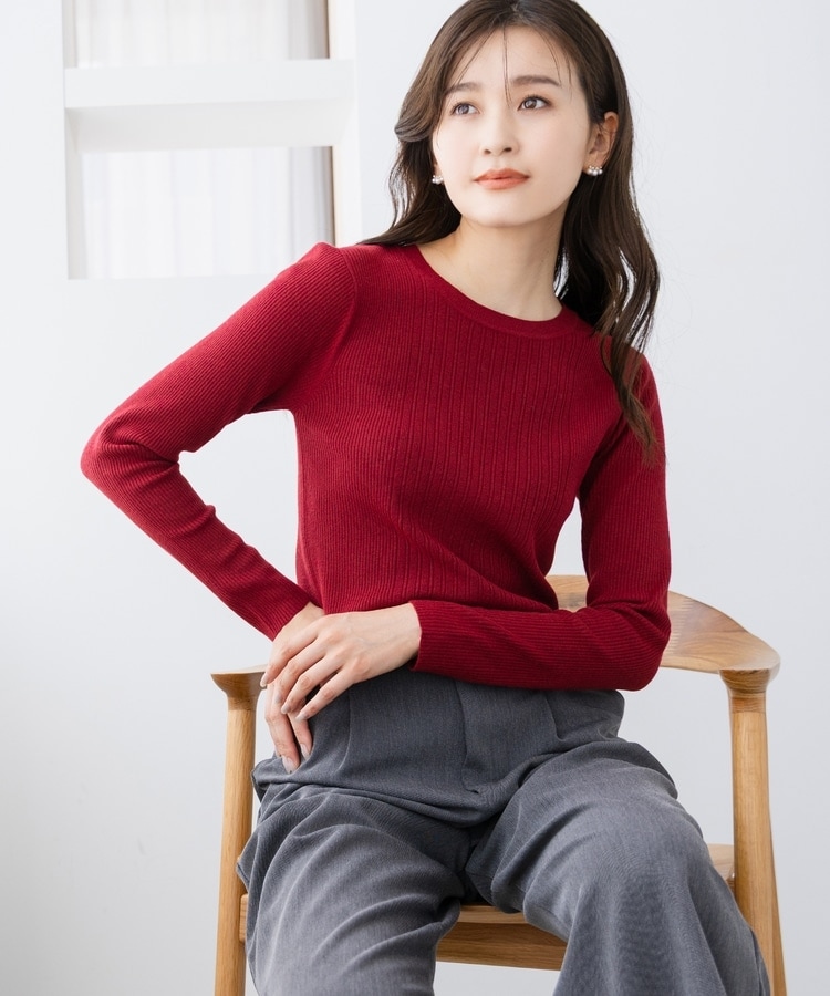 シンプルなシルエットに、リブの間隔を変化させた変則編みでアクセントをプラスした、細見え効果もあるデザイン。
