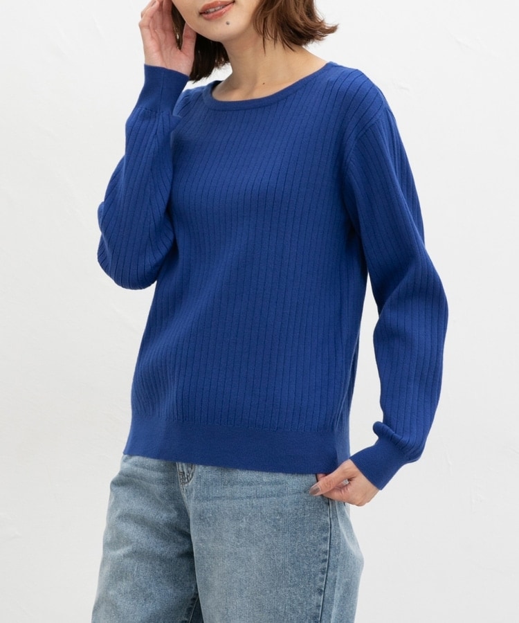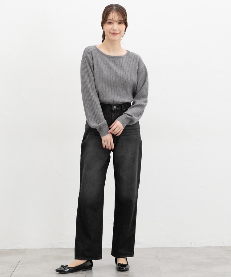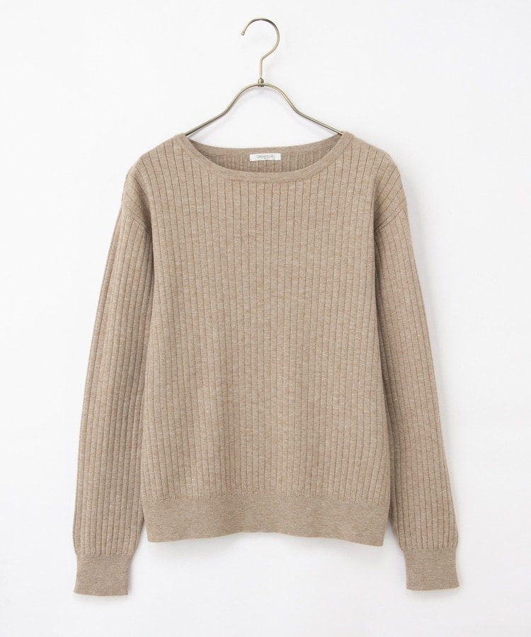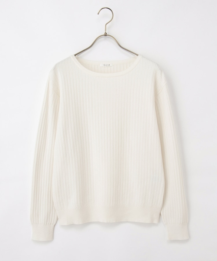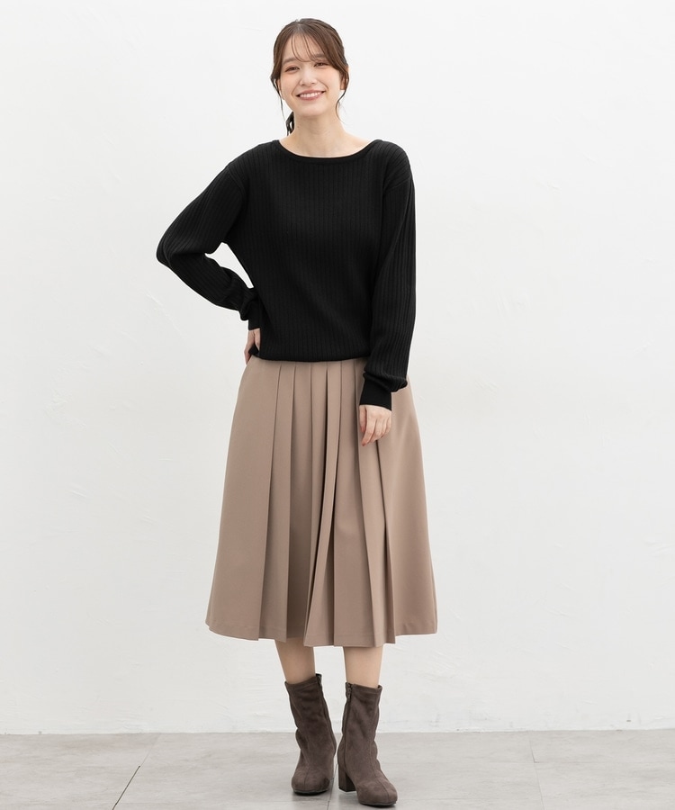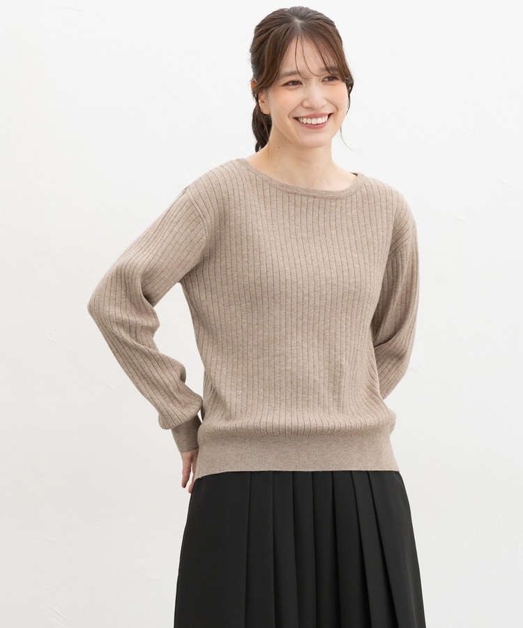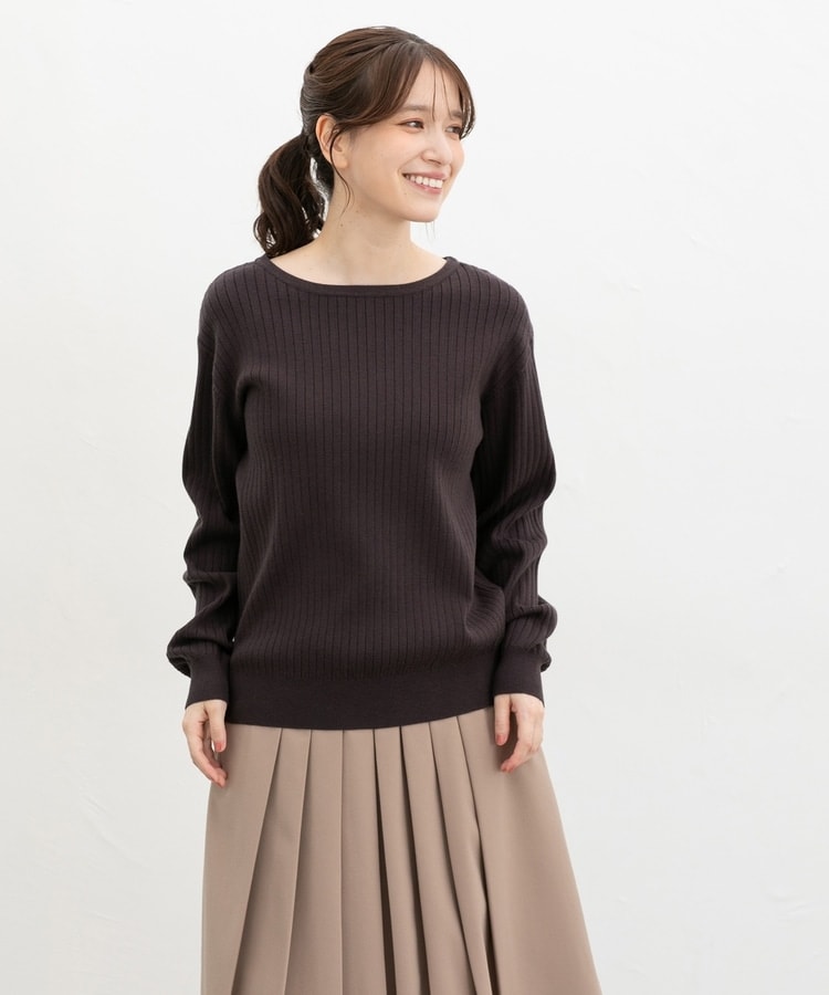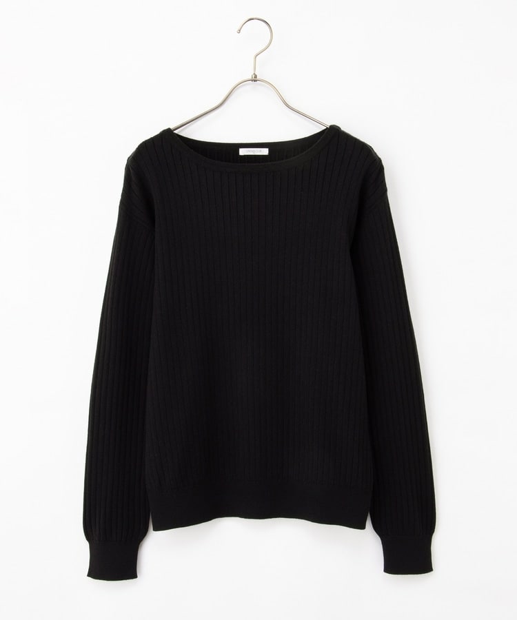 首回りがきれいに見えるボートネックのシンプルデザイン。