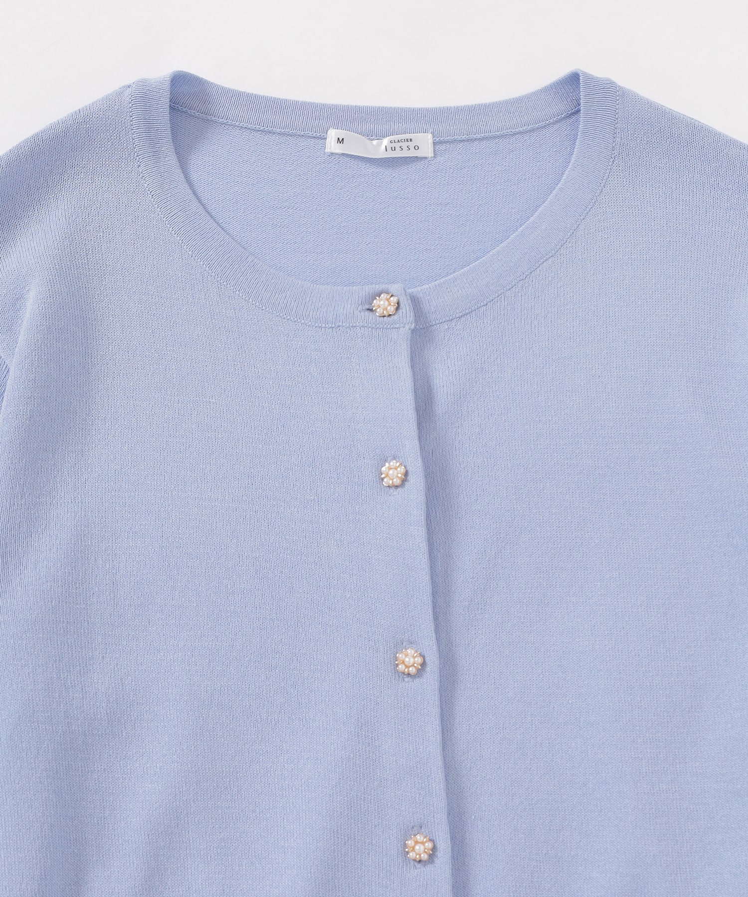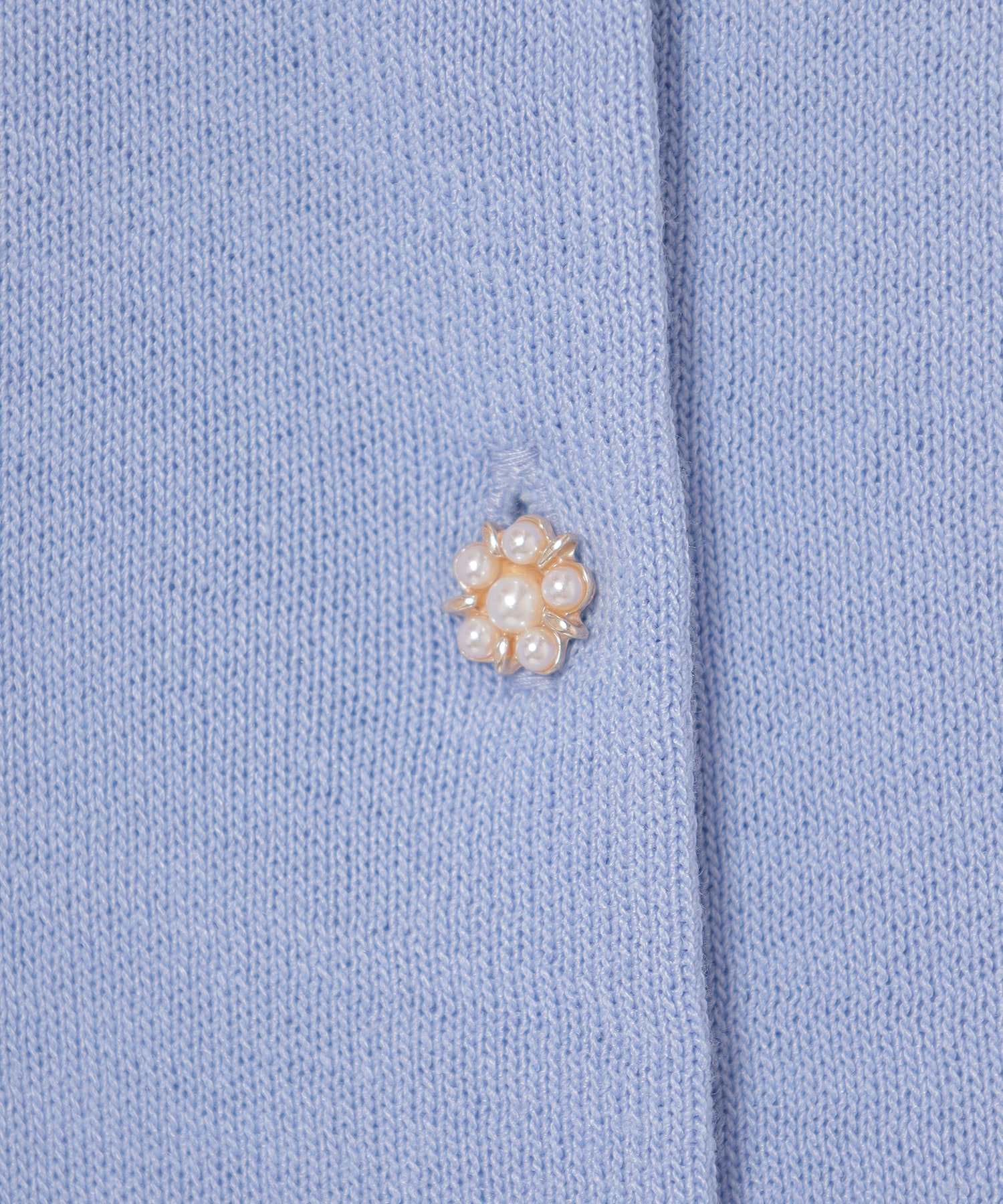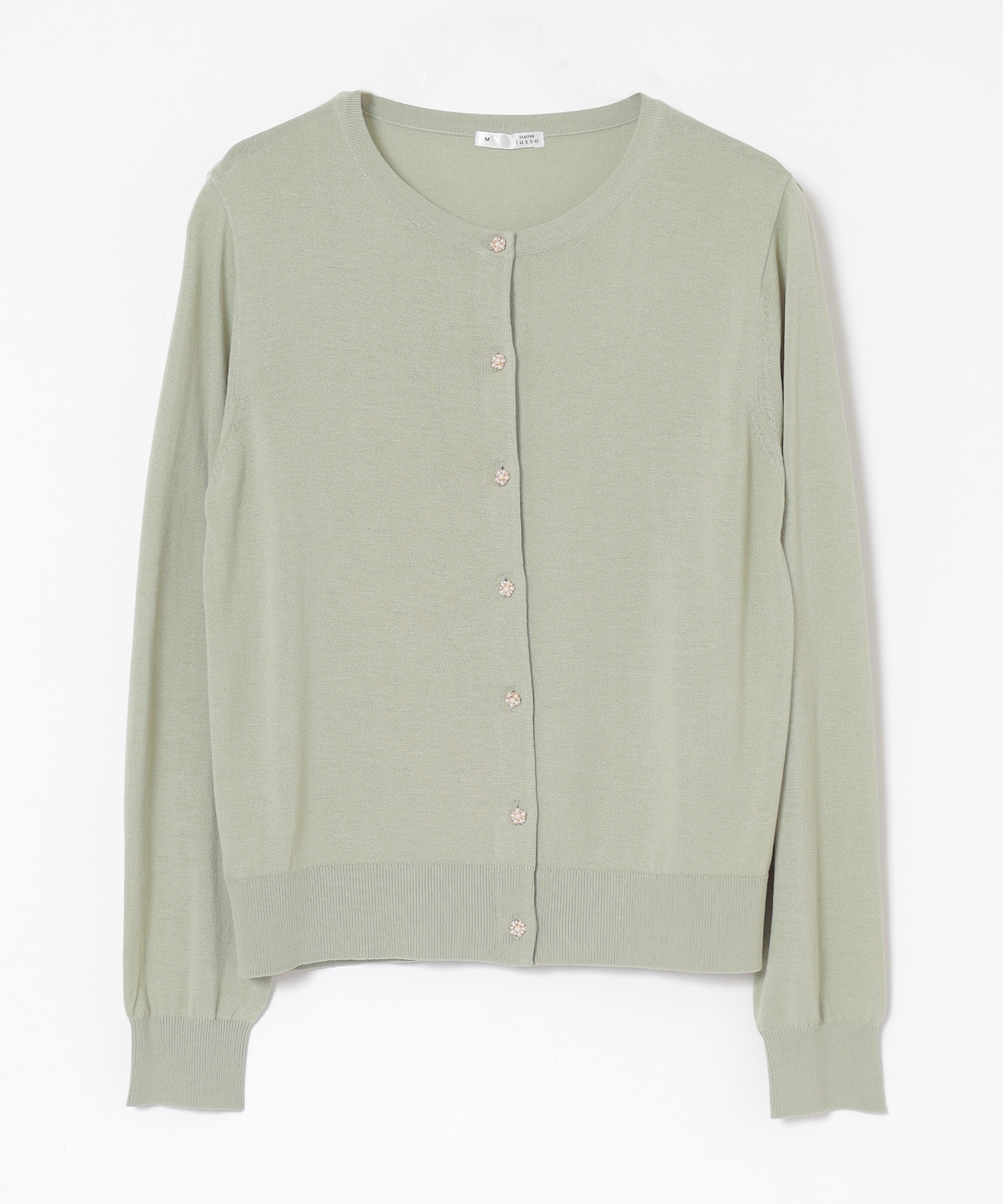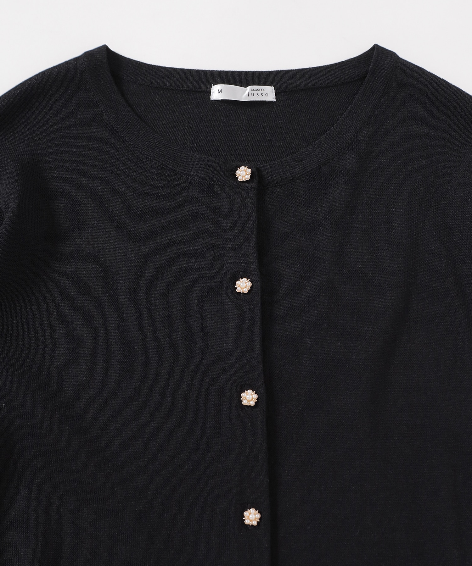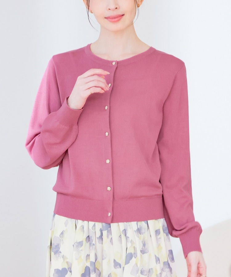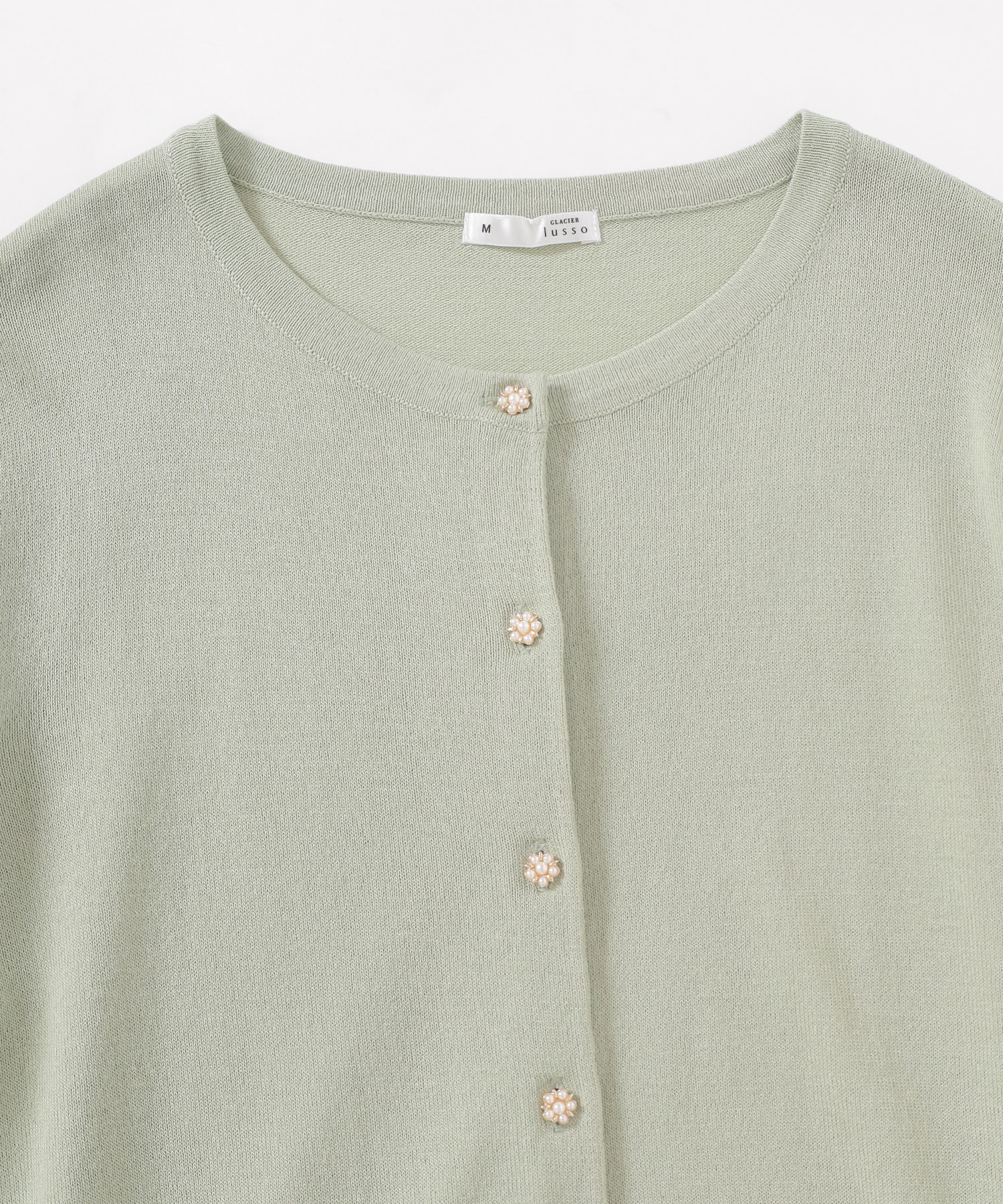 クルーネックのシンプルデザインに、ビジューボタンで華やかさをプラス。