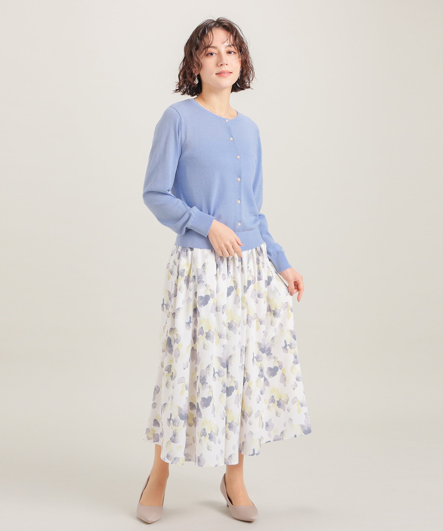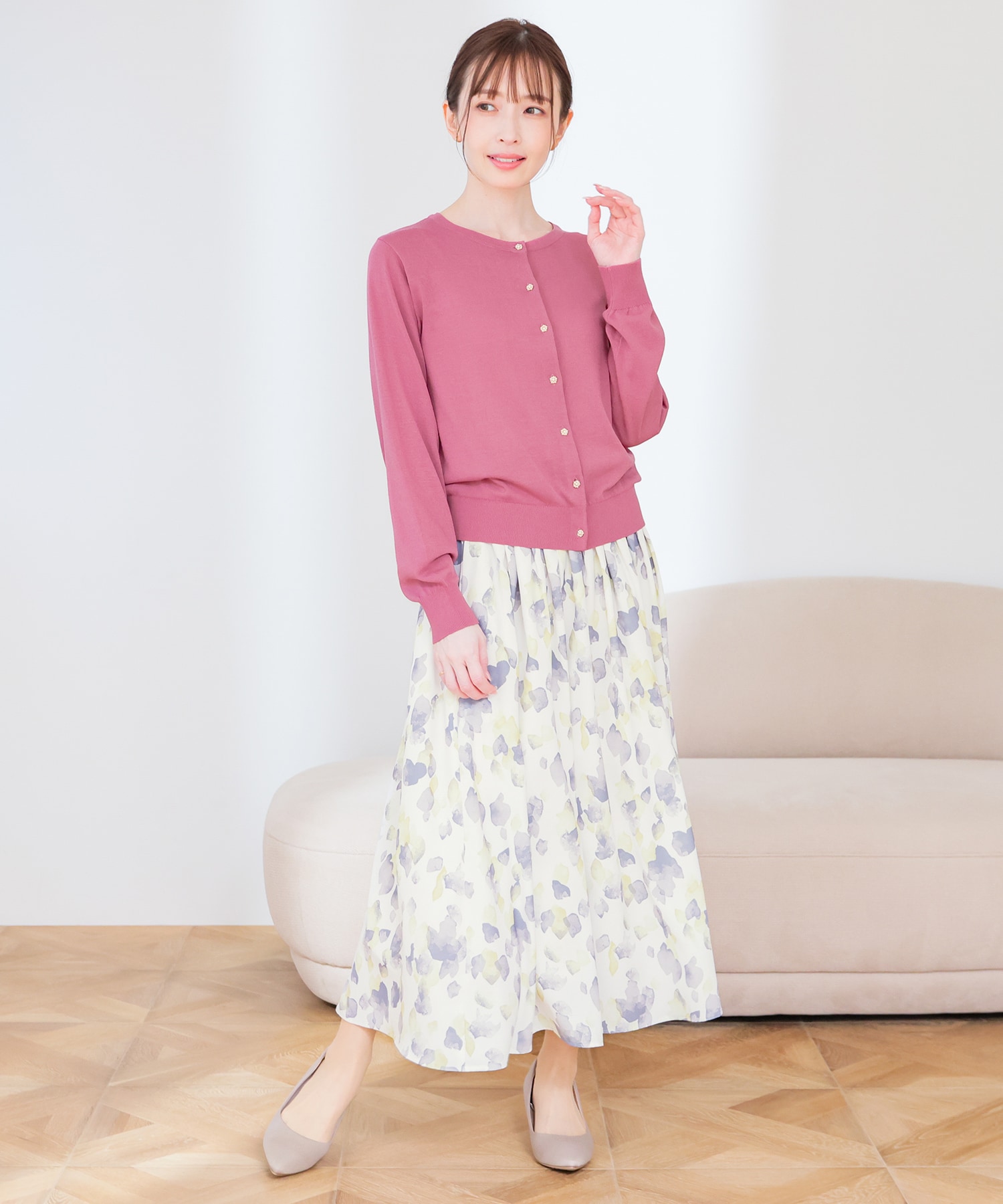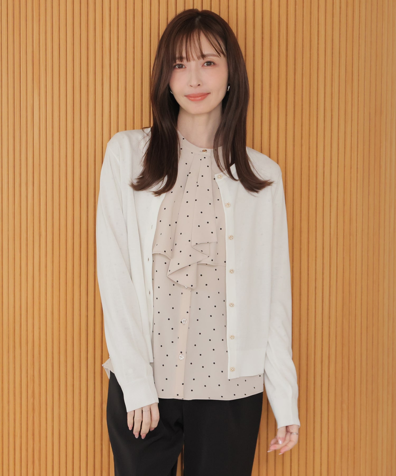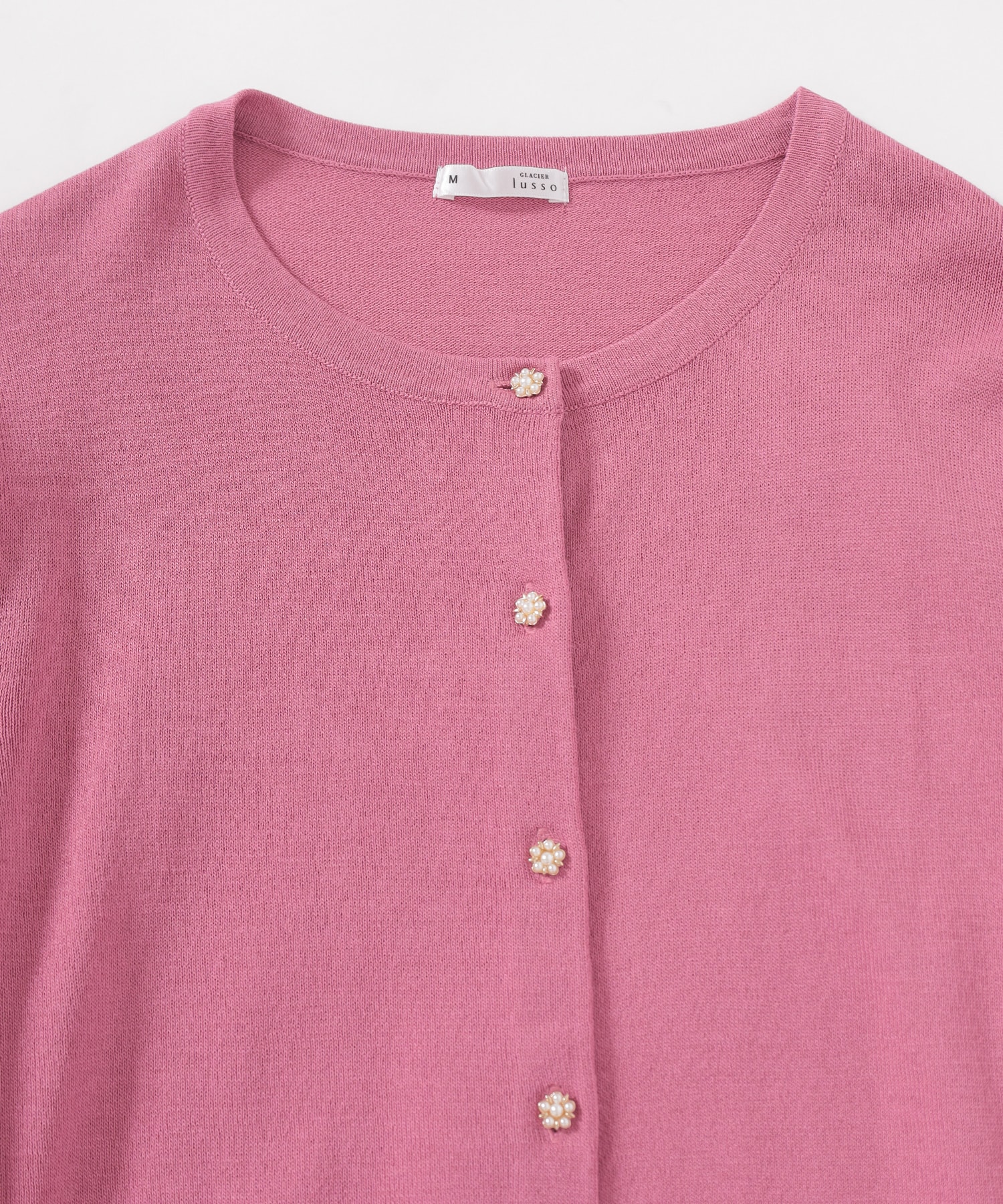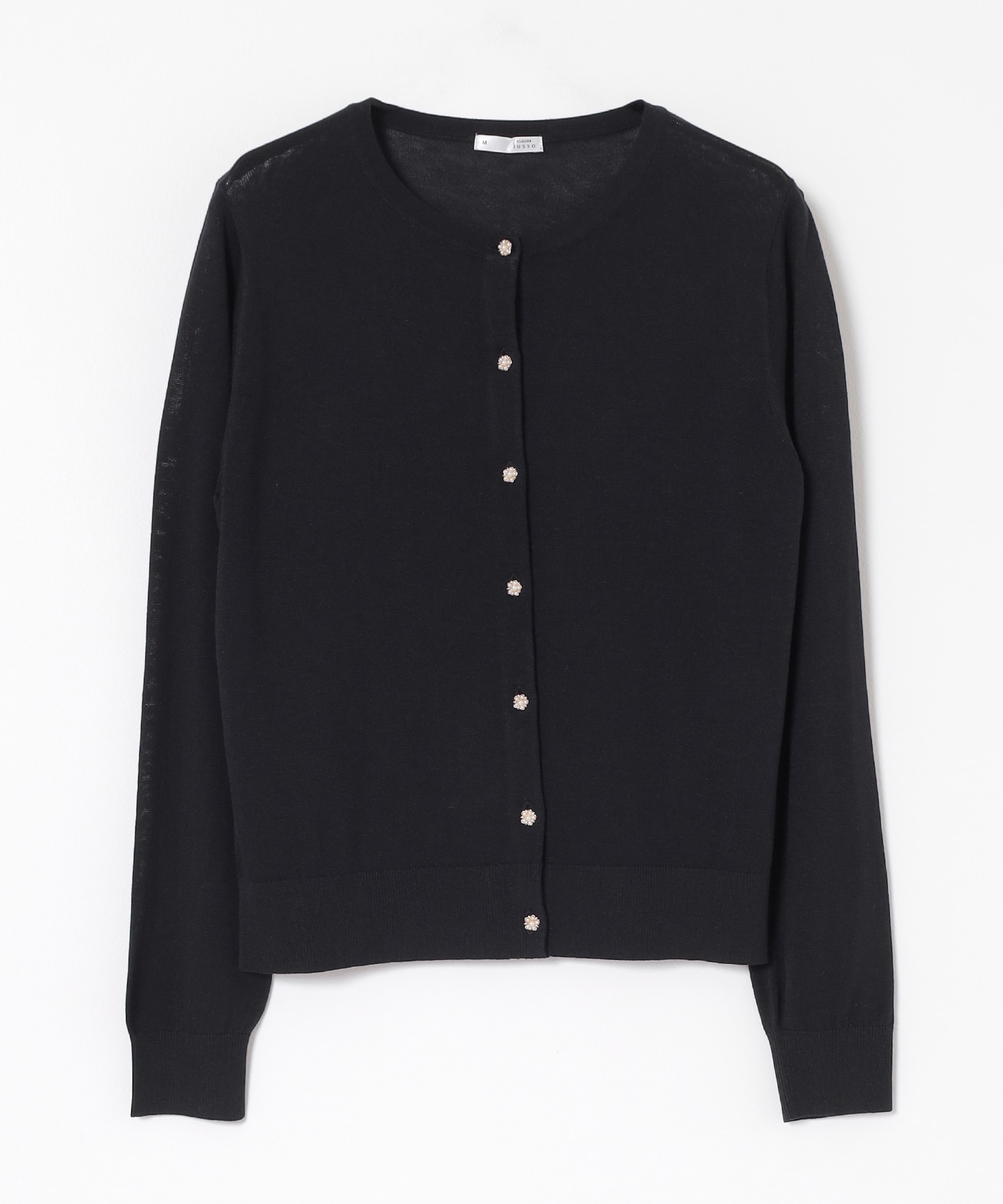 クルーネックのシンプルデザインに、ビジューボタンで華やかさをプラス。