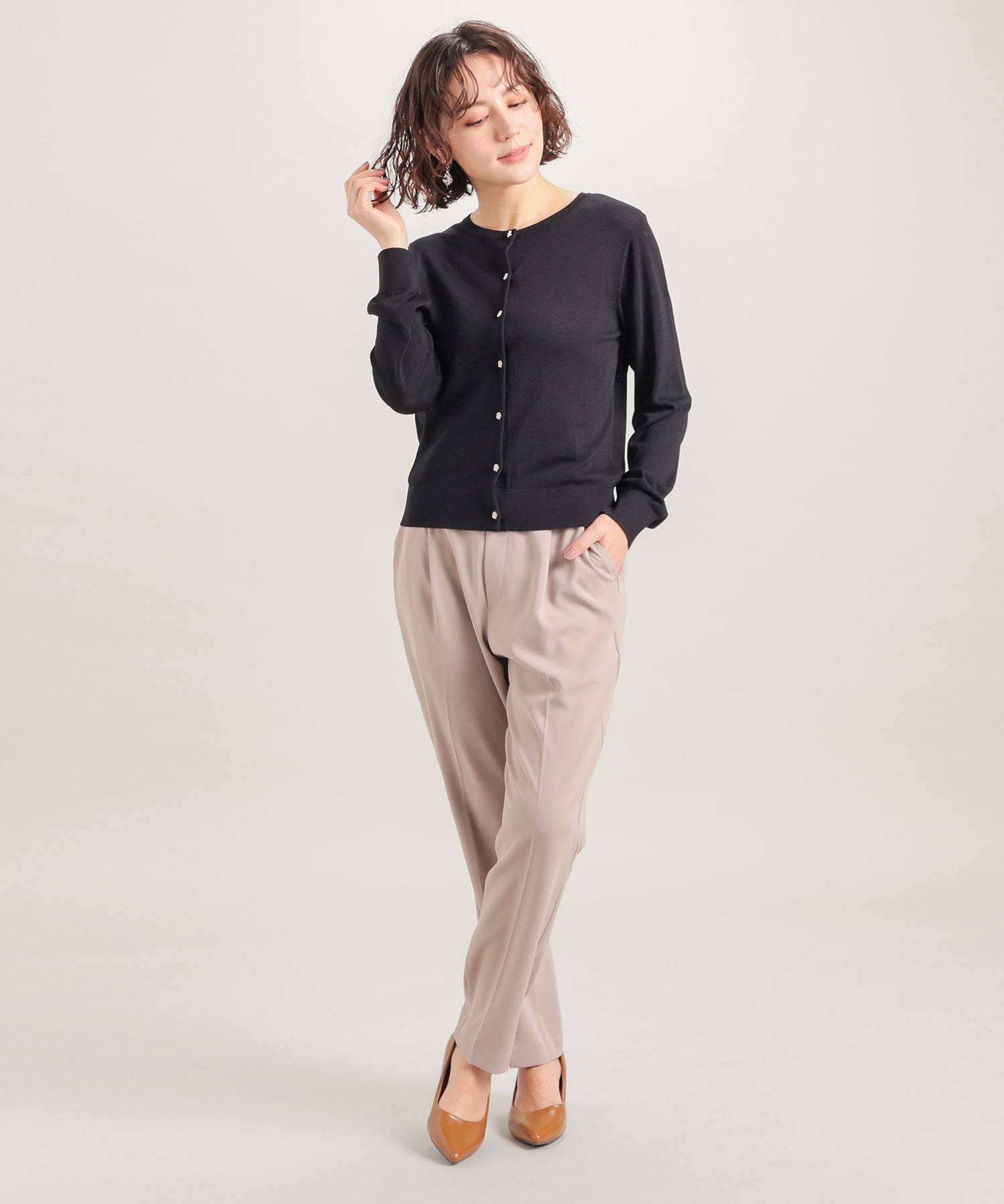 ジャケットにも合うサイズ感で、ブラウスと合わせた通勤きれいめスタイルから、Tシャツ合わせのカジュアルスタイルまで幅広い着回しに活躍。