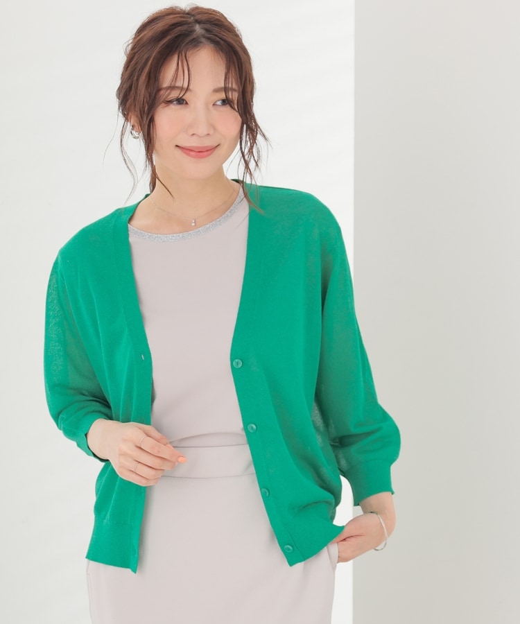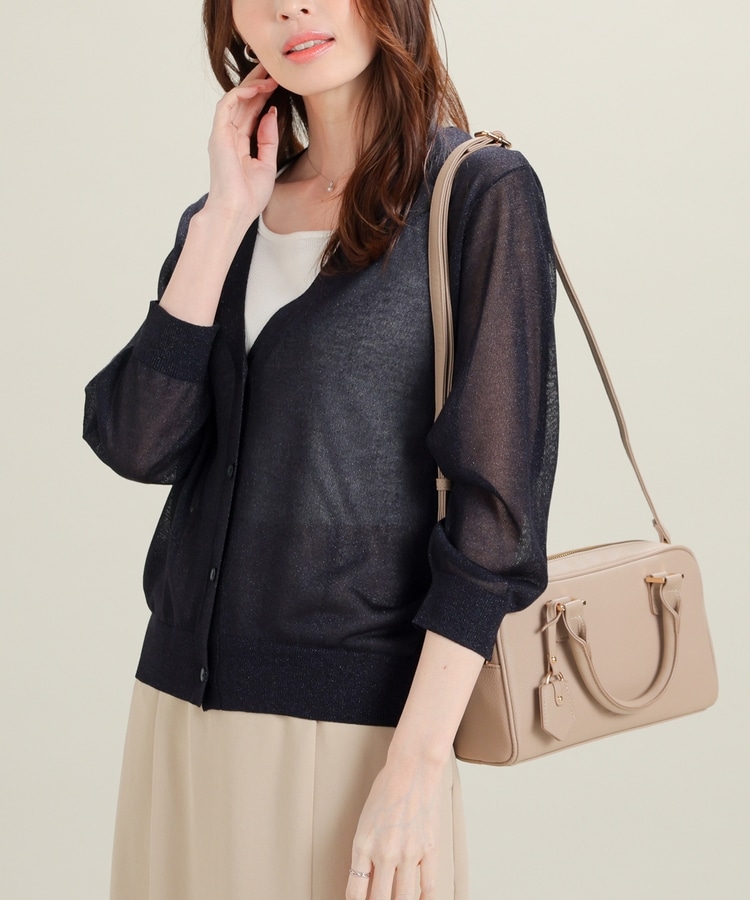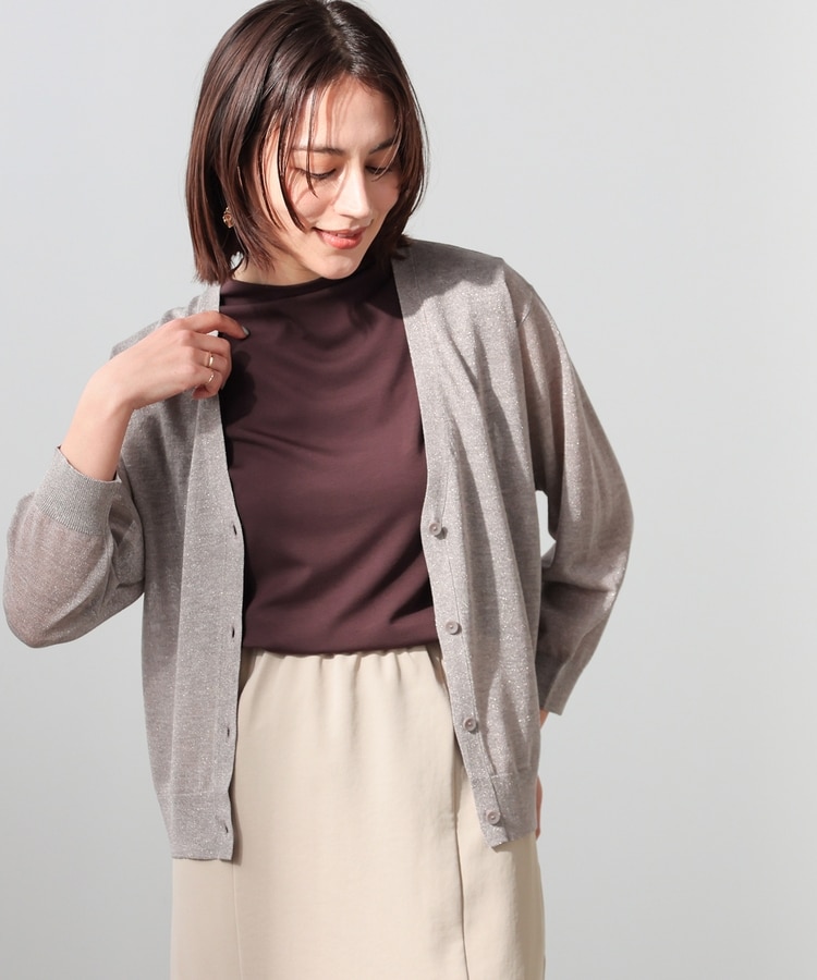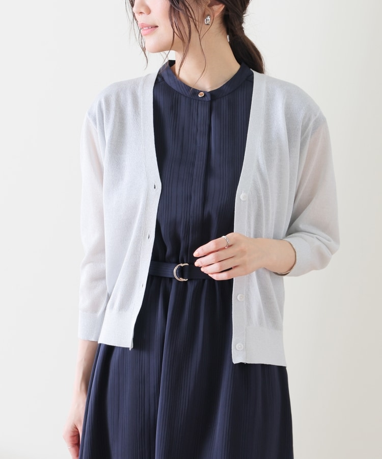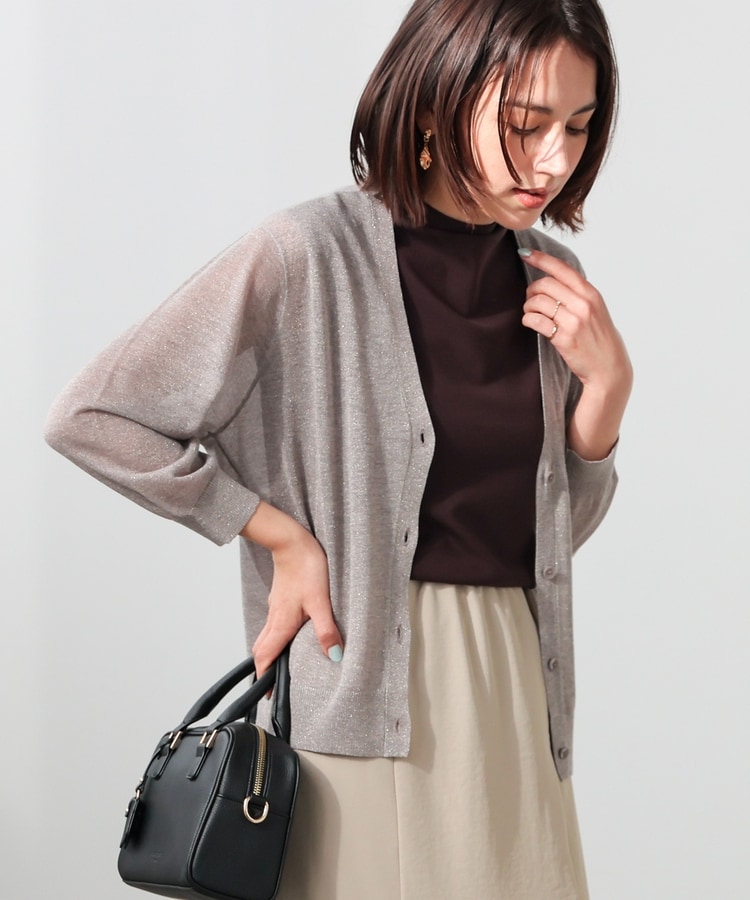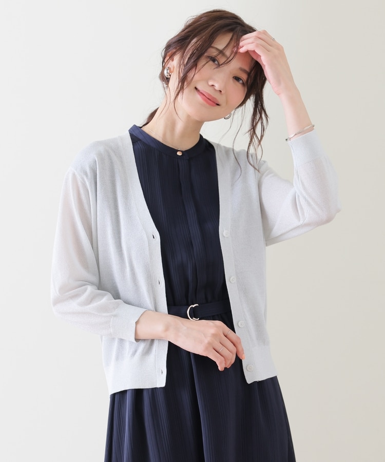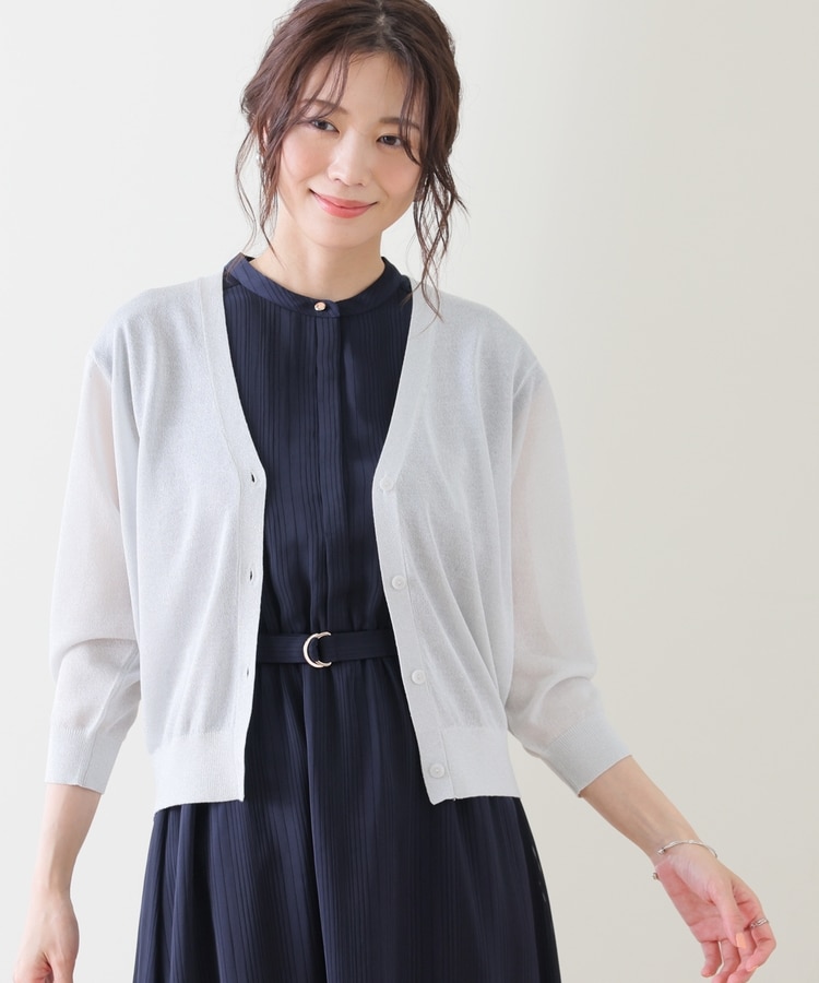 8分袖ラメ使いカーデ