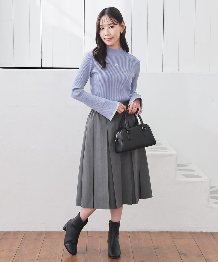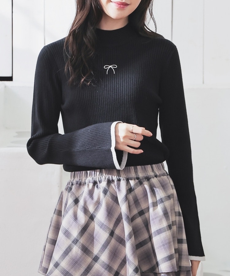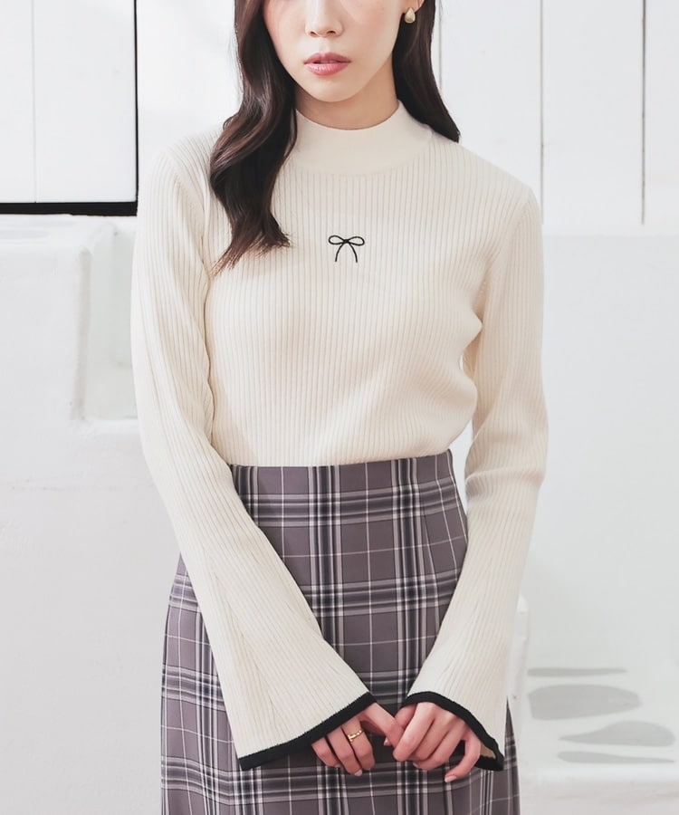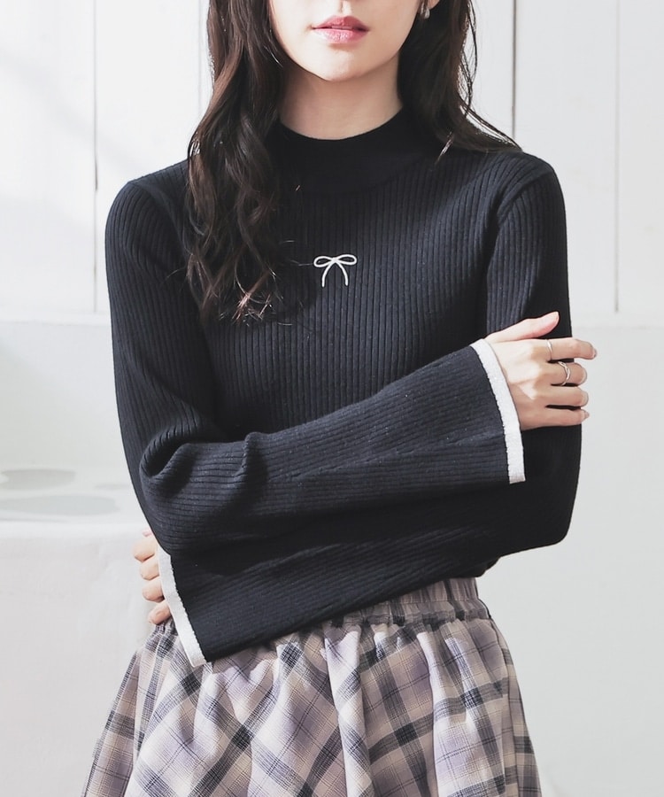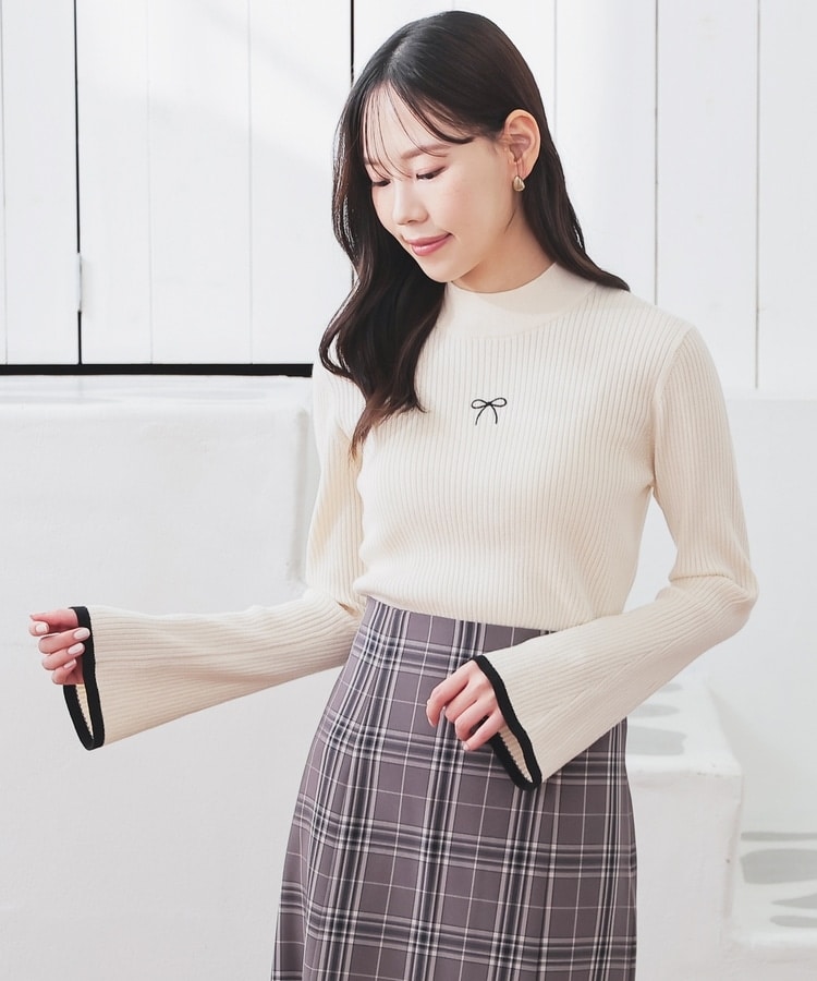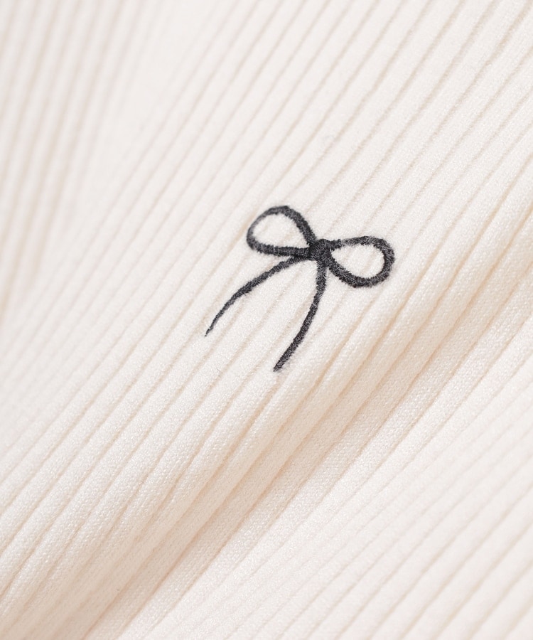 胸元のリボン刺繍と衿ぐり・袖口の配色ラインがおしゃれなアクセント。