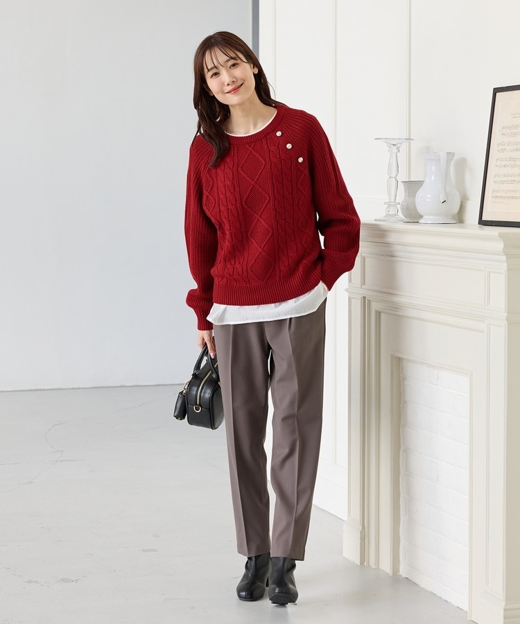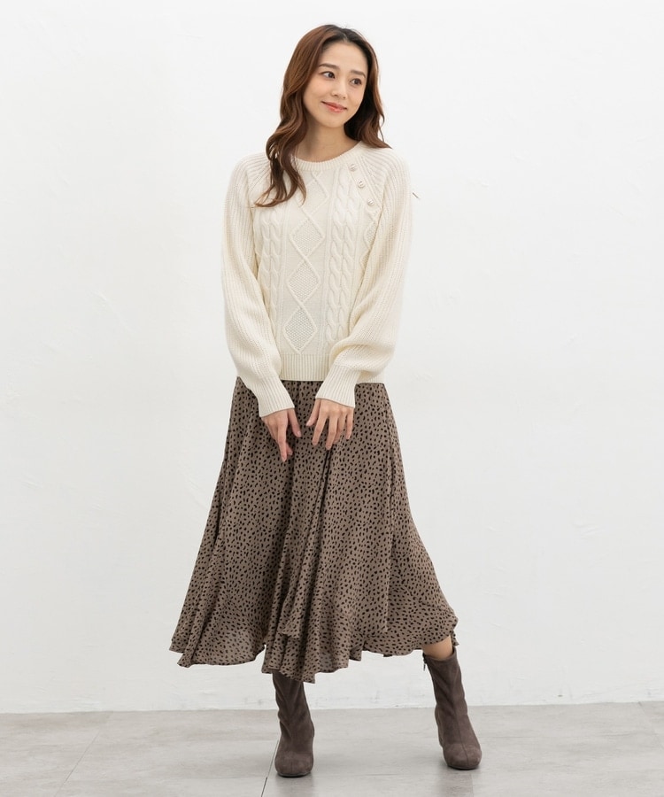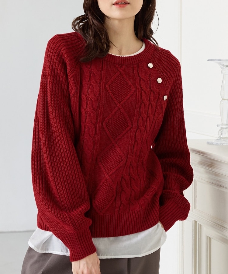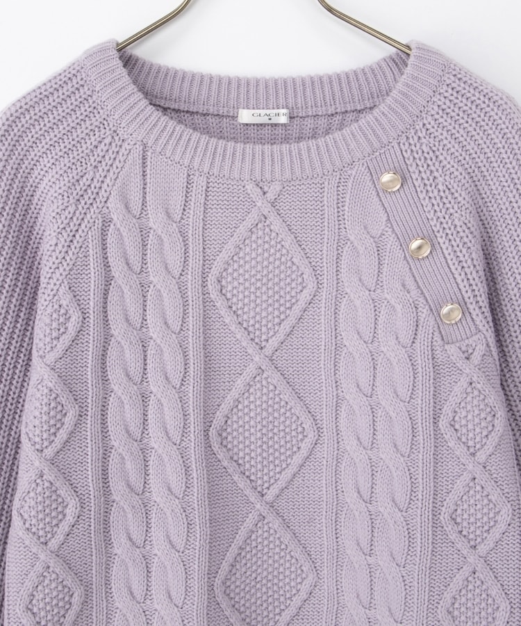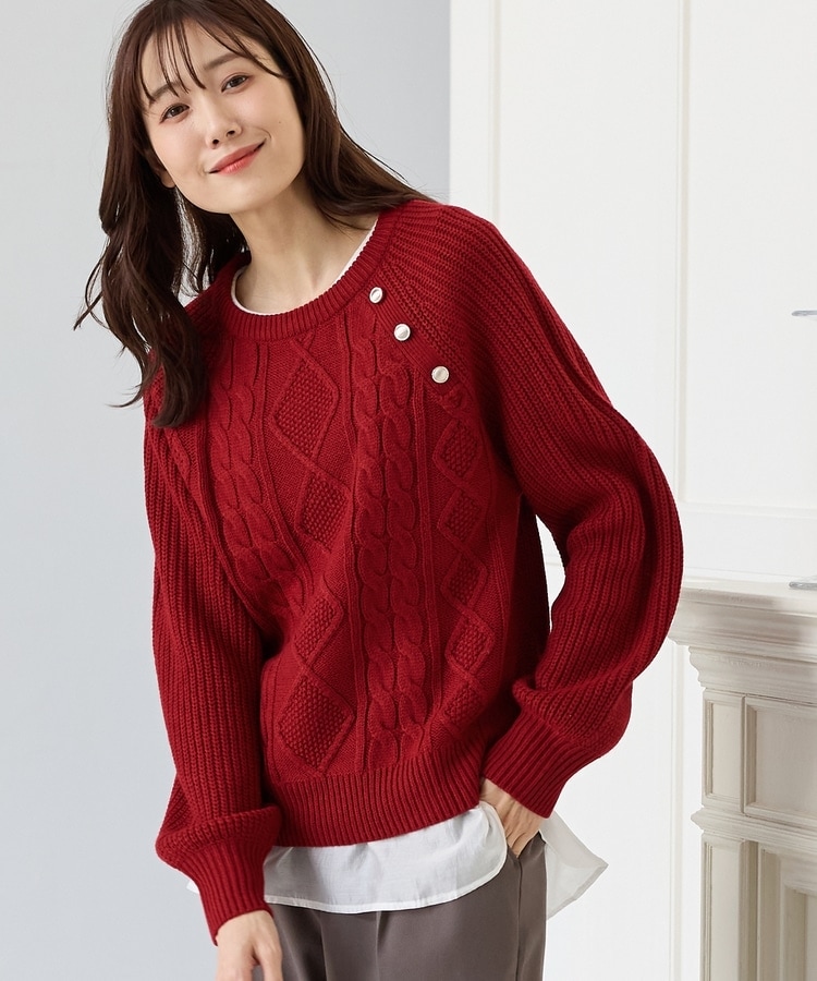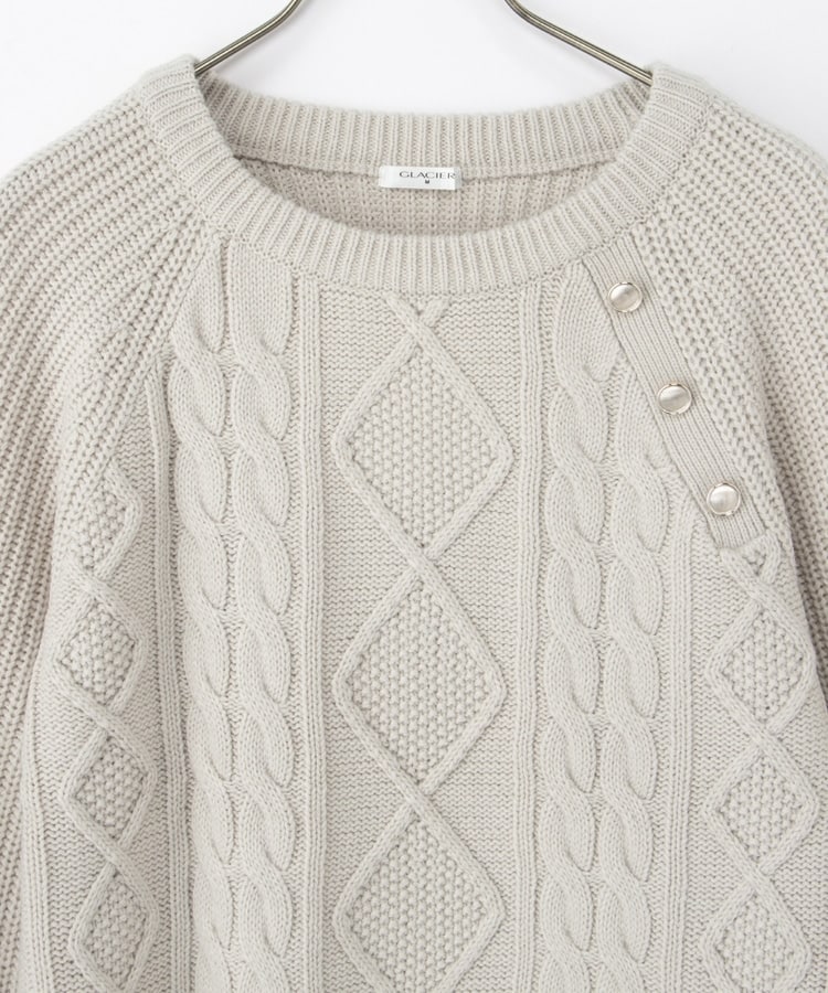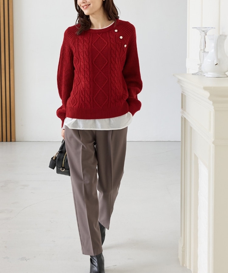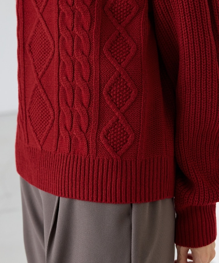 立体感のあるケーブル編みと片畦編みの異なる編地が大人可愛いデザイン。