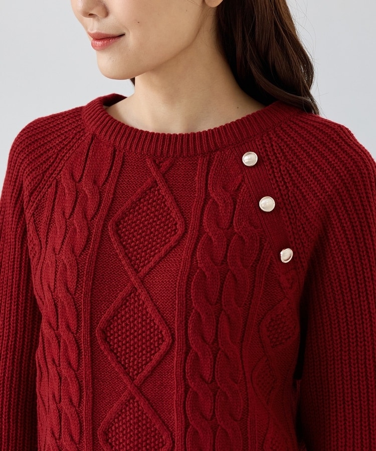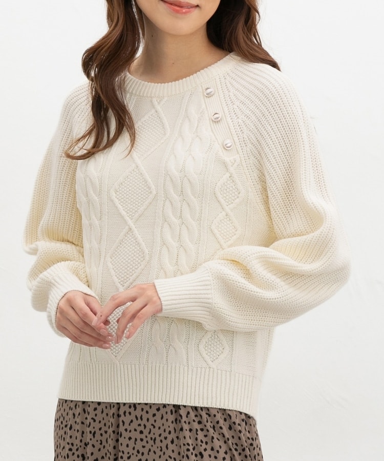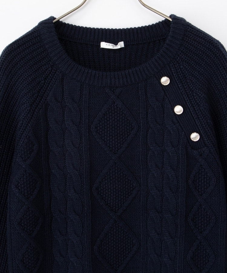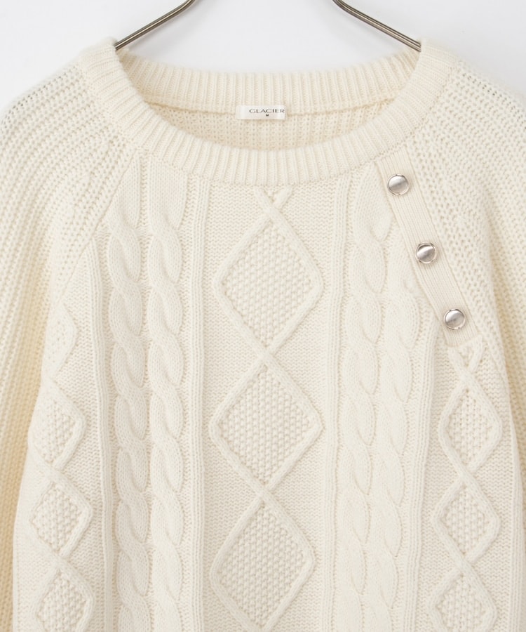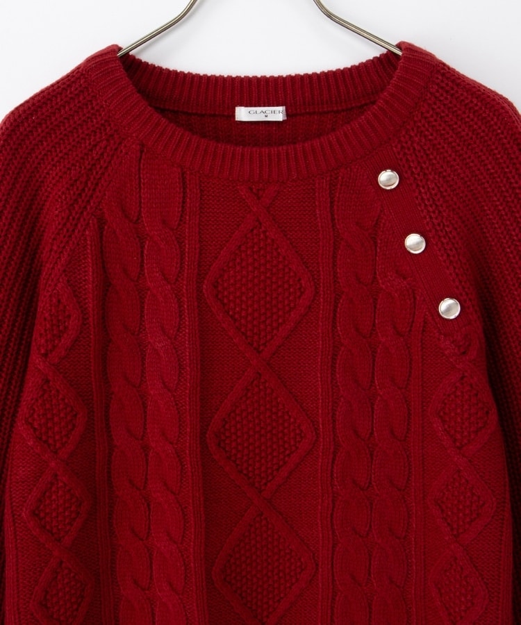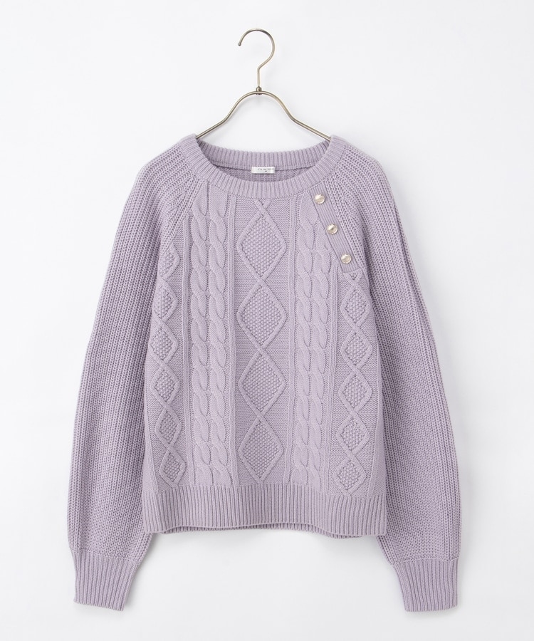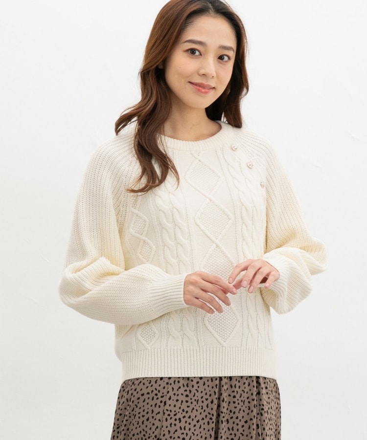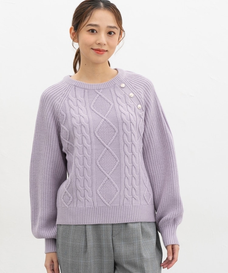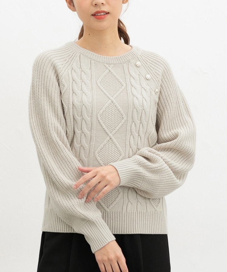 立体感のあるケーブル編みと片畦編みの異なる編地が大人可愛いデザイン。