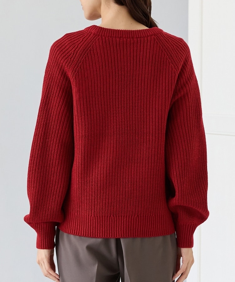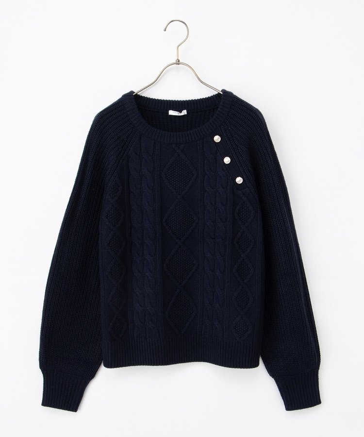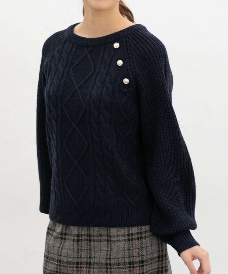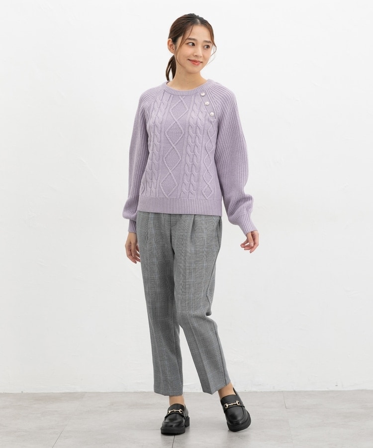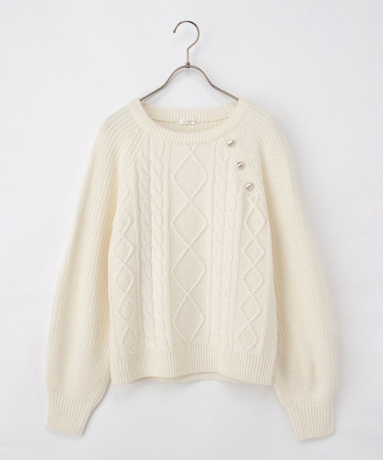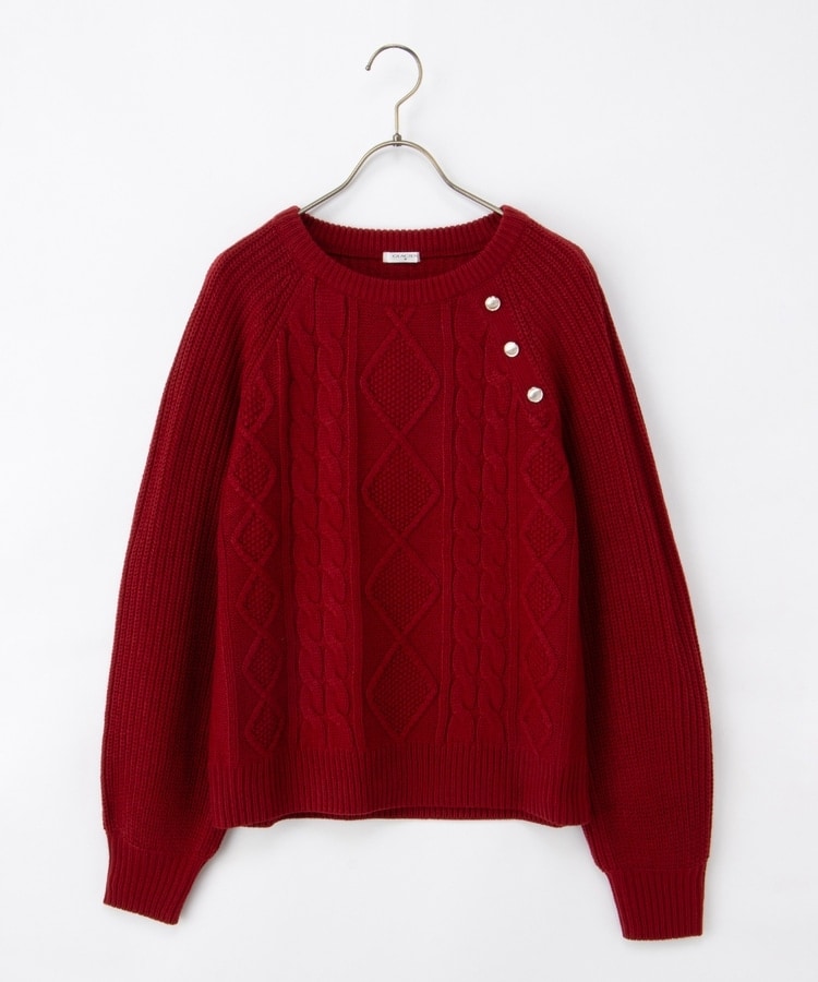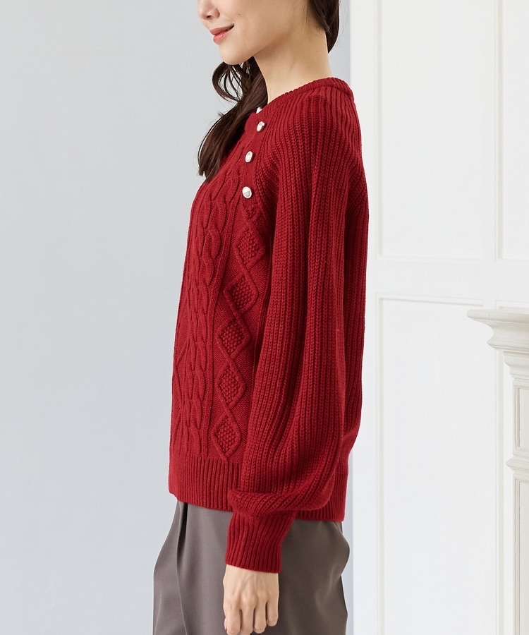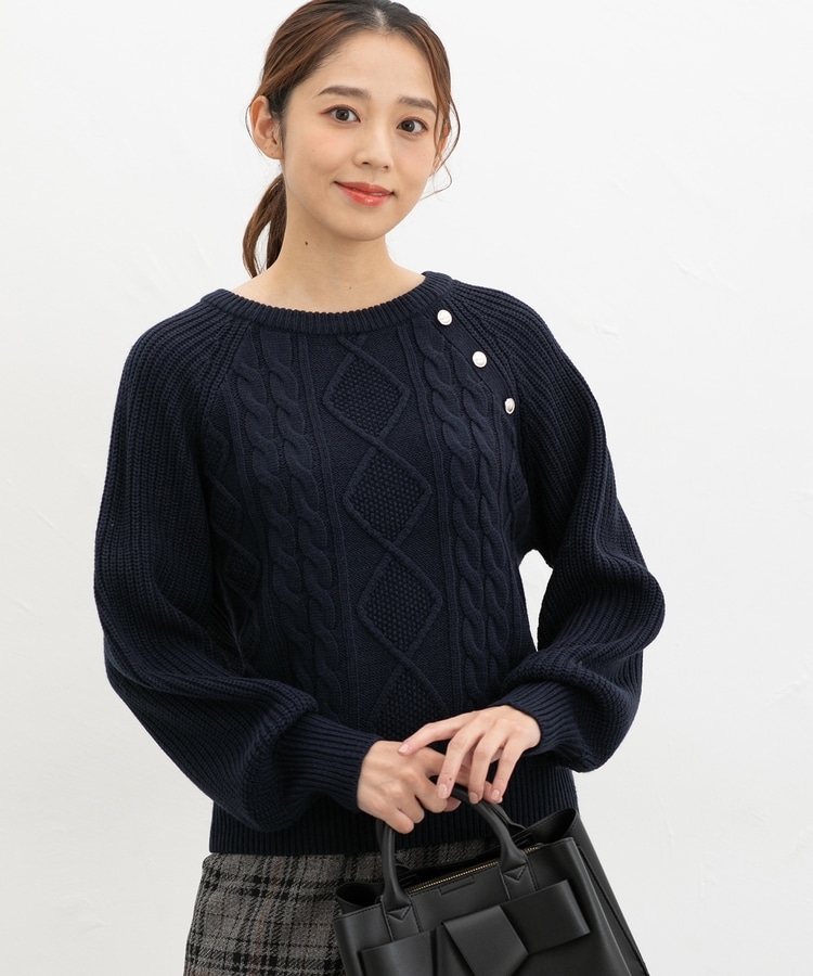 立体感のあるケーブル編みと片畦編みの異なる編地が大人可愛いデザイン。