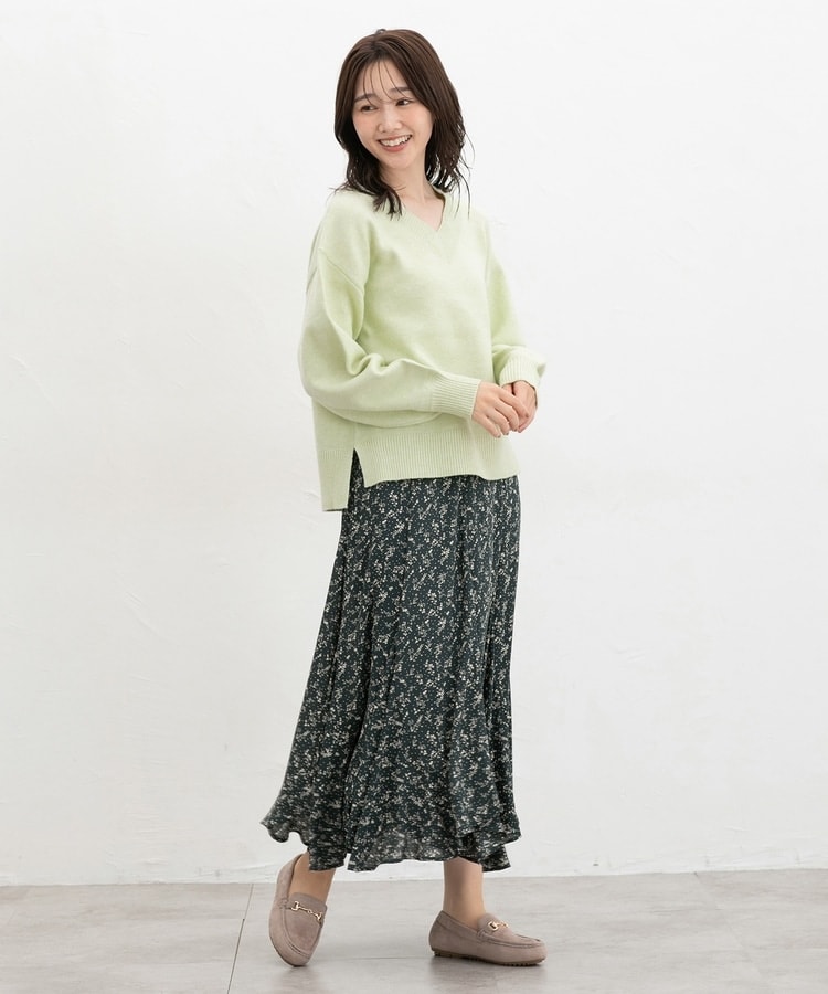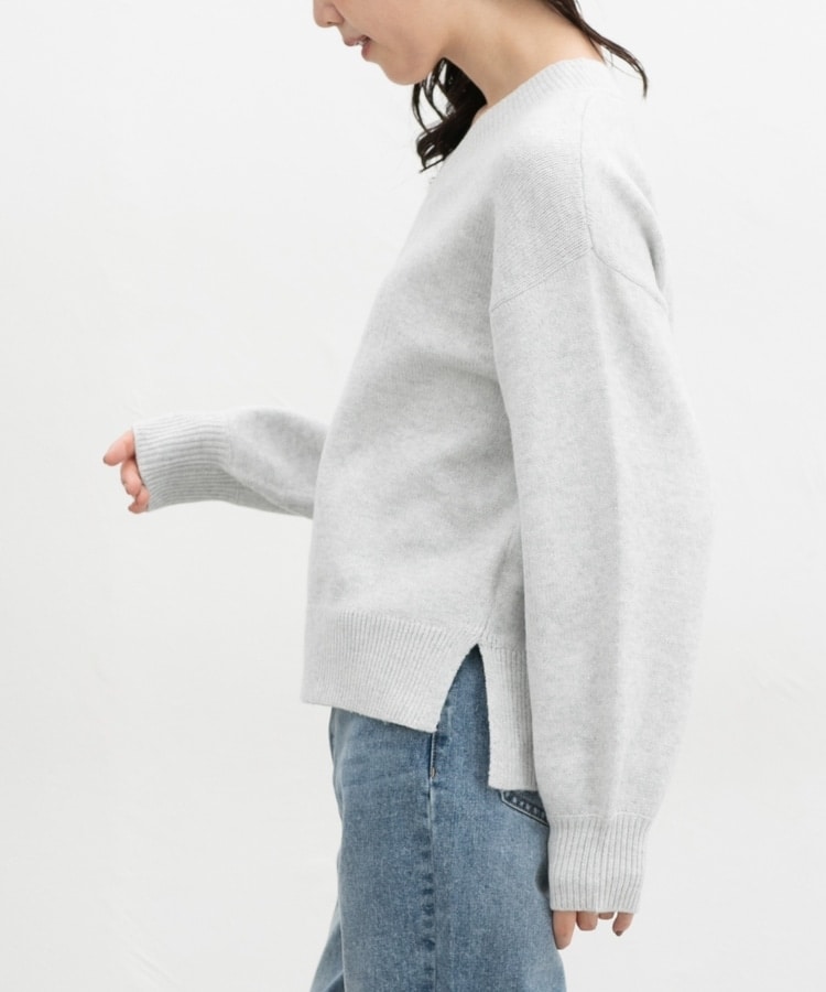 ゆったりめの幅と腰回りが隠れる丈感に、サイドスリット入りの前後差ヘムで抜け感のある着こなしに。