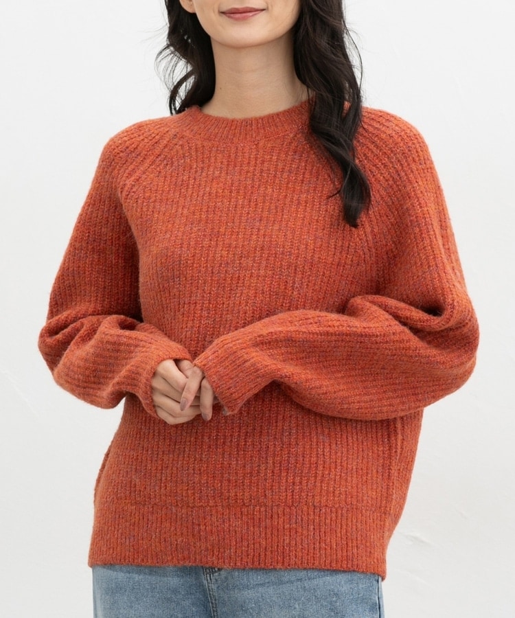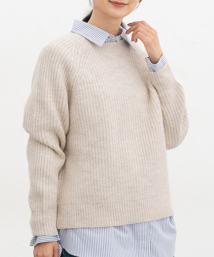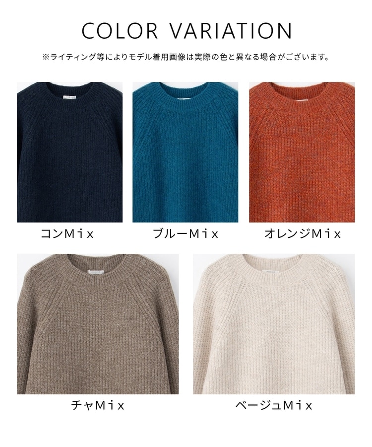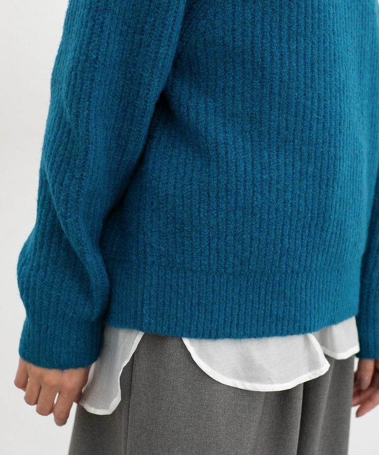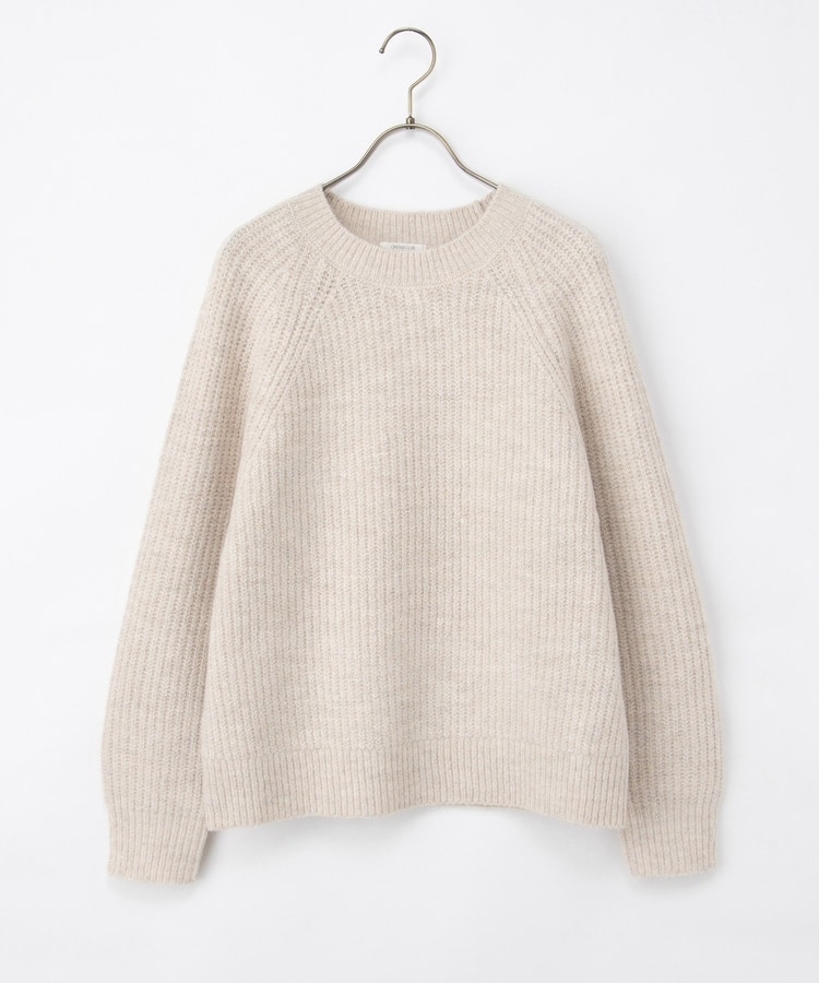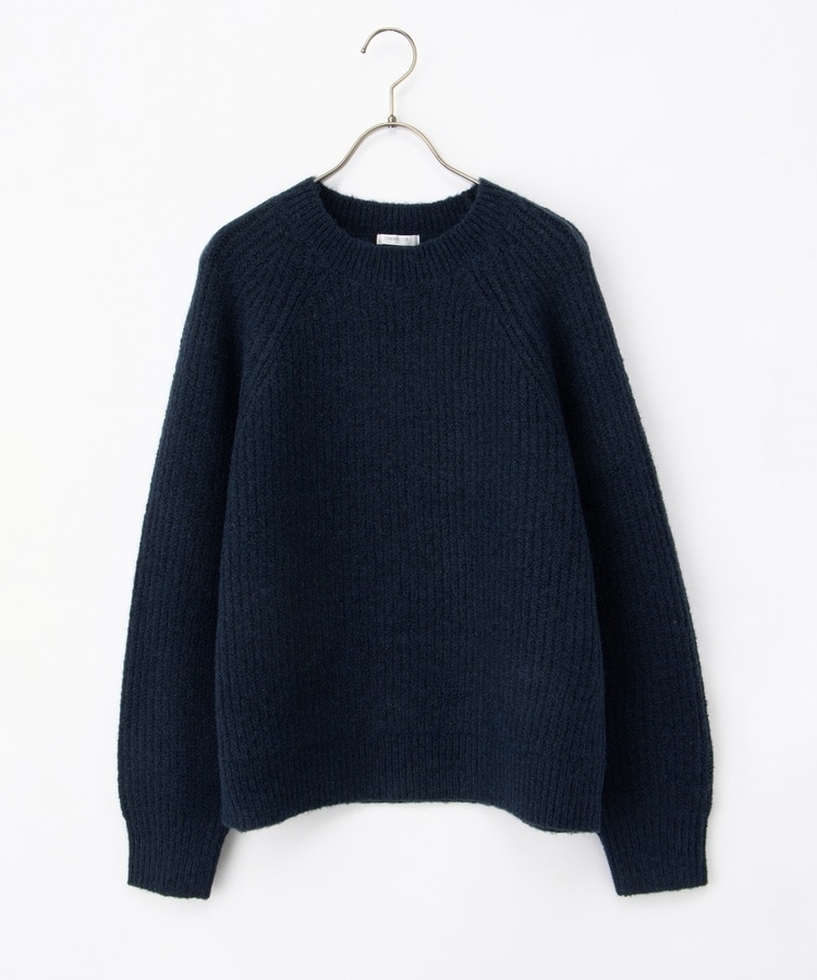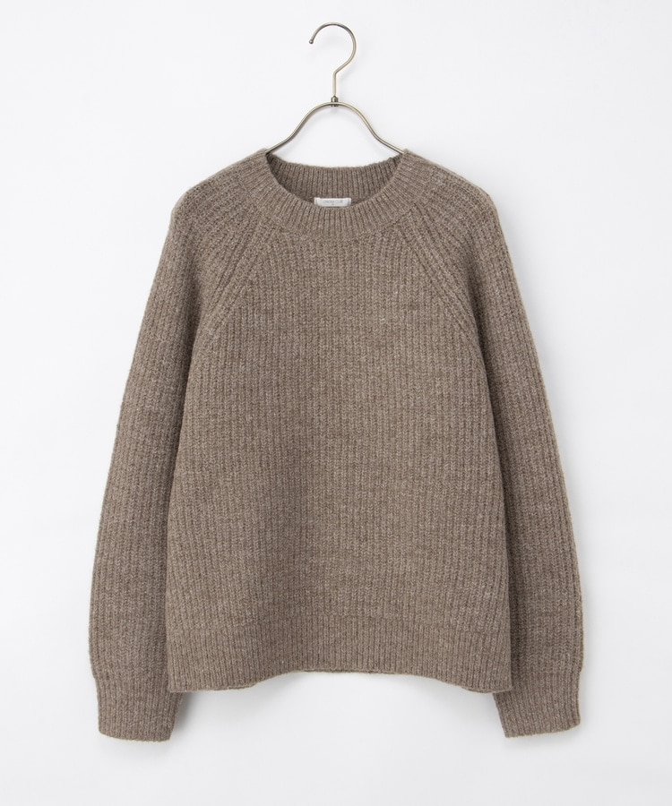 ベーシックなクルーネックに、ふんわりとしたミックス感が可愛い糸と畦編みがお洒落なデザイン。