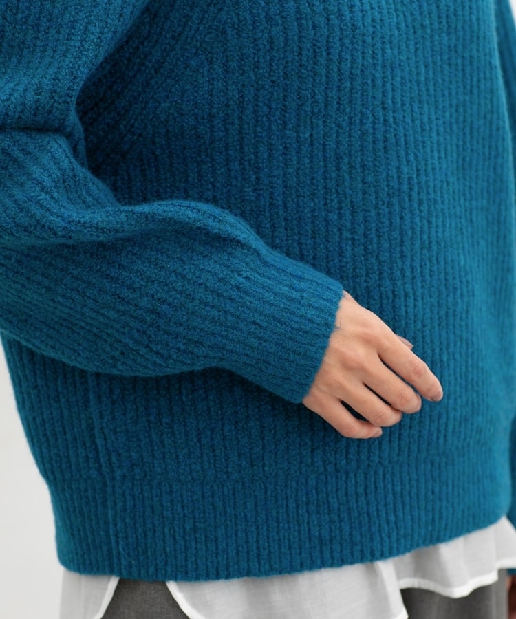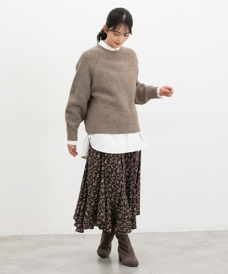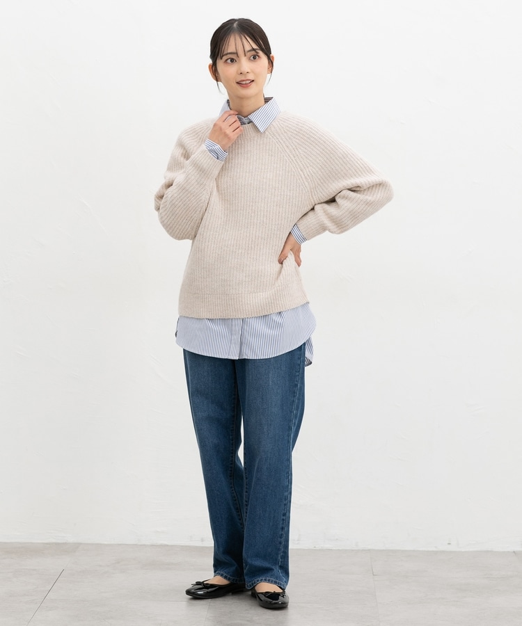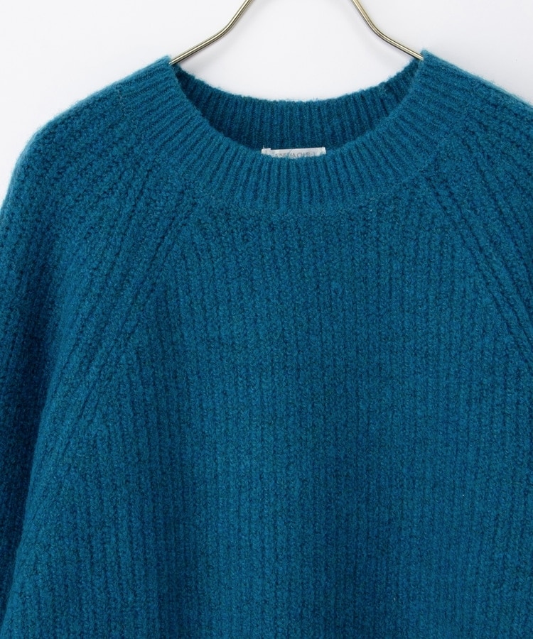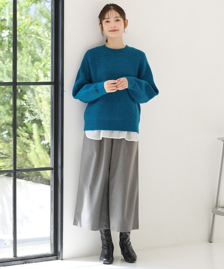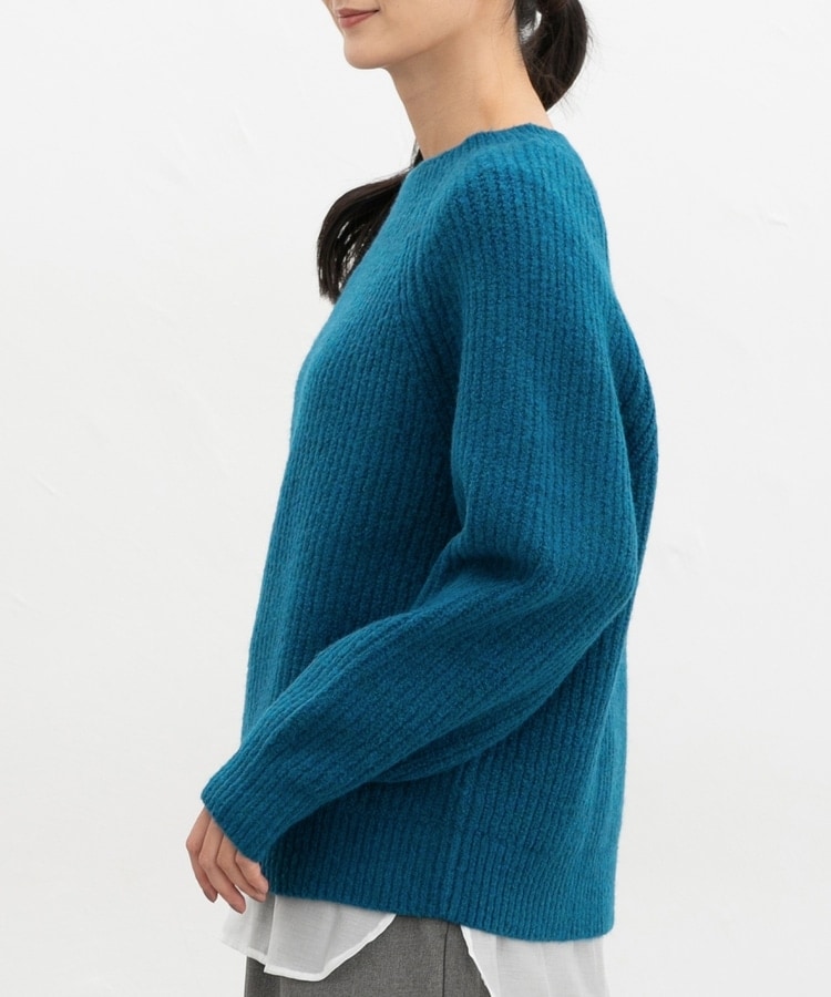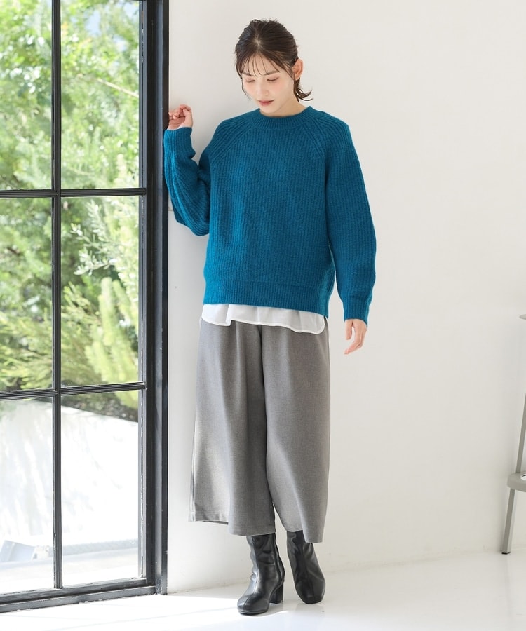 ベーシックなクルーネックに、ふんわりとしたミックス感が可愛い糸と畦編みがお洒落なデザイン。