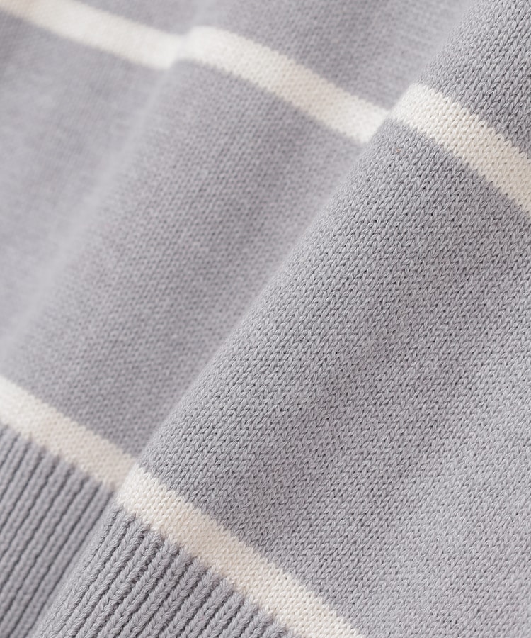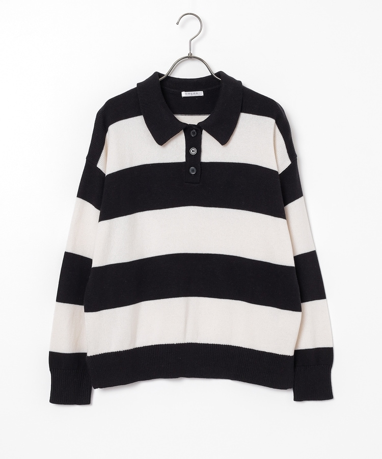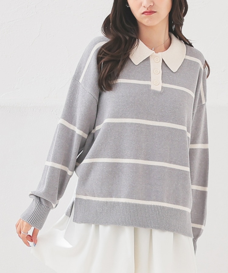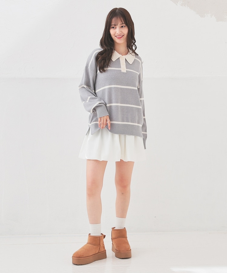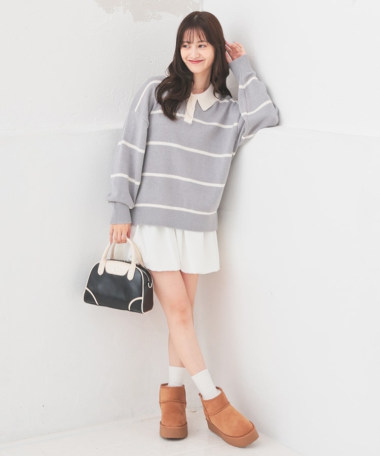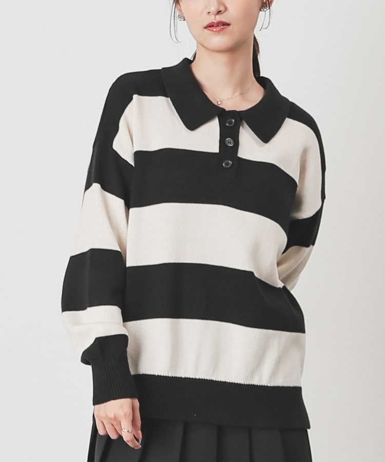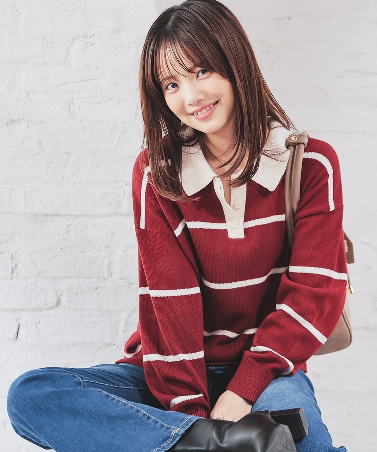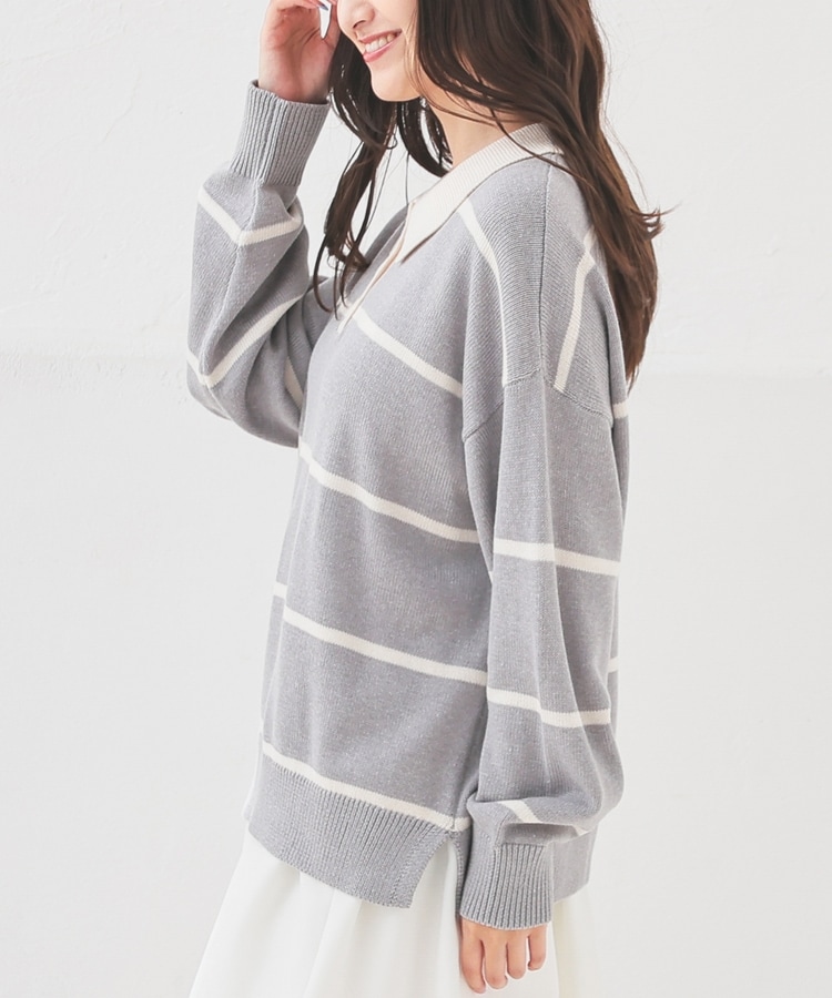 きちんと感のある衿付きデザインを、ゆるシルエットとボーダーでカジュアルな雰囲気に。