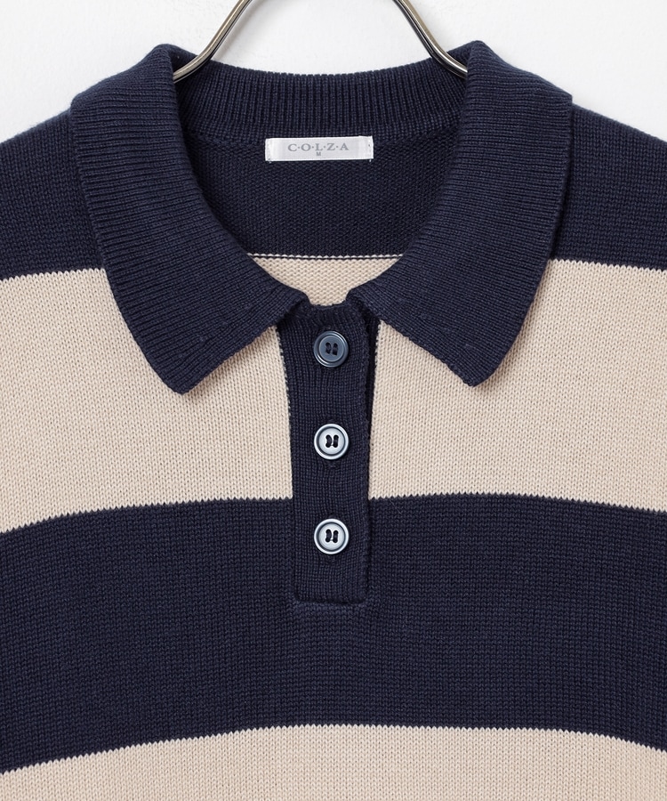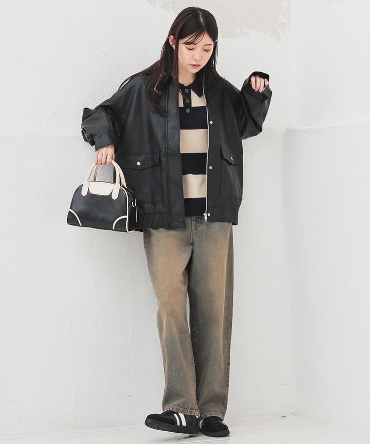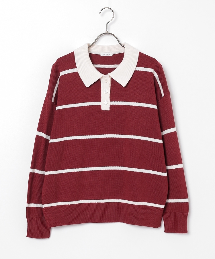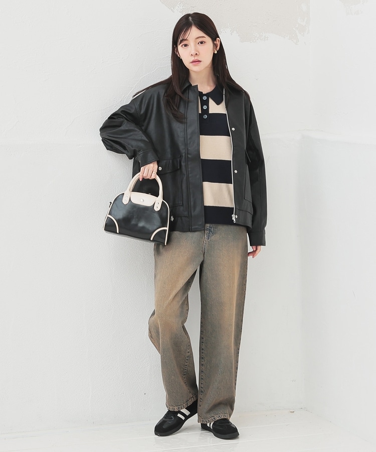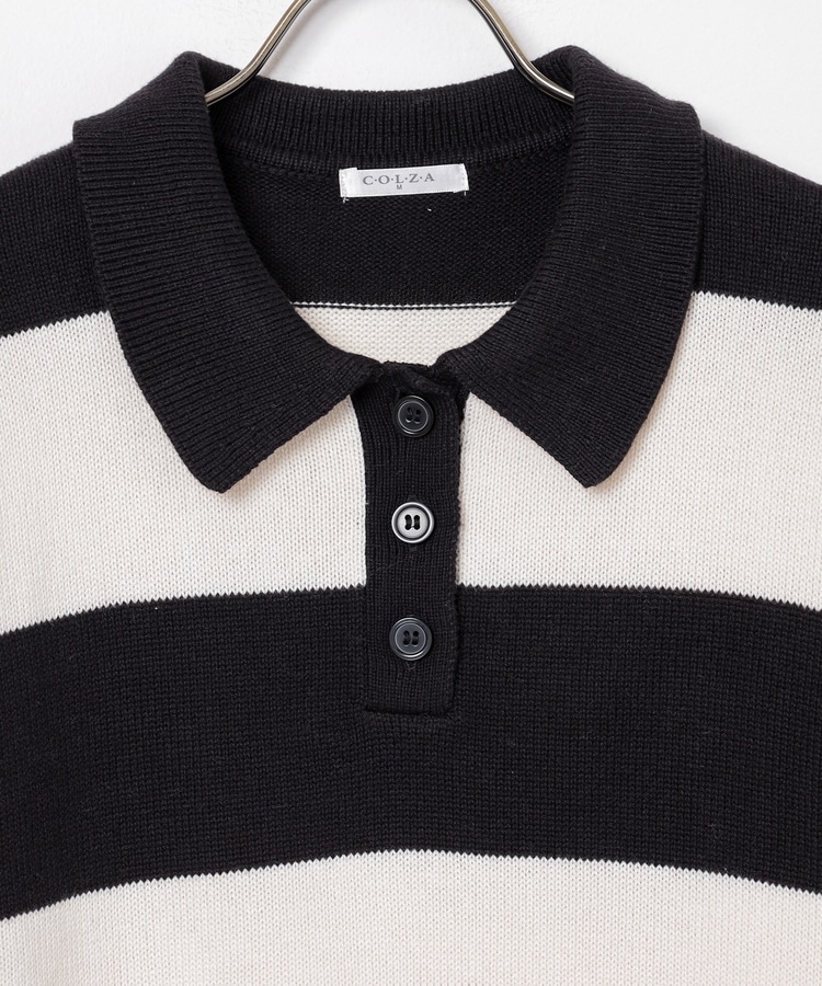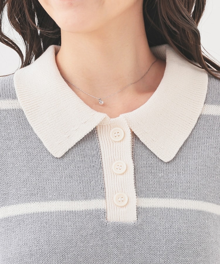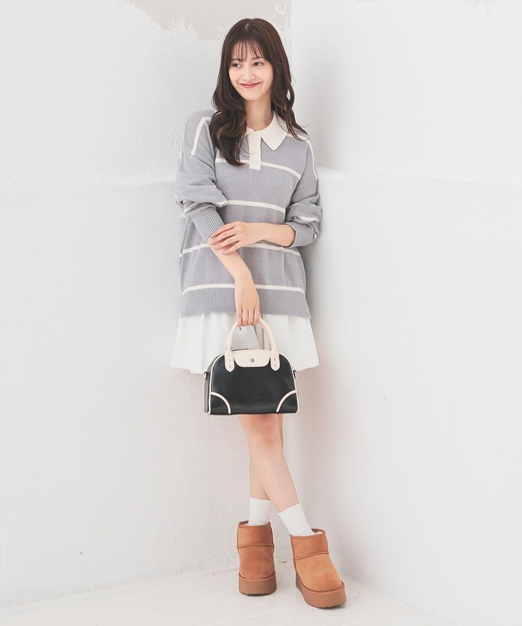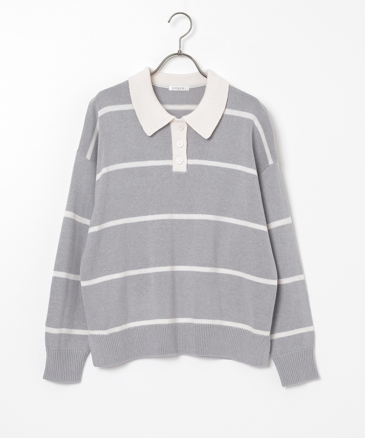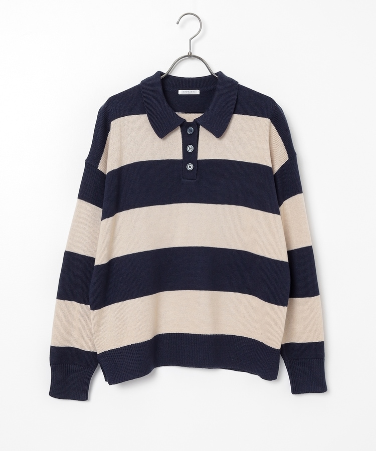 きちんと感のある衿付きデザインを、ゆるシルエットとボーダーでカジュアルな雰囲気に。